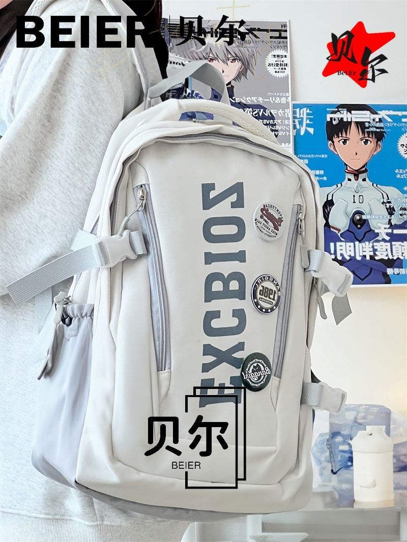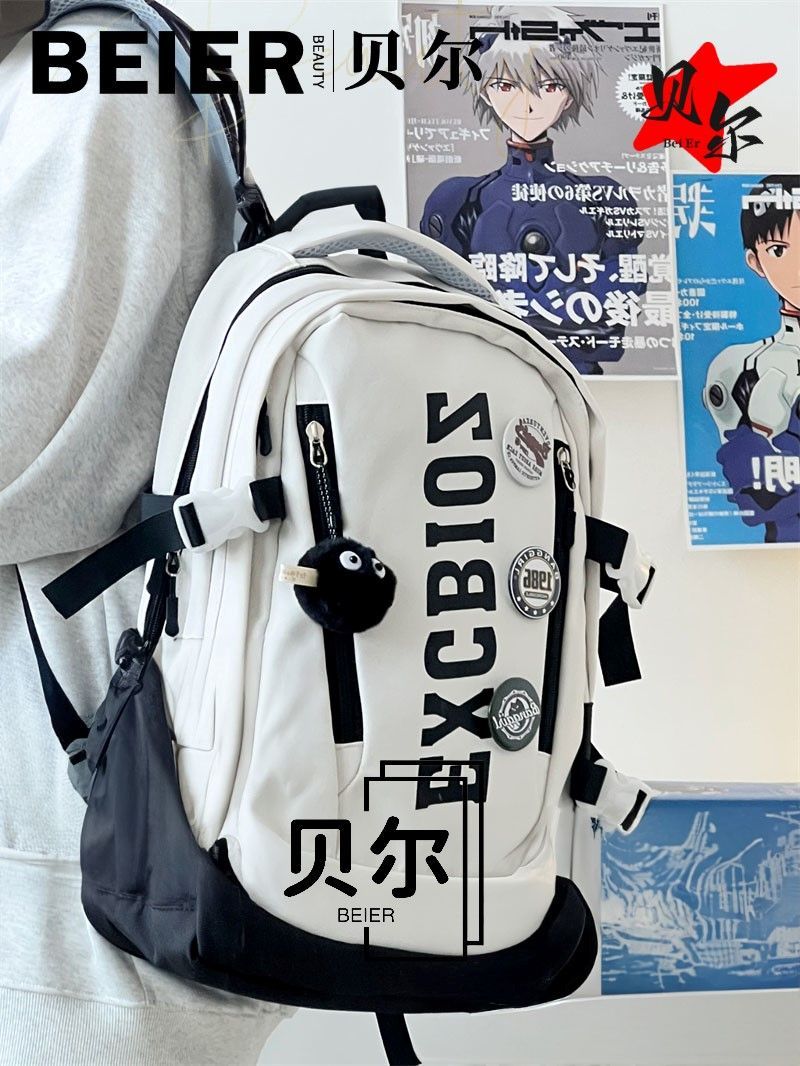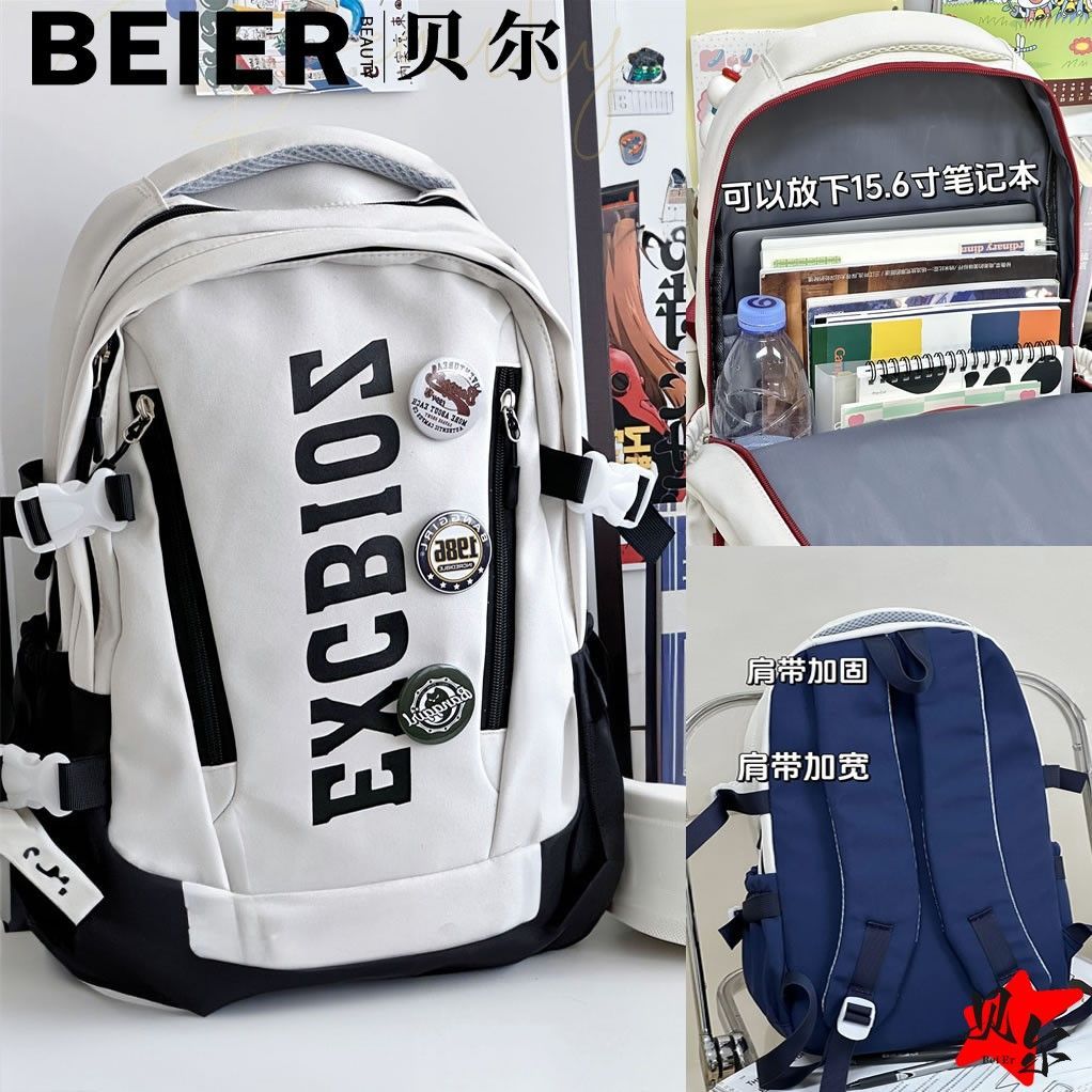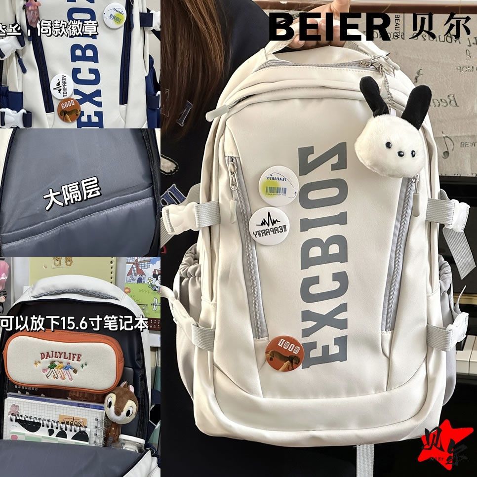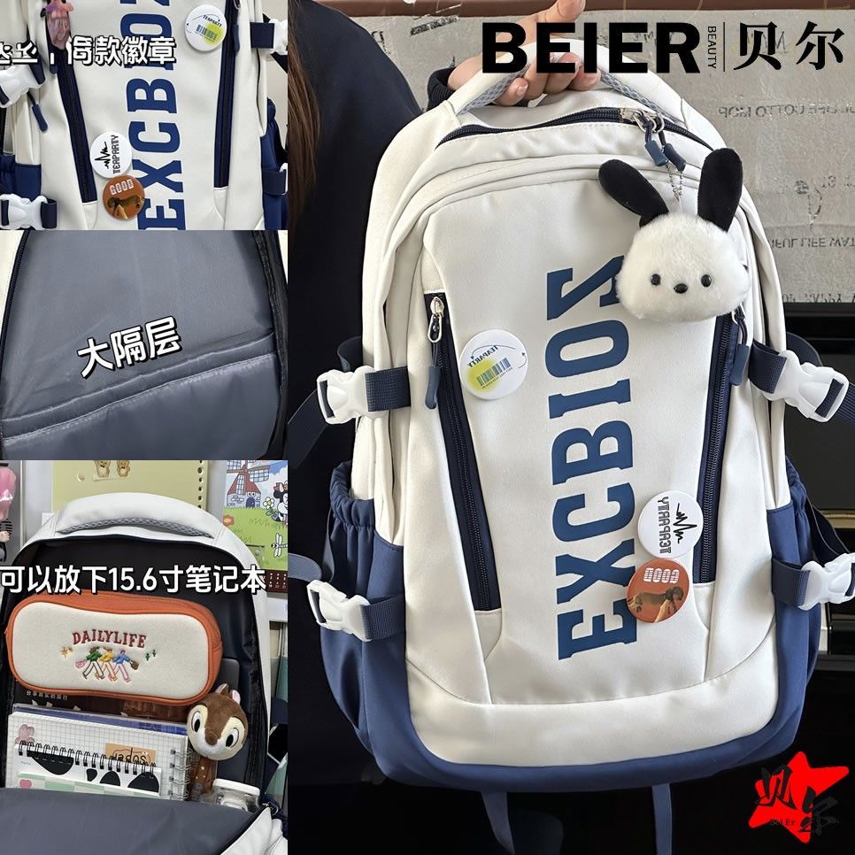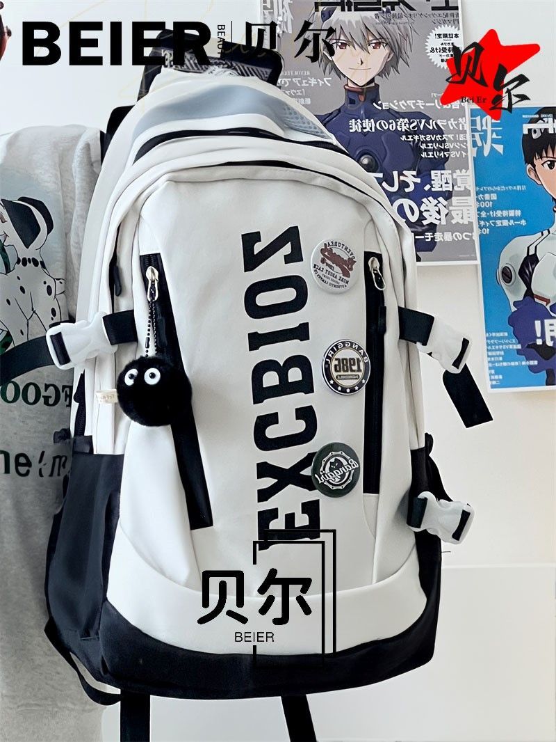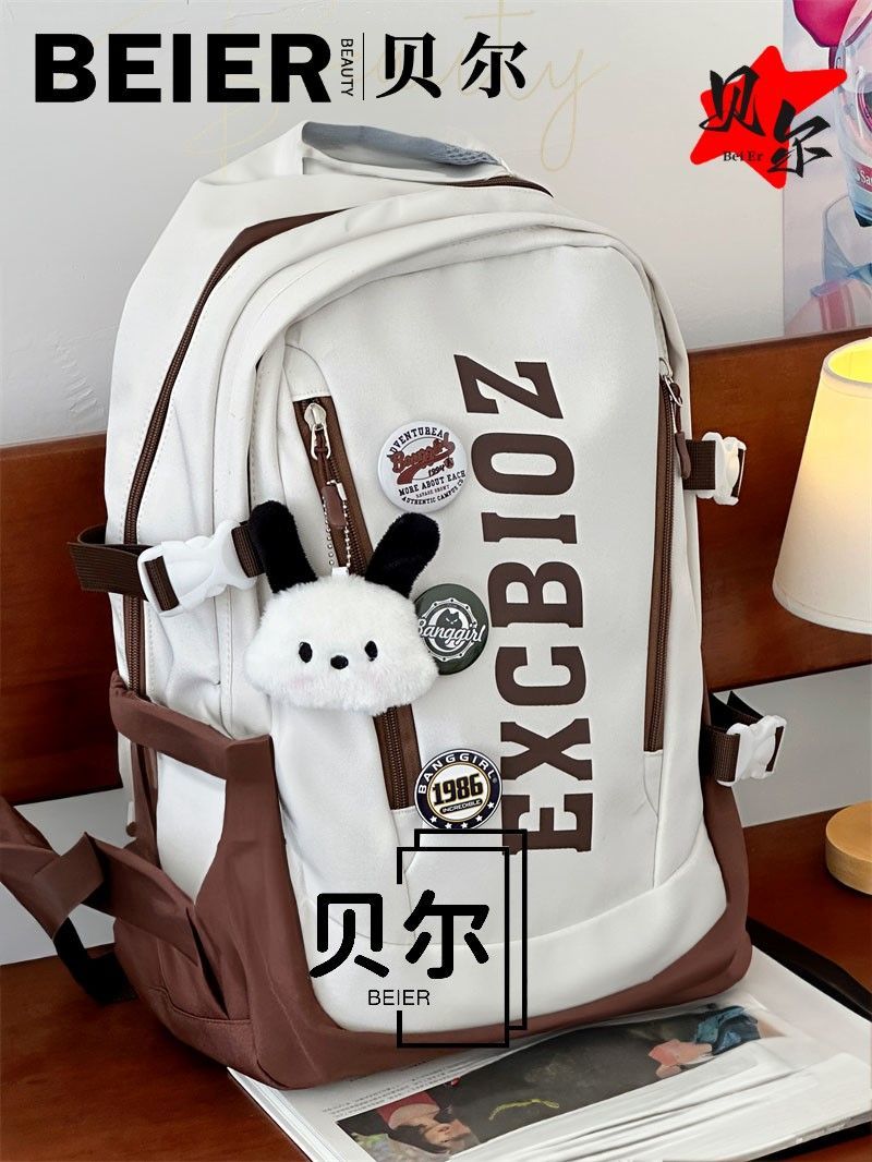 美式复古帅气双肩大容量多隔层高中初中生书包ins小众欧美风背包