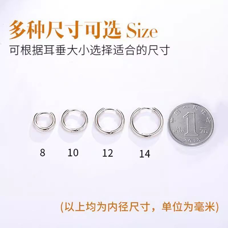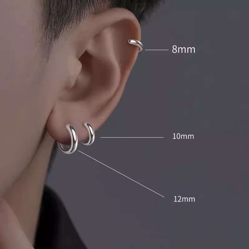 925足银耳环男潮气质小众男士耳骨钉耳扣纯银耳钉耳圈素圈耳饰