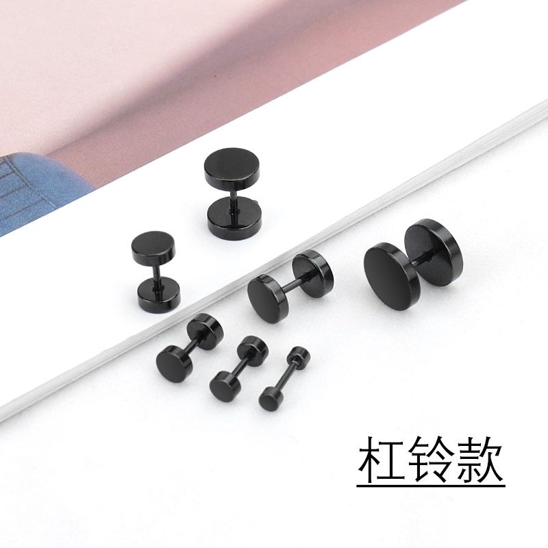 韩版耳钉女杠铃百搭组合耳骨钉圆形男学生简约双面黑色小豆豆耳钉