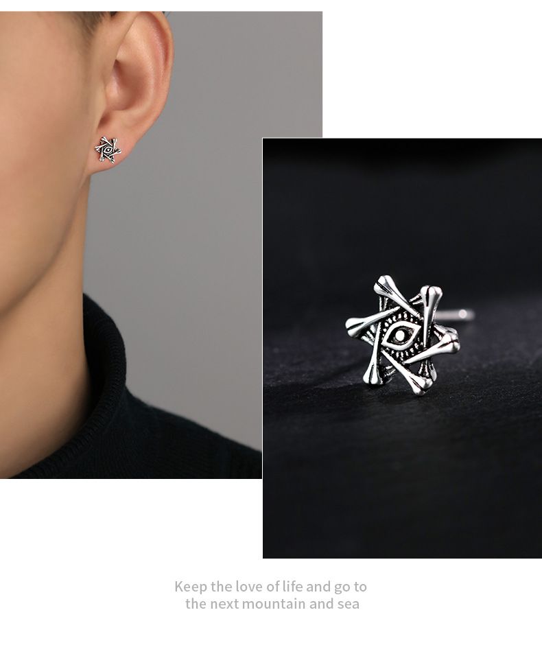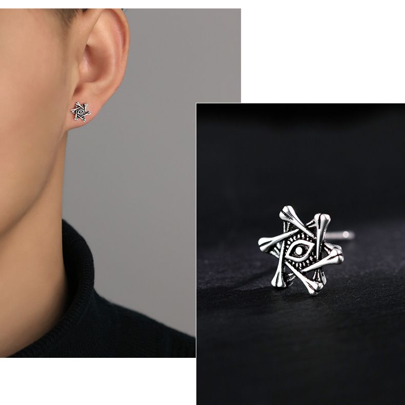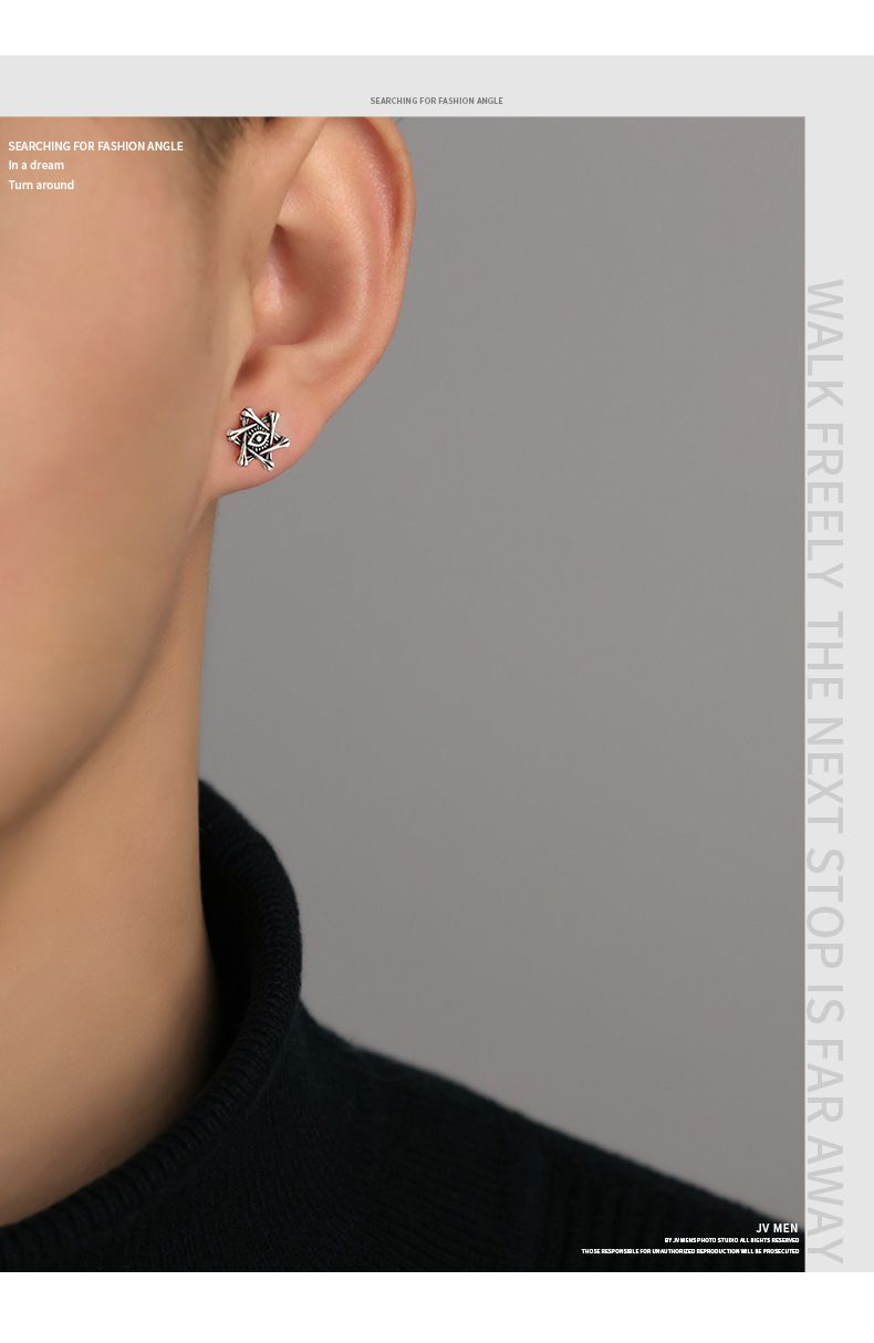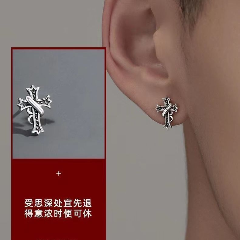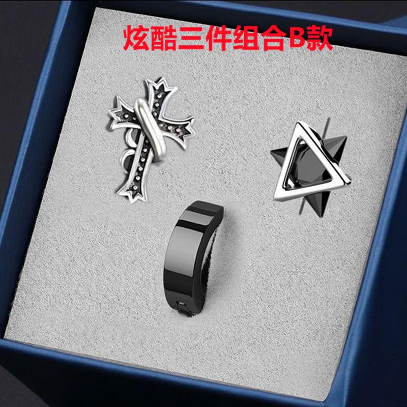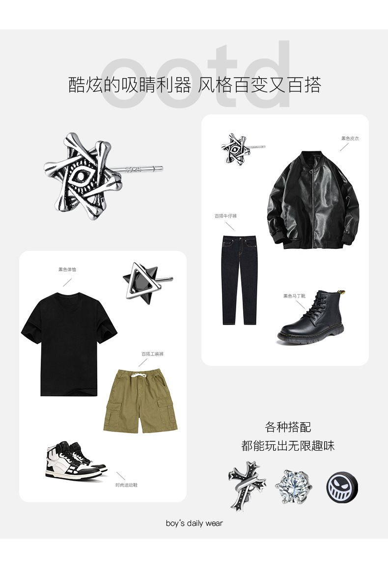 新款925银男生耳钉潮流个性男款潮男帅气百搭街头简约男士耳圈