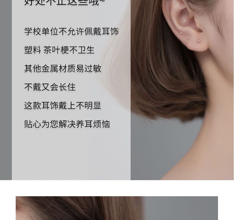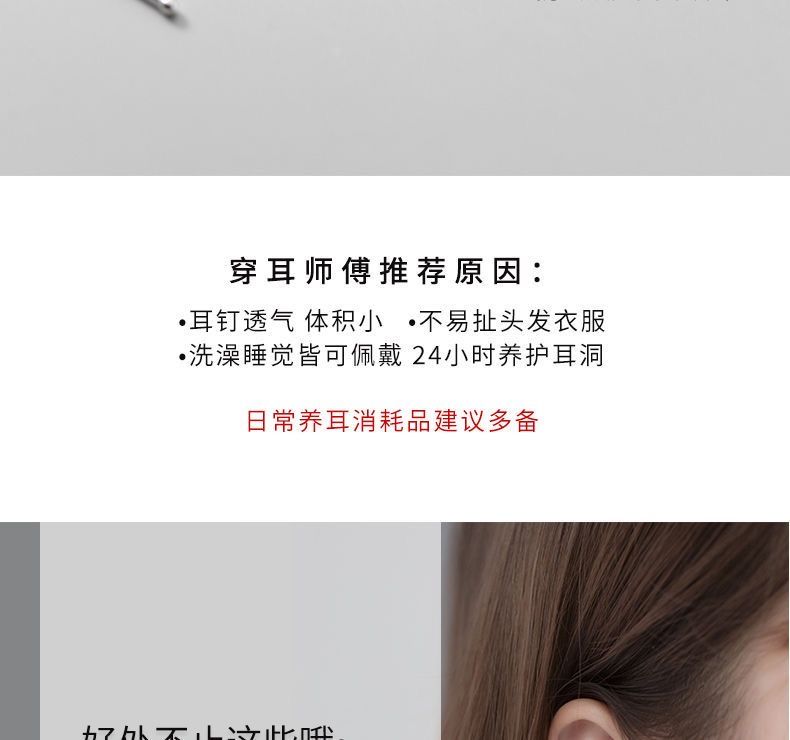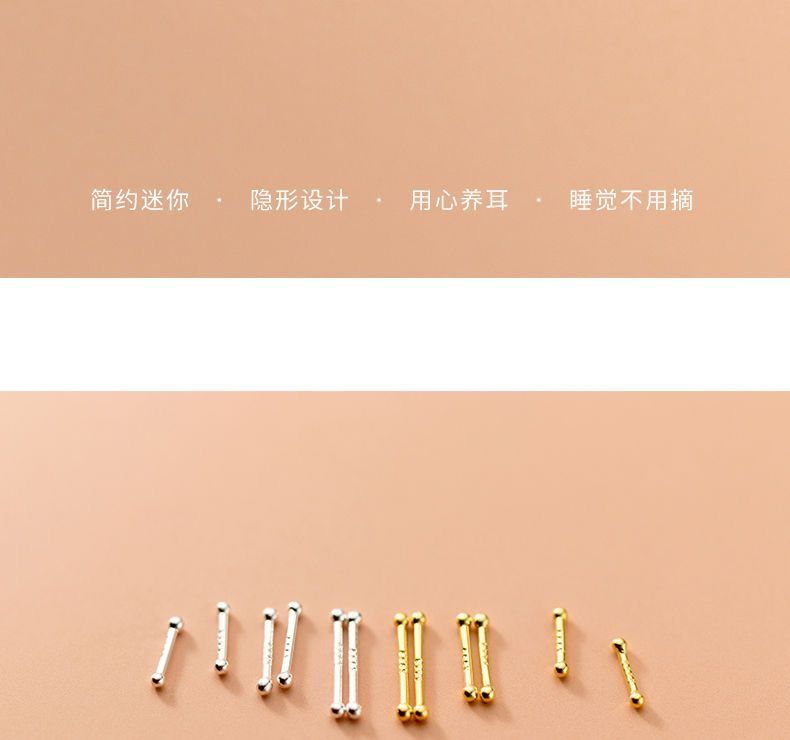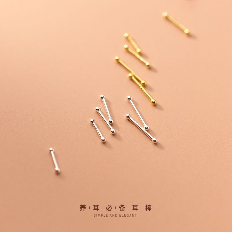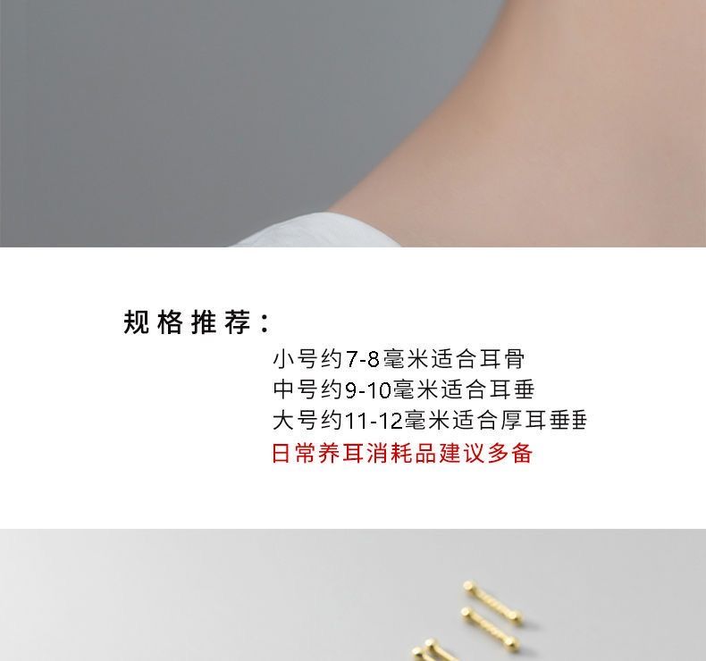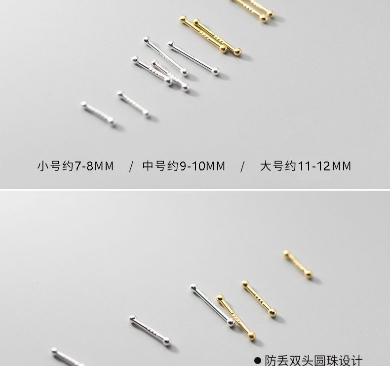 s999纯银睡觉不用摘耳钉足银养耳棒防掉双头圆珠男养护银针女耳棍