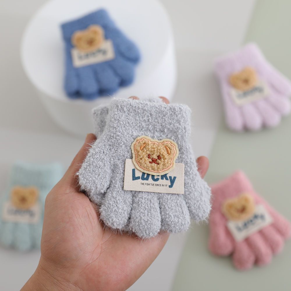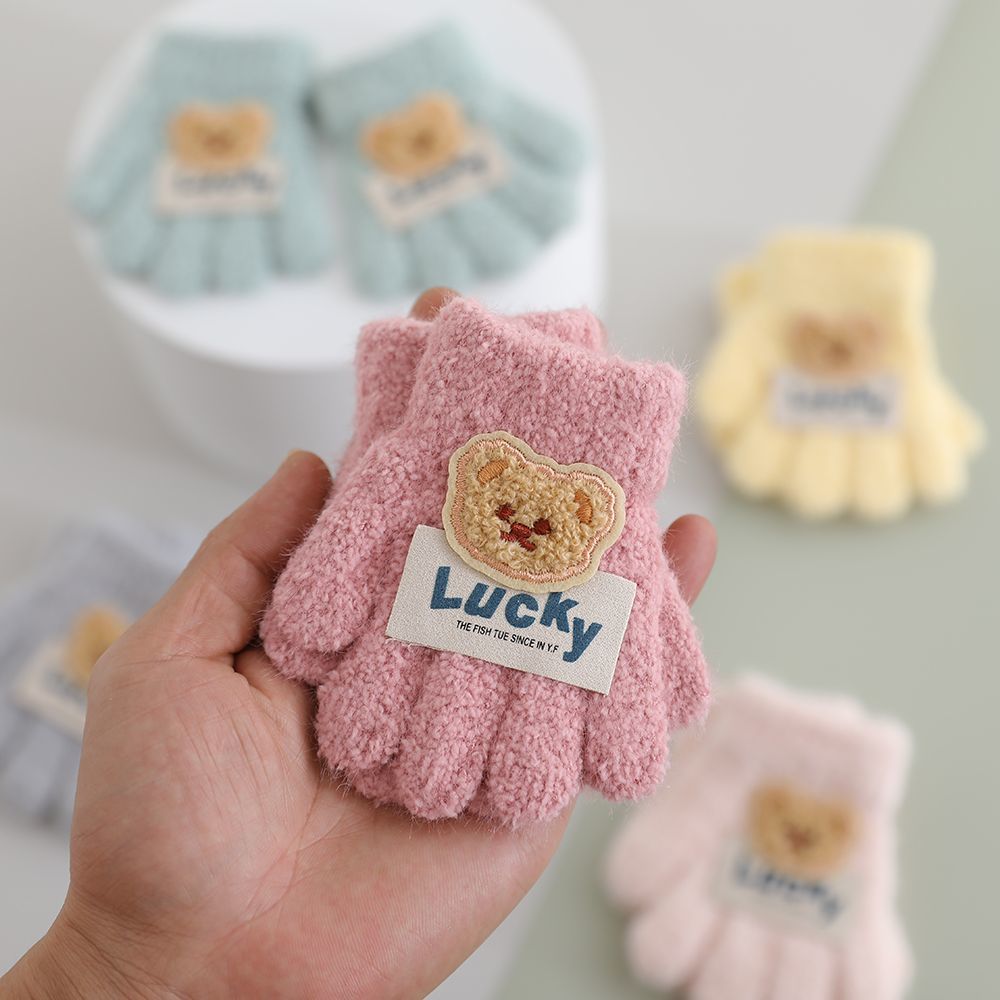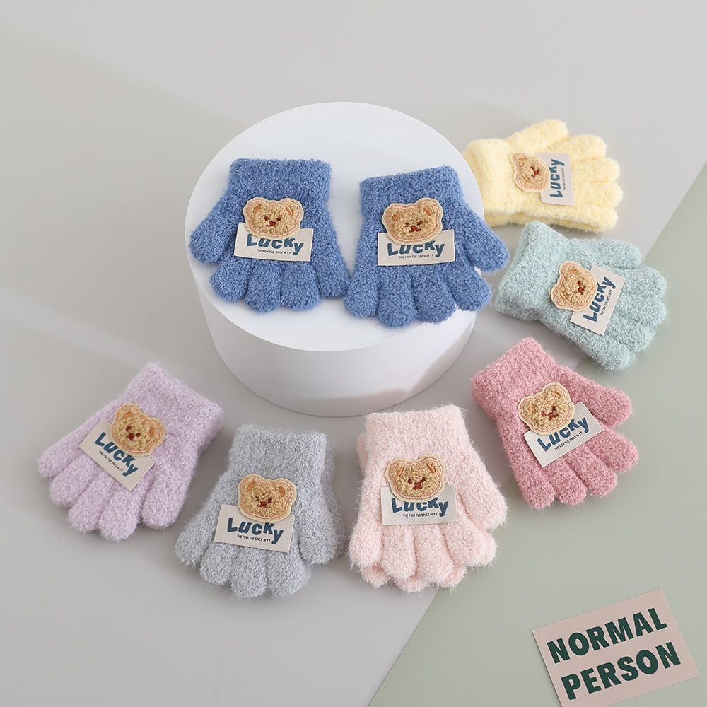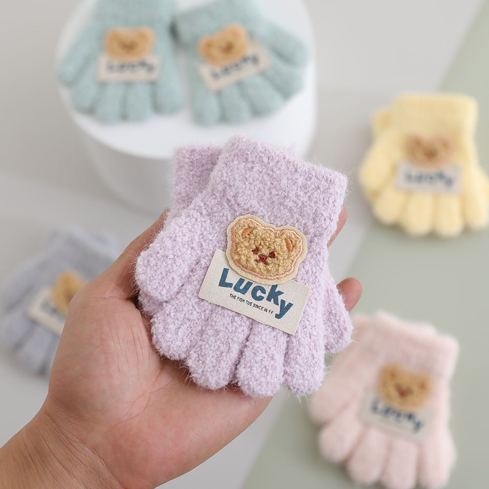 儿童手套分指男小熊宝宝五指冬季保暖加厚女童可爱防寒1-3岁婴儿2