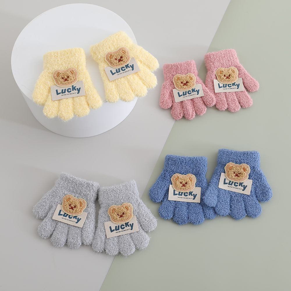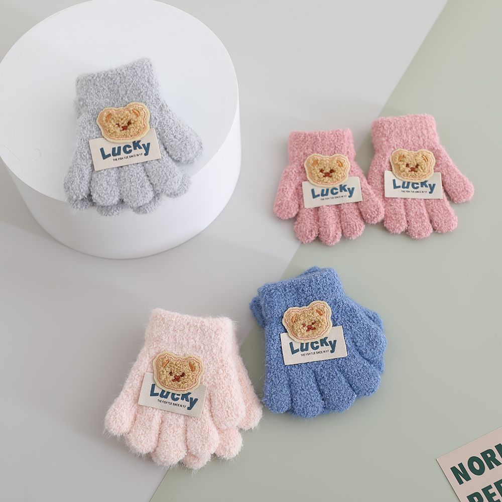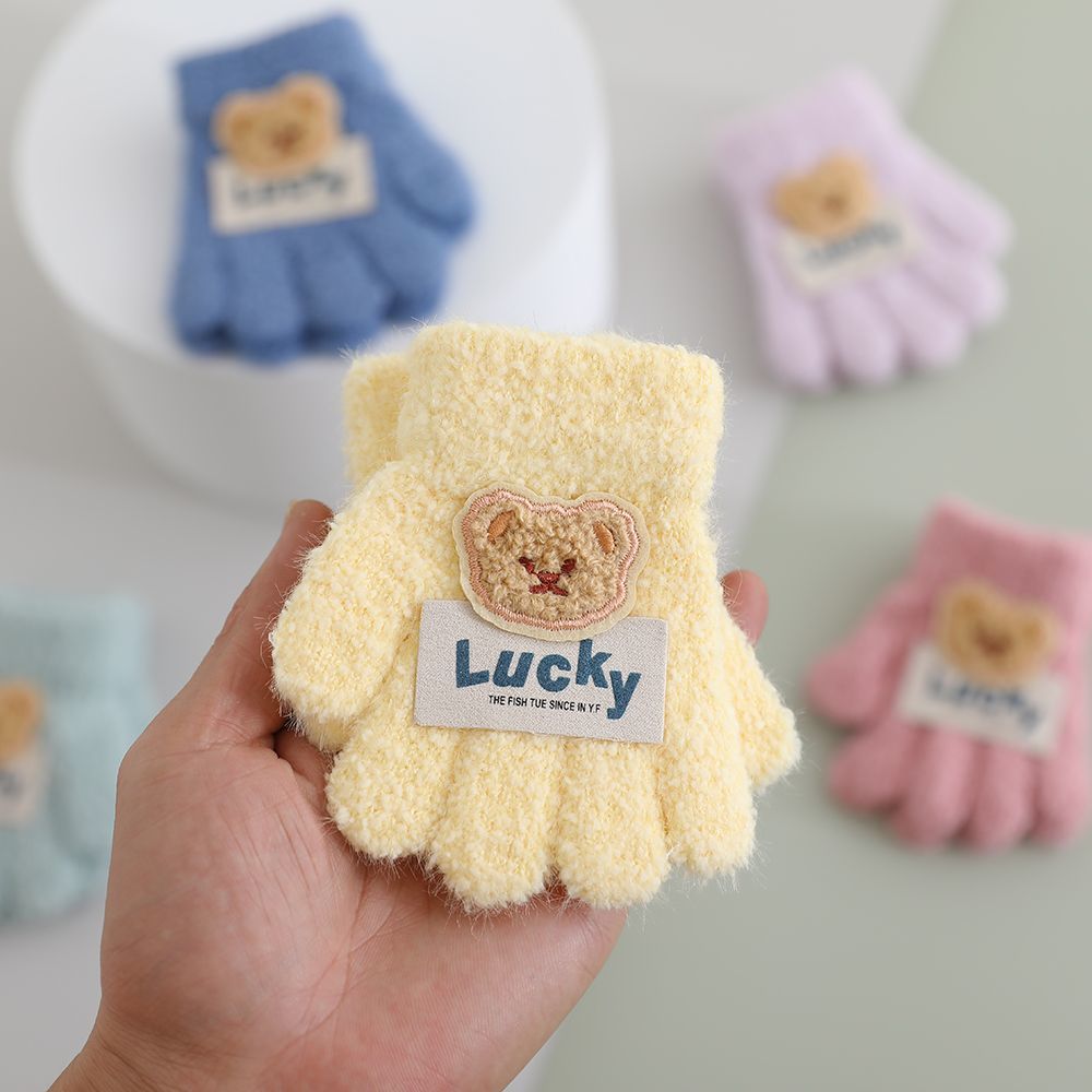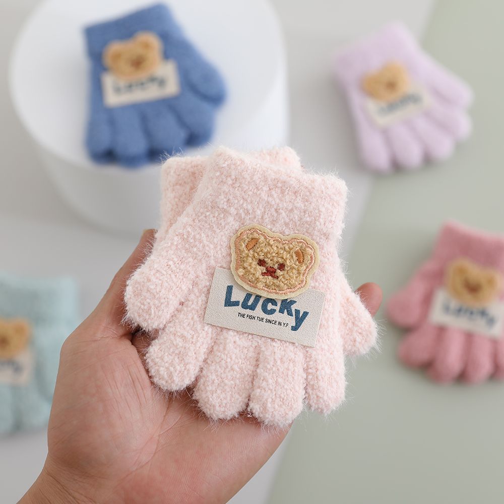 儿童手套分指男小熊宝宝五指冬季保暖加厚女童可爱防寒1-3岁婴儿2