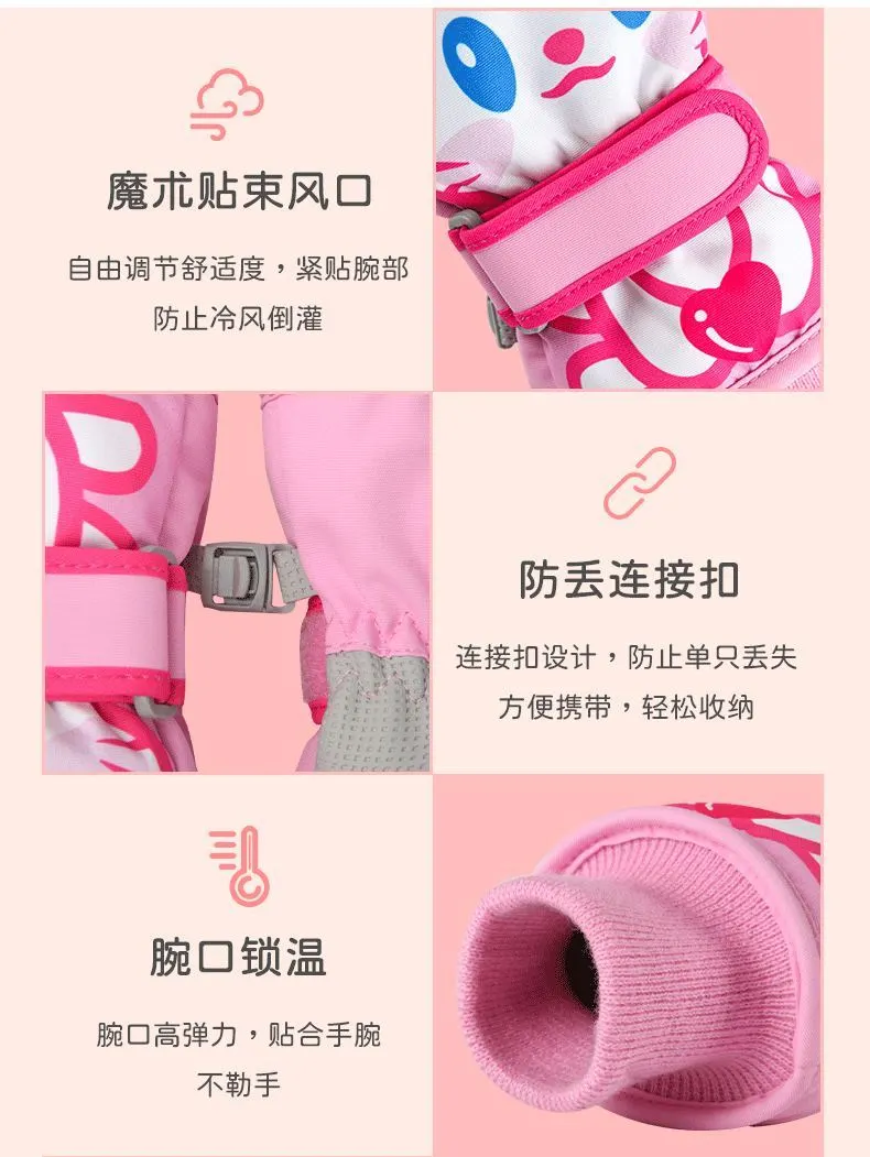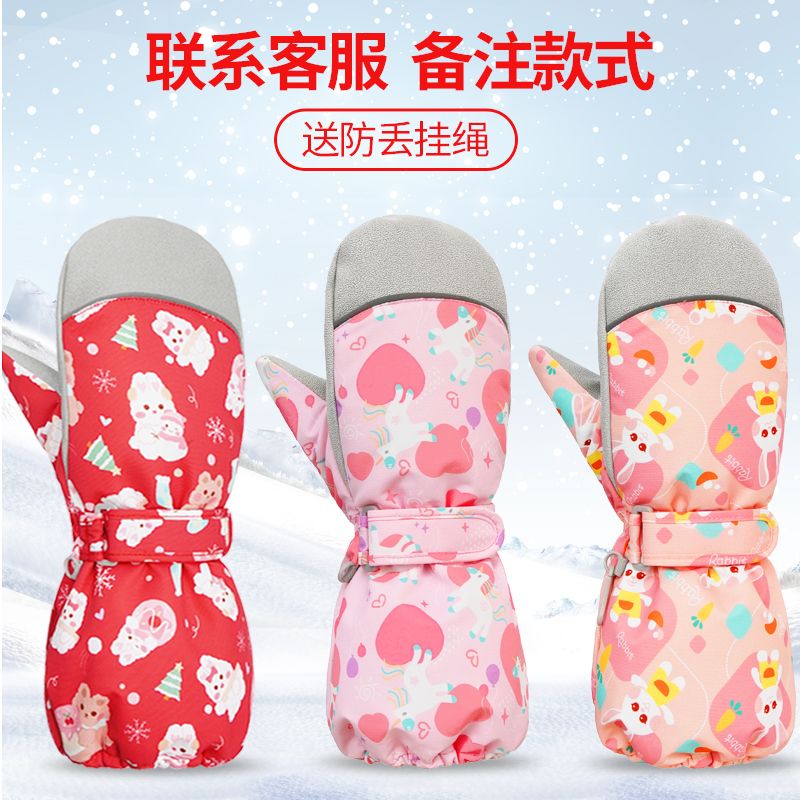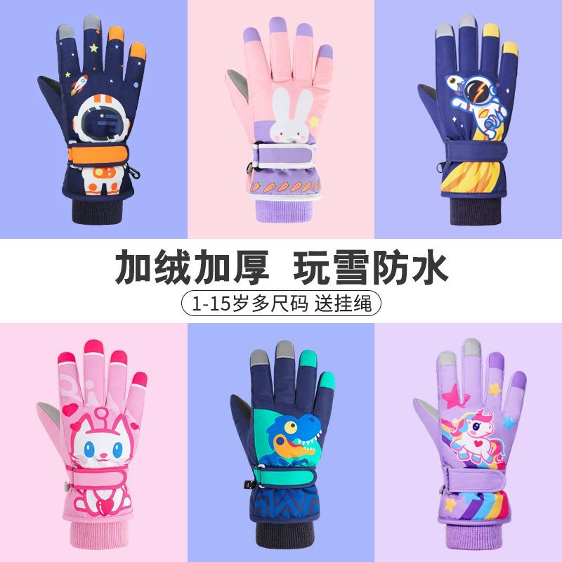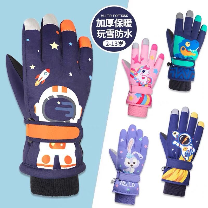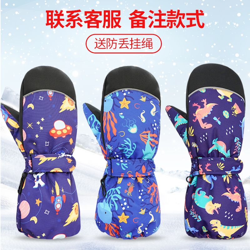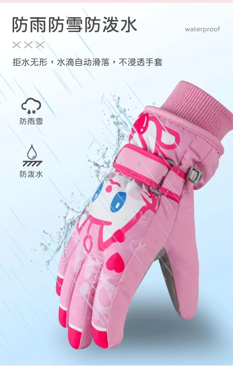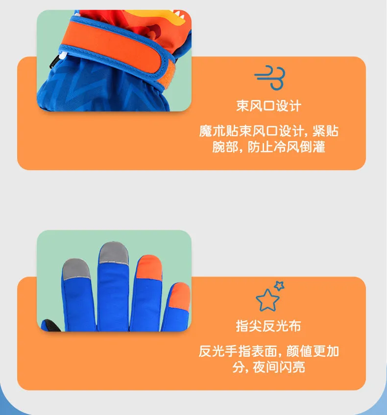 冬季儿童滑雪手套男童女孩学生加绒加厚防风保暖手套防水玩雪防寒