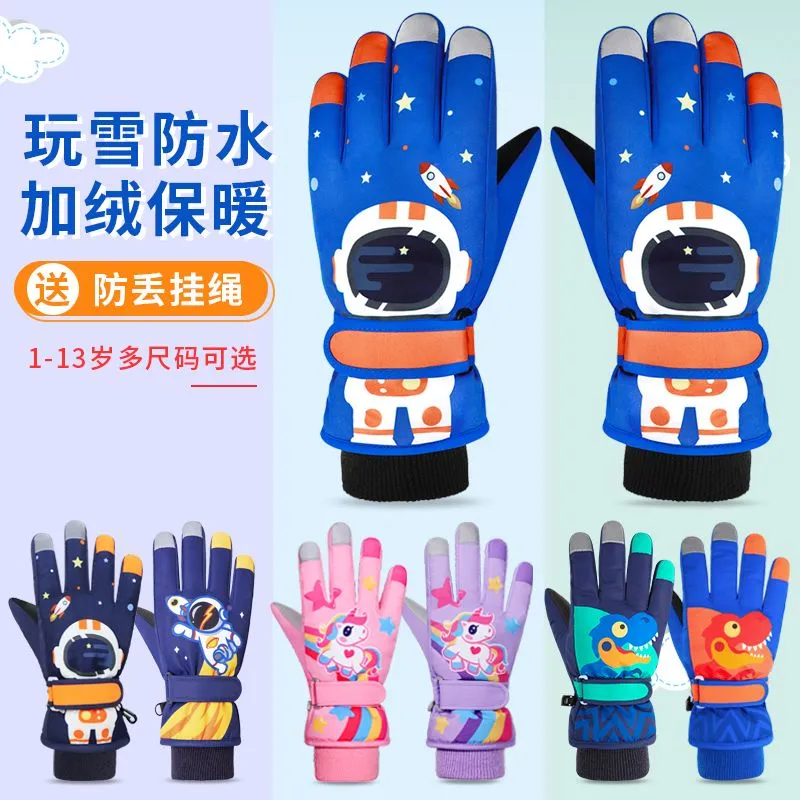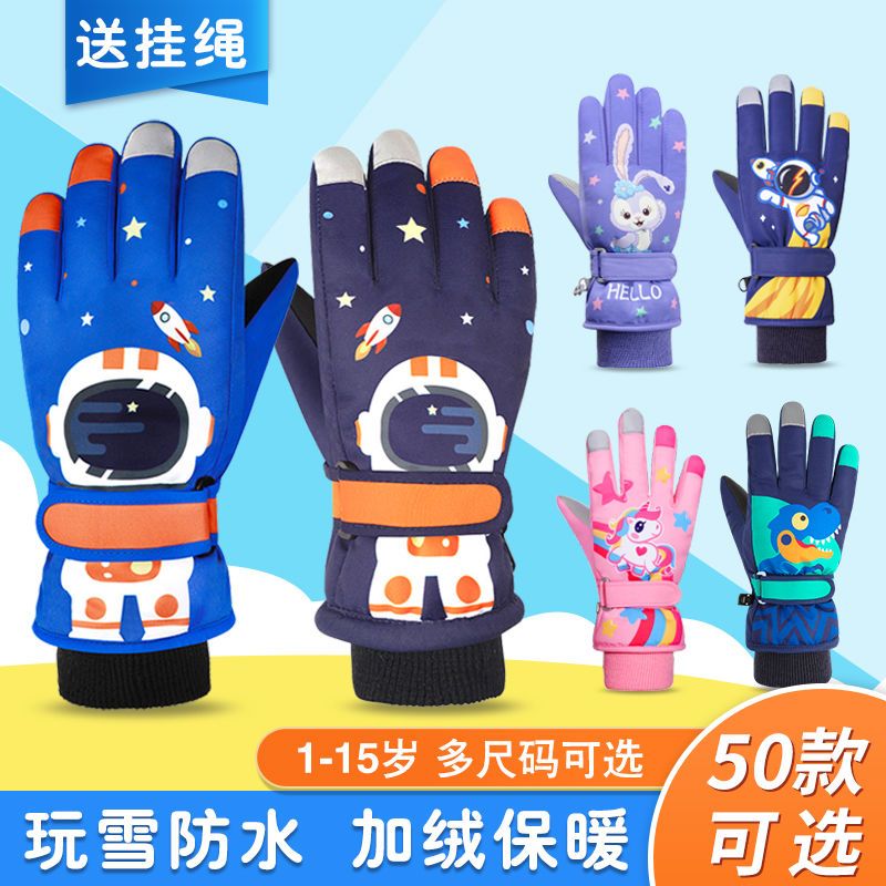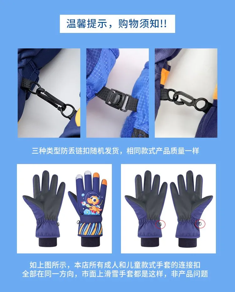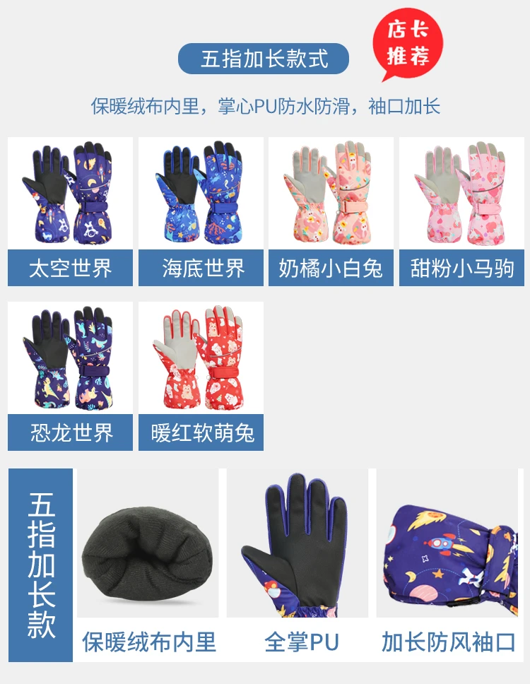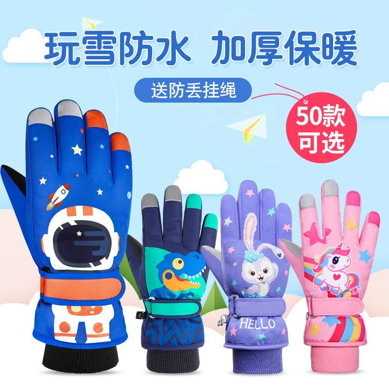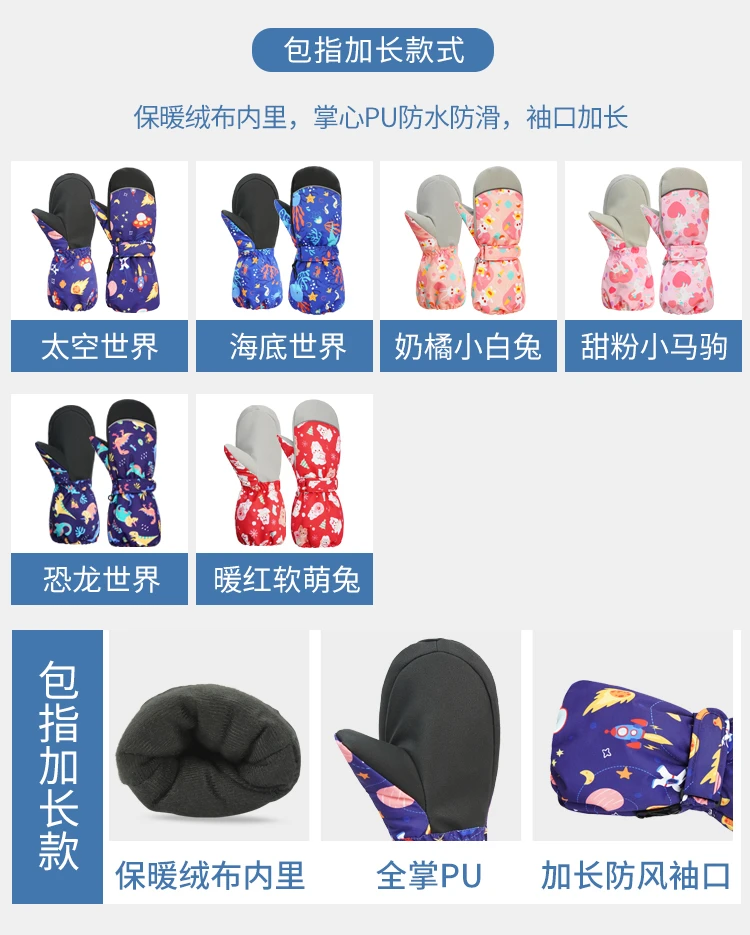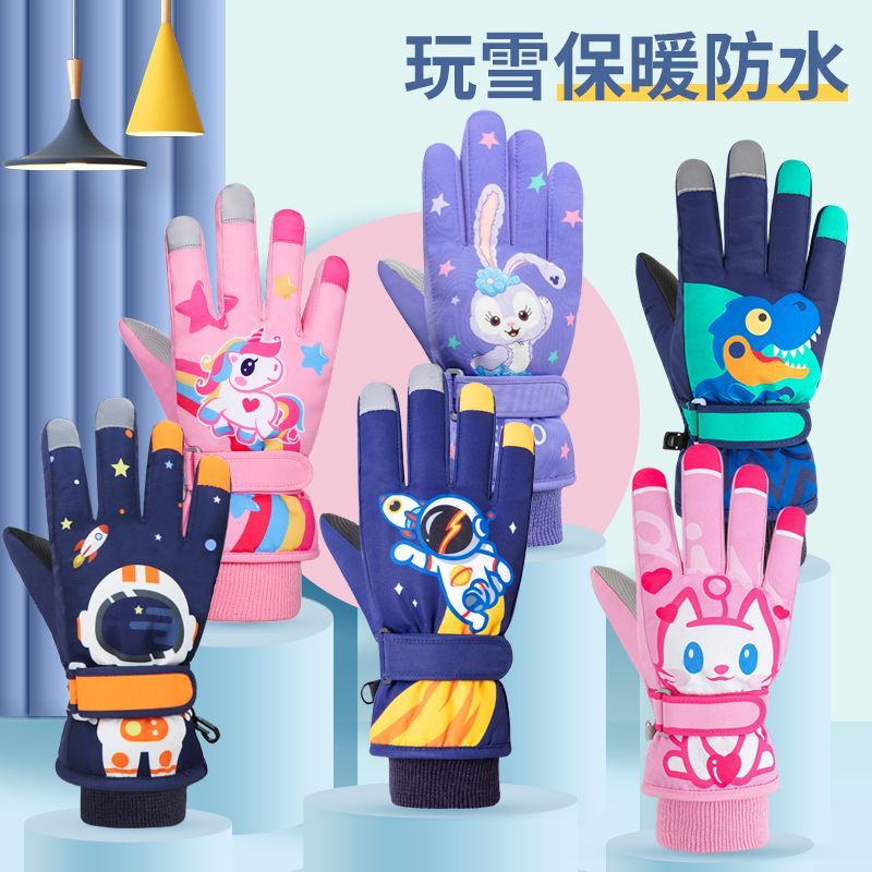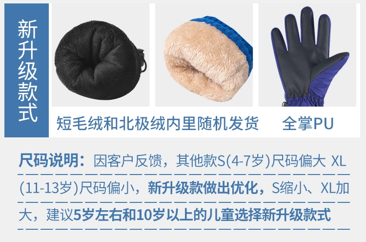 冬季儿童滑雪手套男童女孩学生加绒加厚防风保暖手套防水玩雪防寒