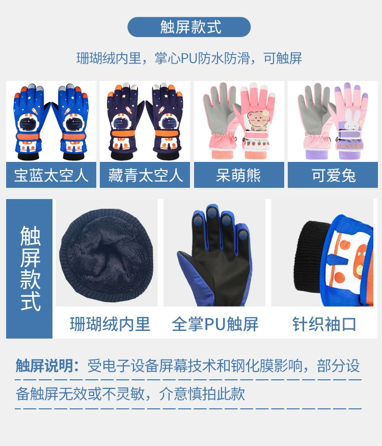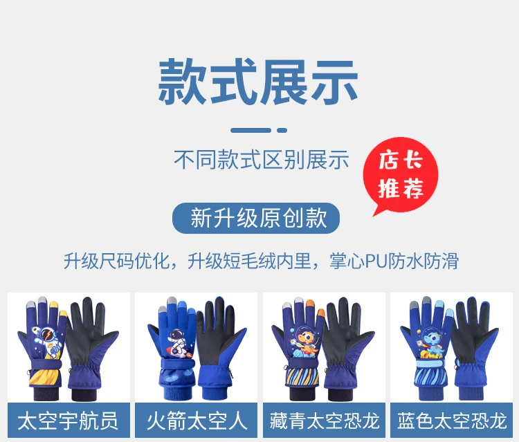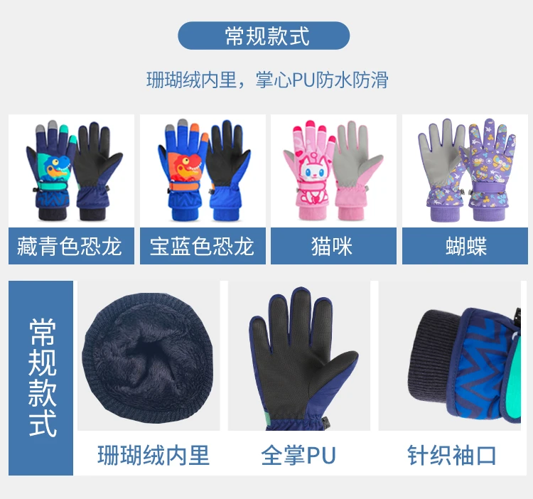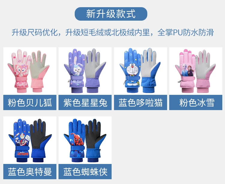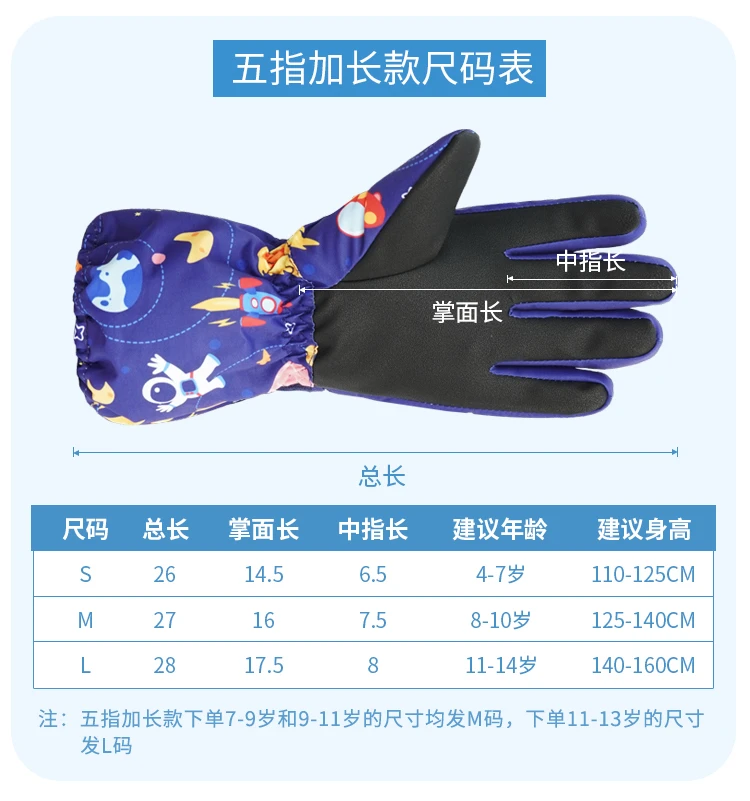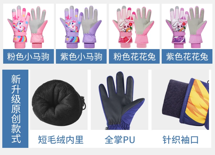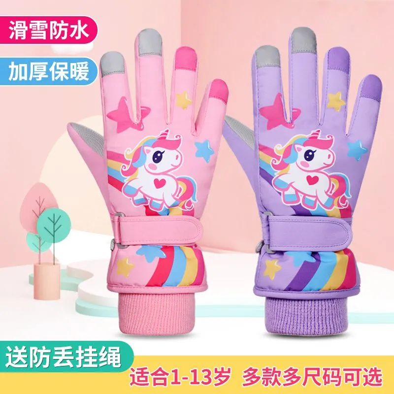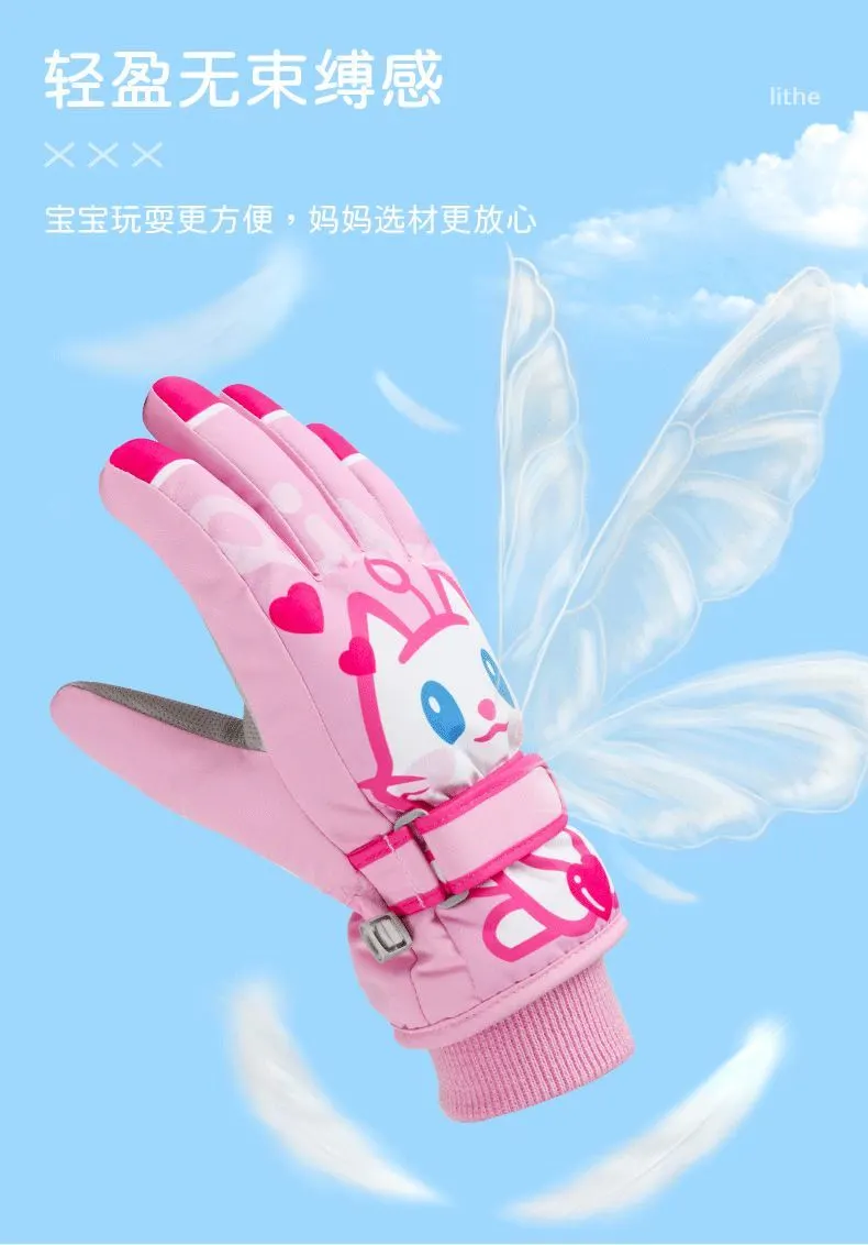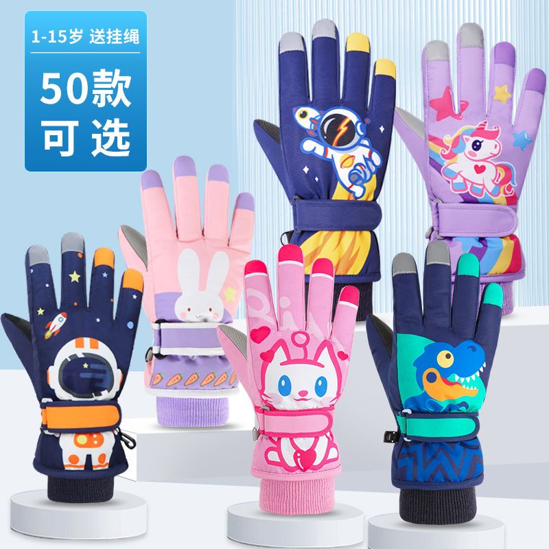 冬季儿童滑雪手套男童女孩学生加绒加厚防风保暖手套防水玩雪防寒