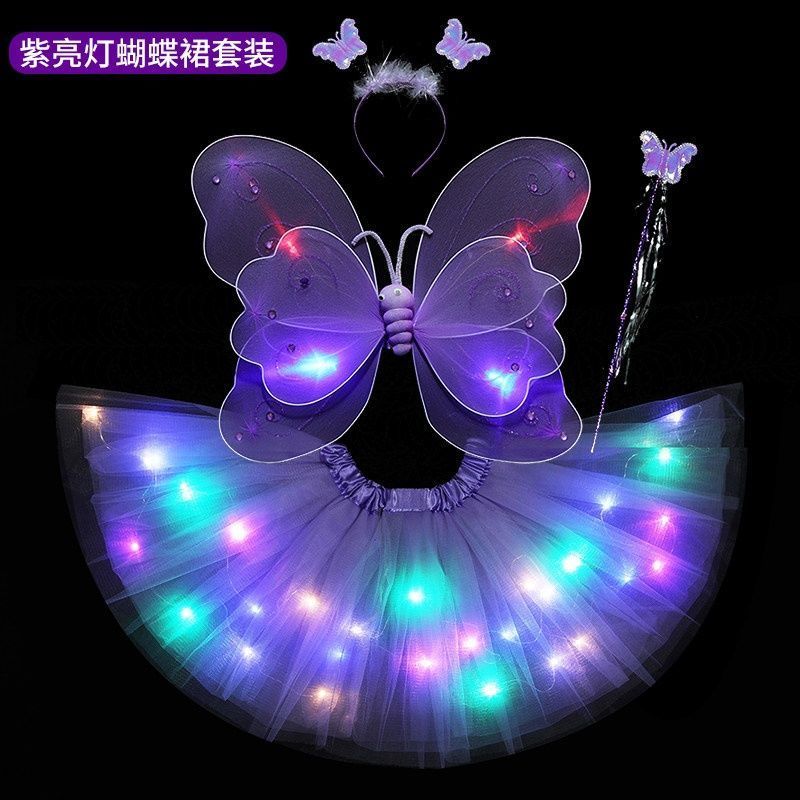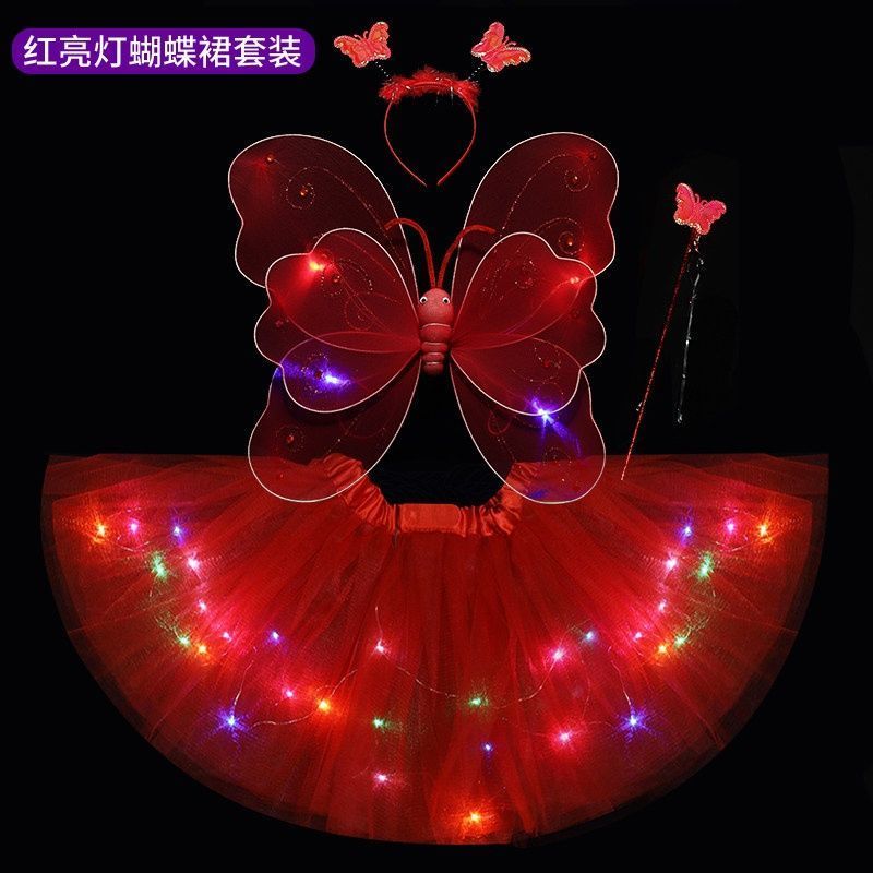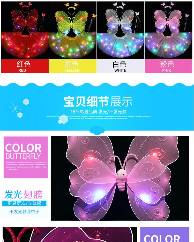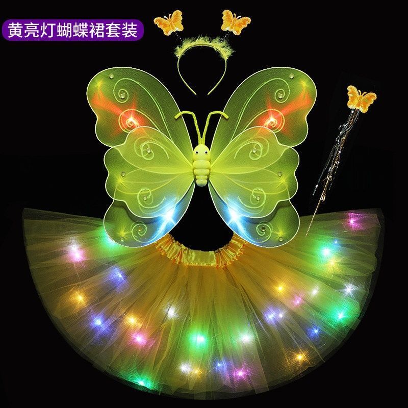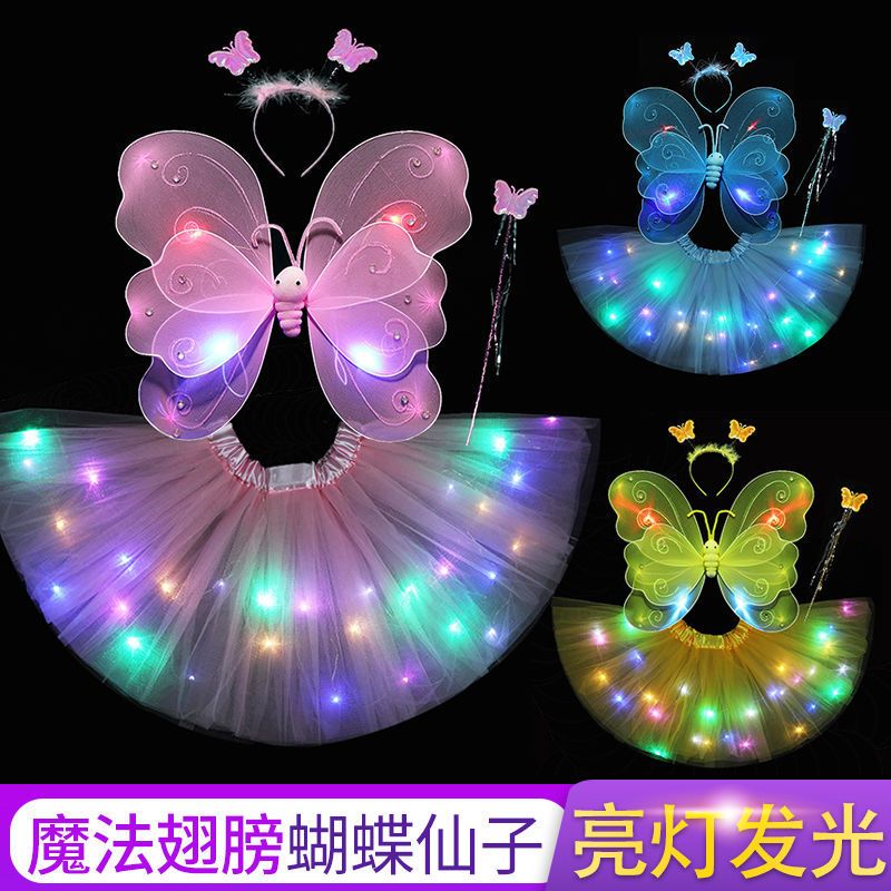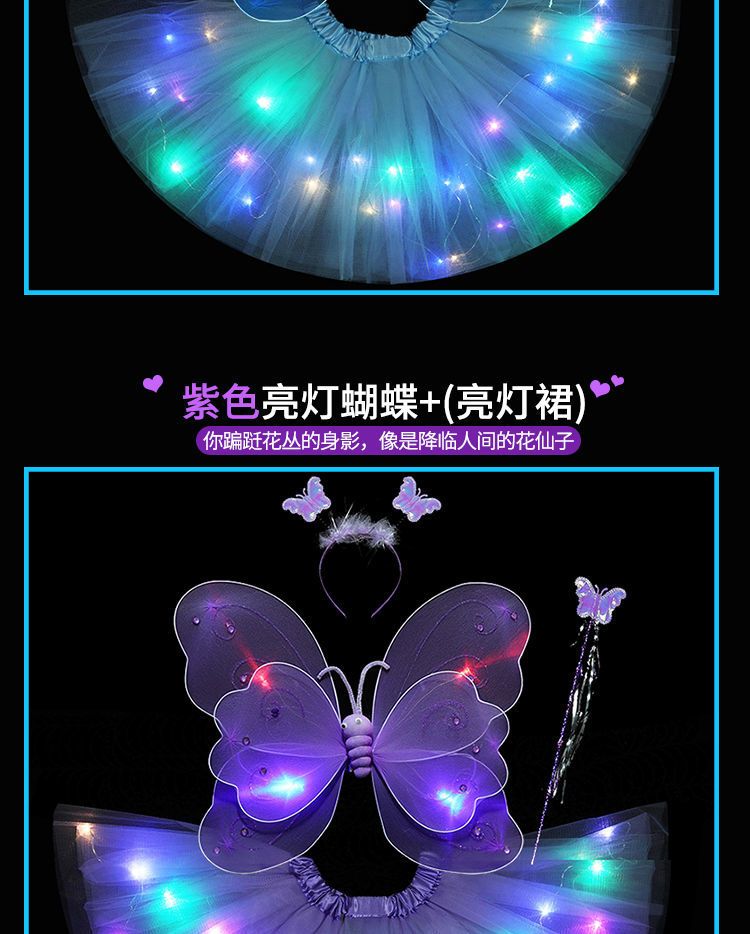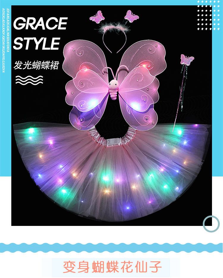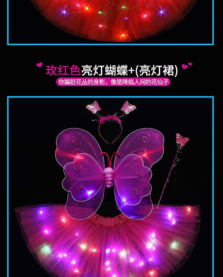 六一儿童节发光蝴蝶翅膀亮灯彩虹公主裙七彩女孩魔法萤火虫舞蹈服