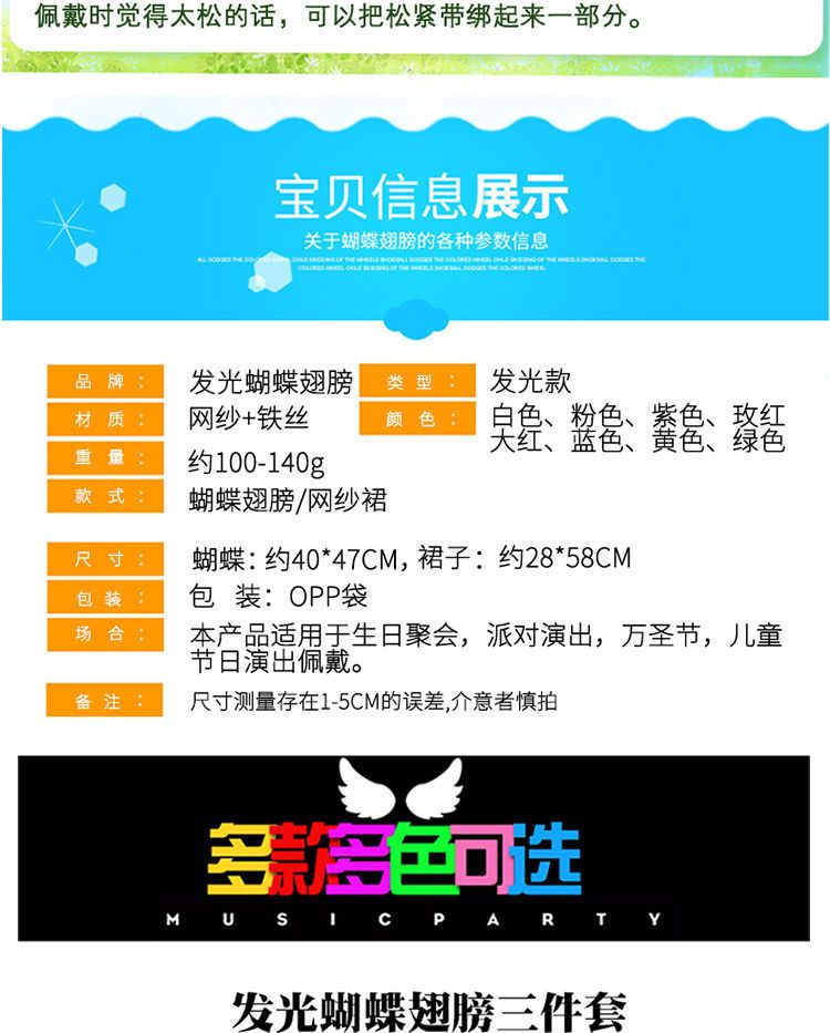 | blue headband + magic wand + light-emitting butterfly +20 lamp group(蓝发箍+魔法棒+发光蝴蝶+20灯群) | USD $3.55 | 99999 piece available |