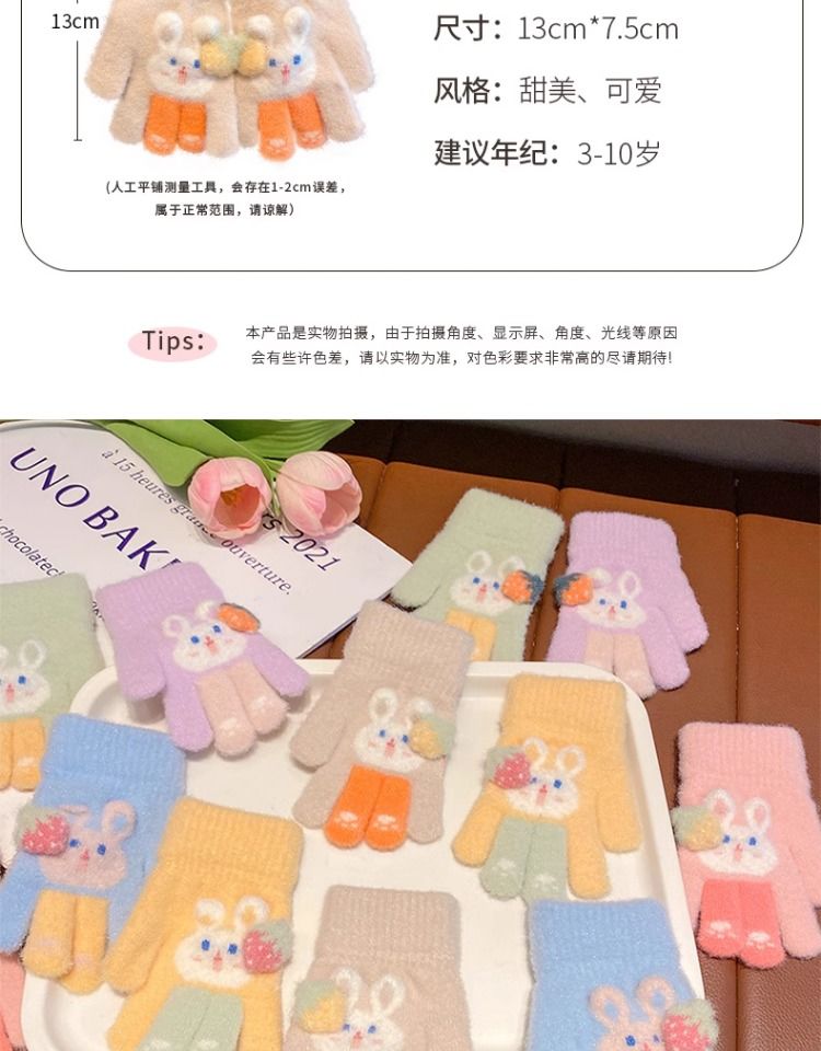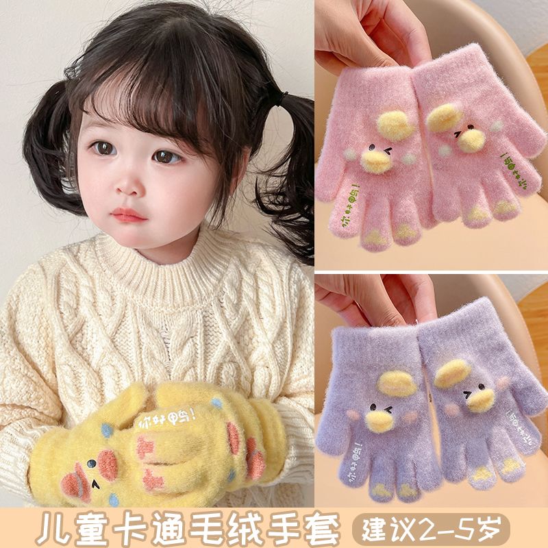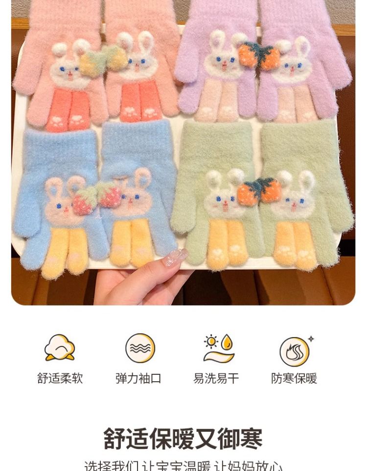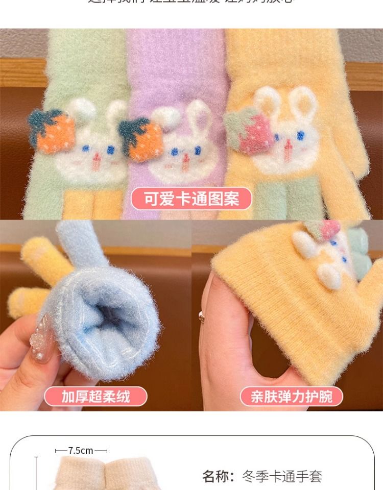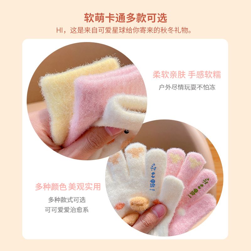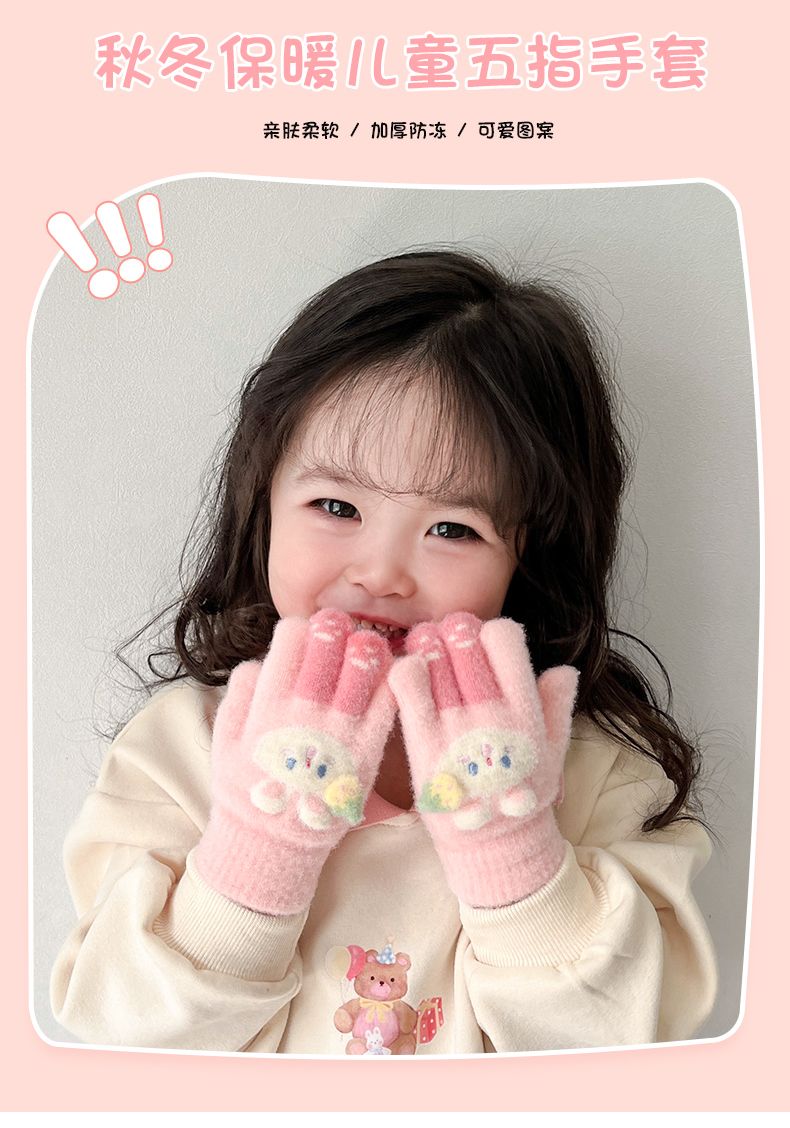 秋冬儿童保暖手套男童女童小孩卡通可爱五指分指防寒加绒幼儿手套