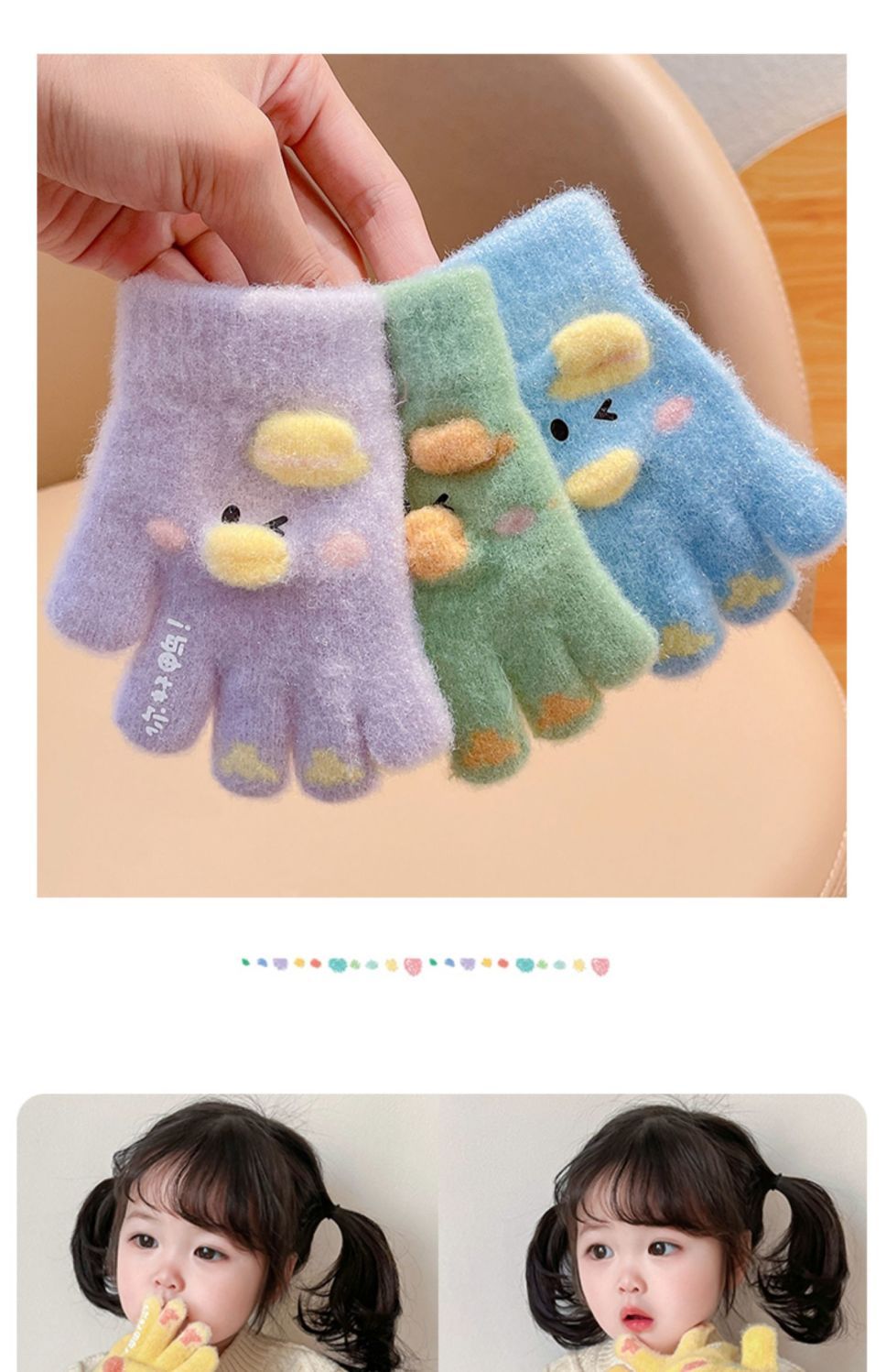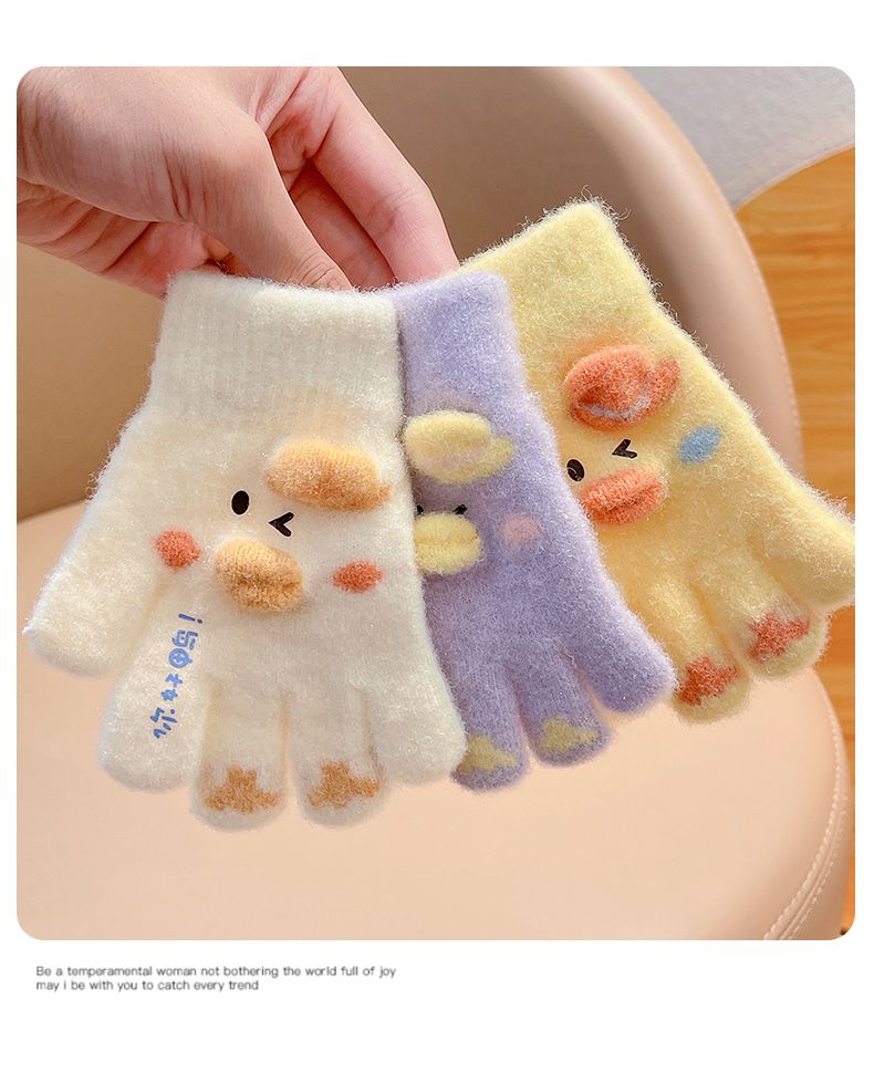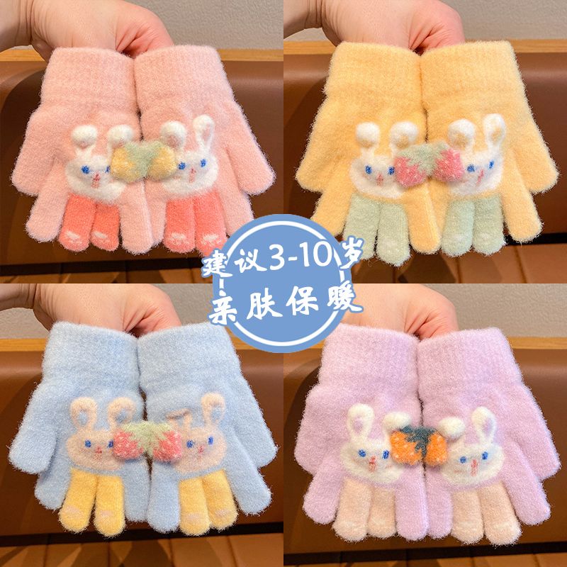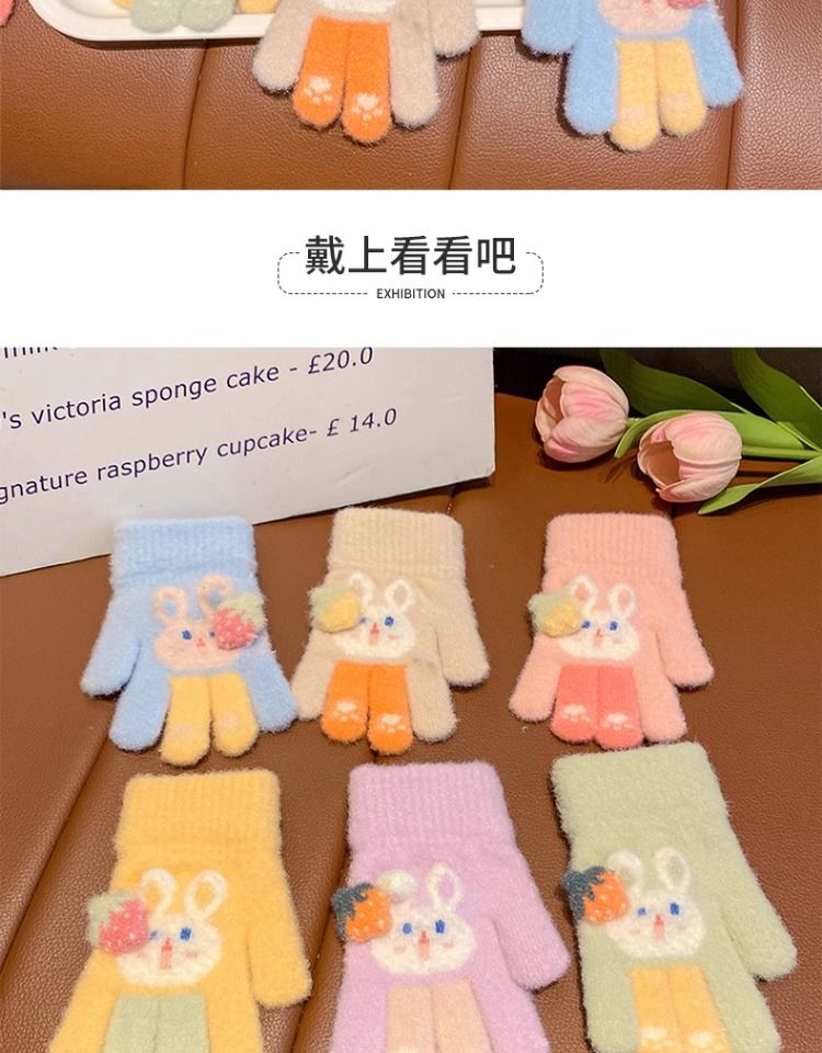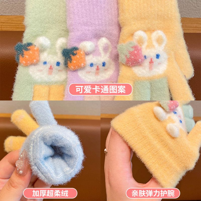 秋冬儿童保暖手套男童女童小孩卡通可爱五指分指防寒加绒幼儿手套