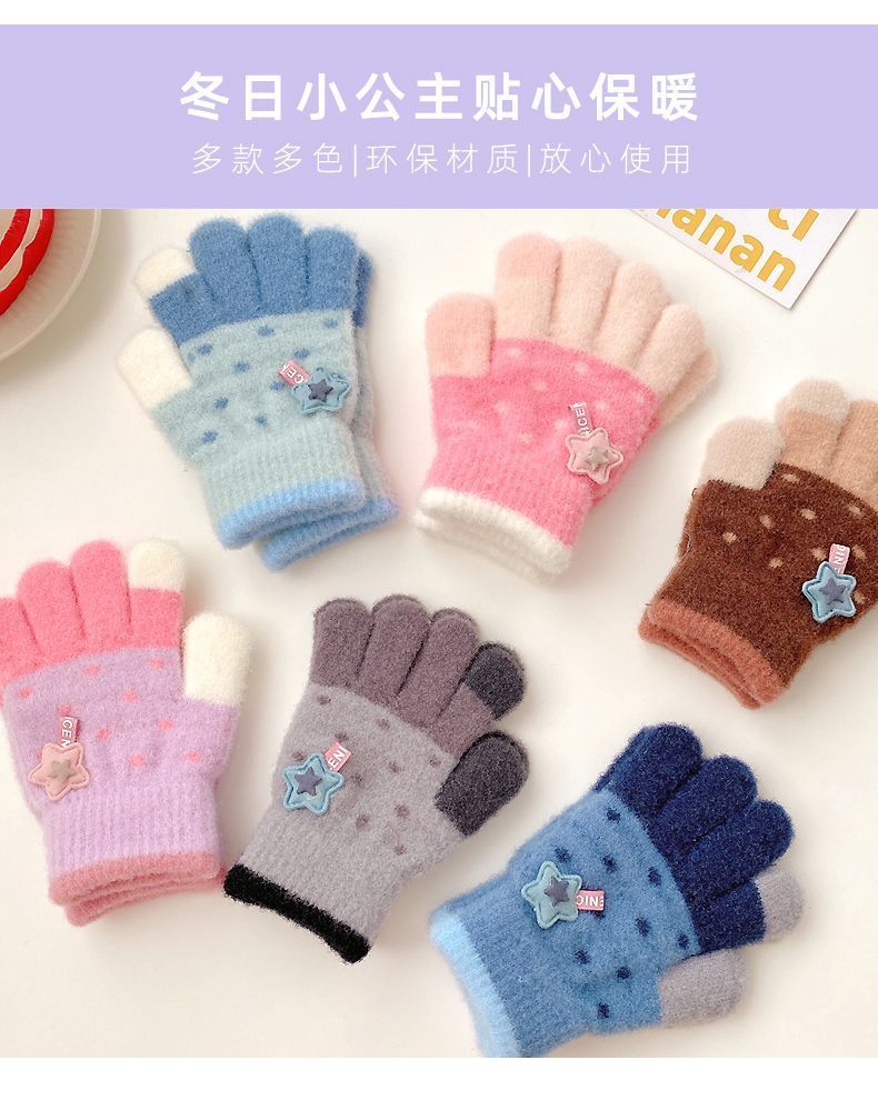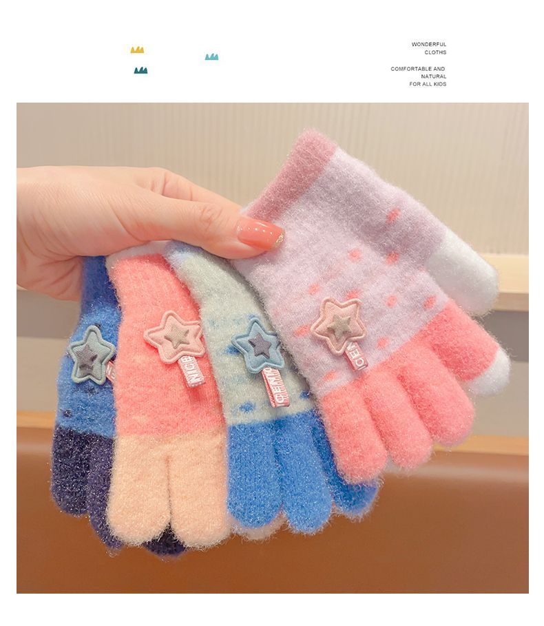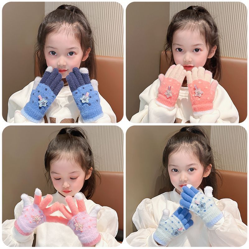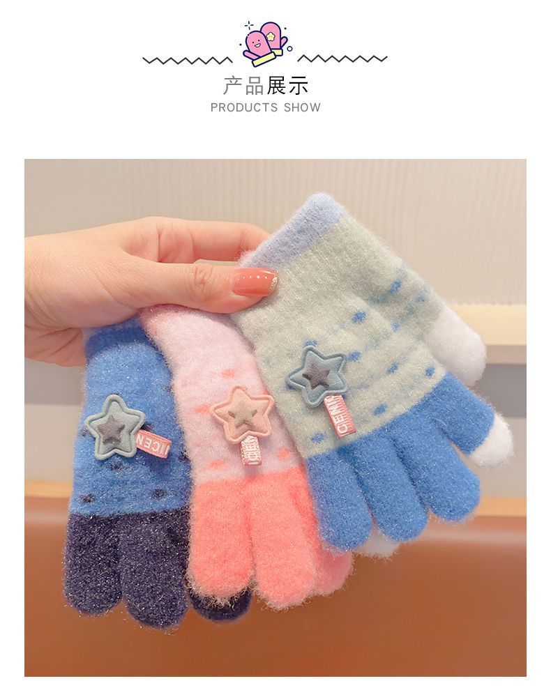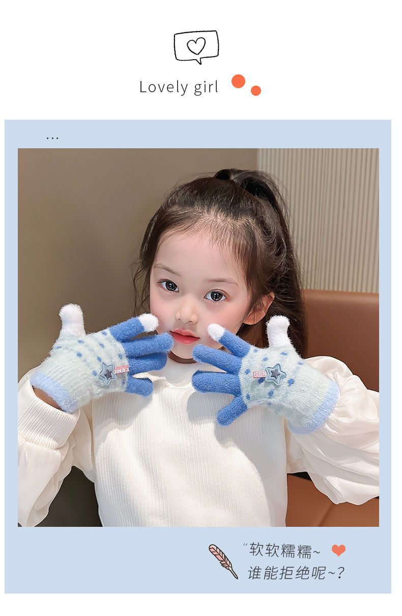 秋冬季儿童手套小孩可爱保暖女童男童加绒毛线宝宝针织五指套冬天