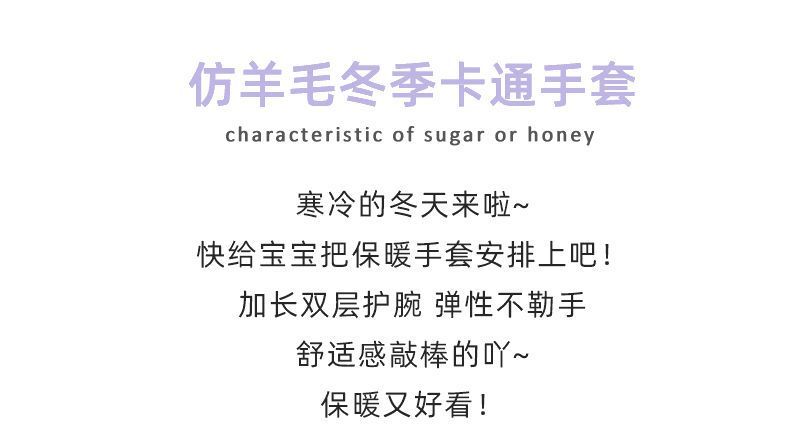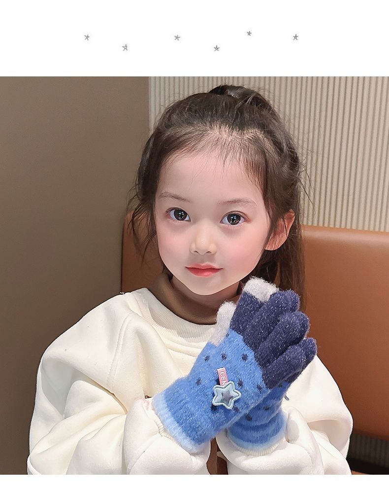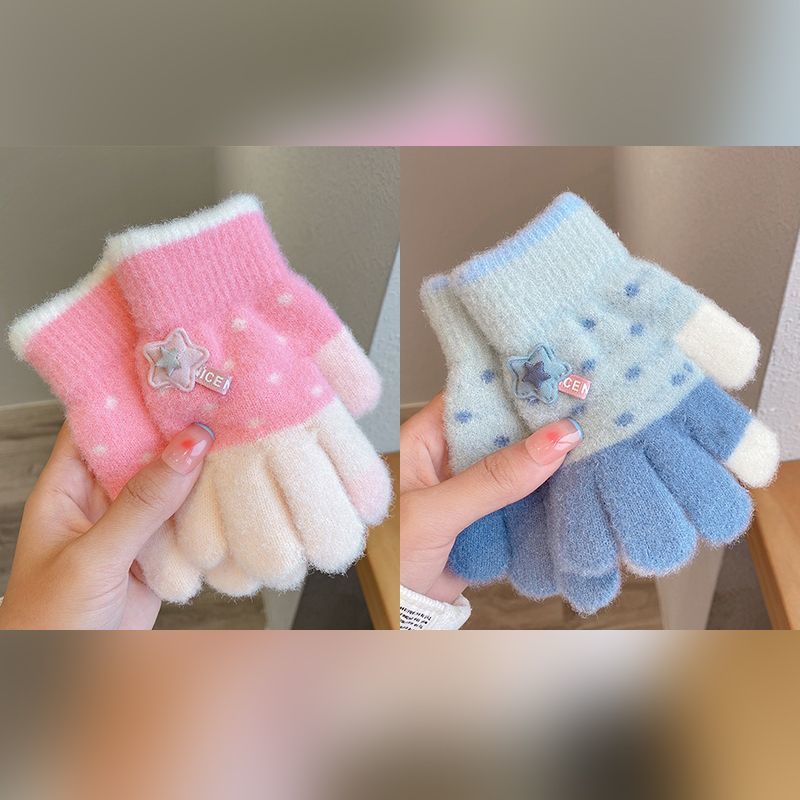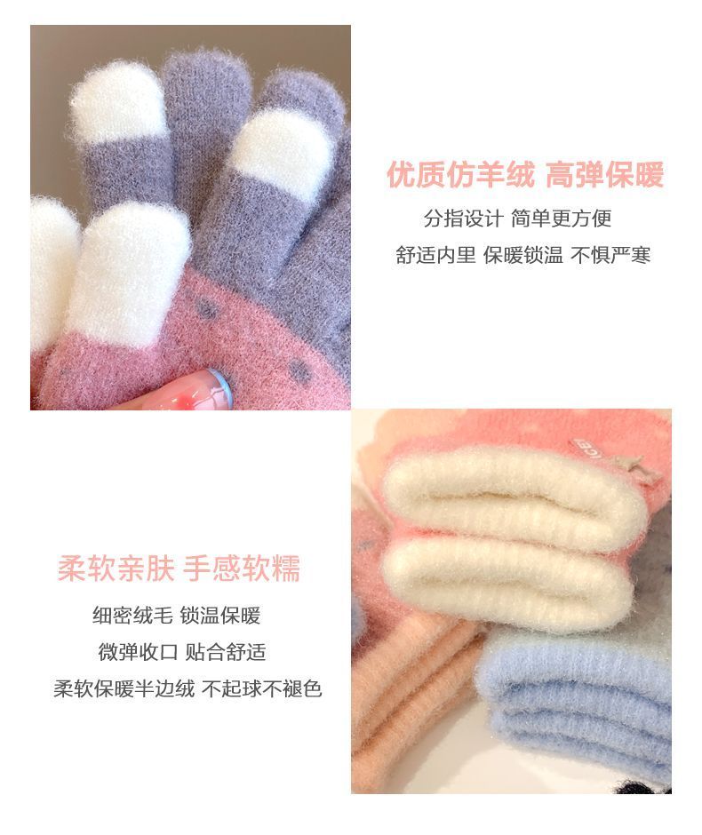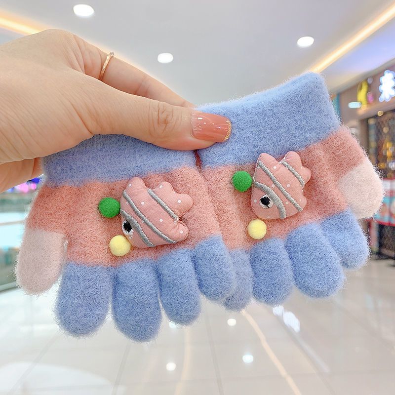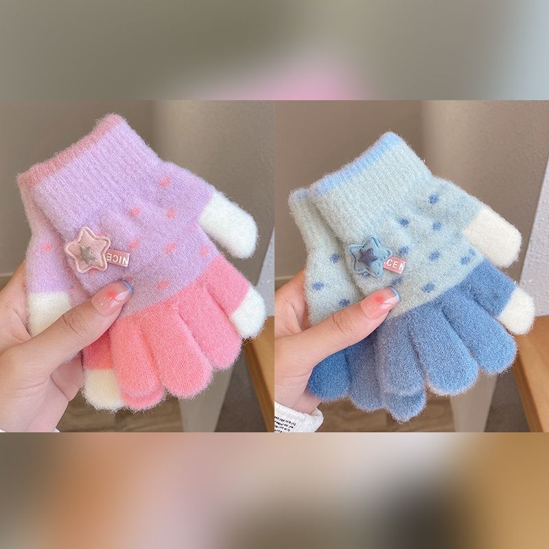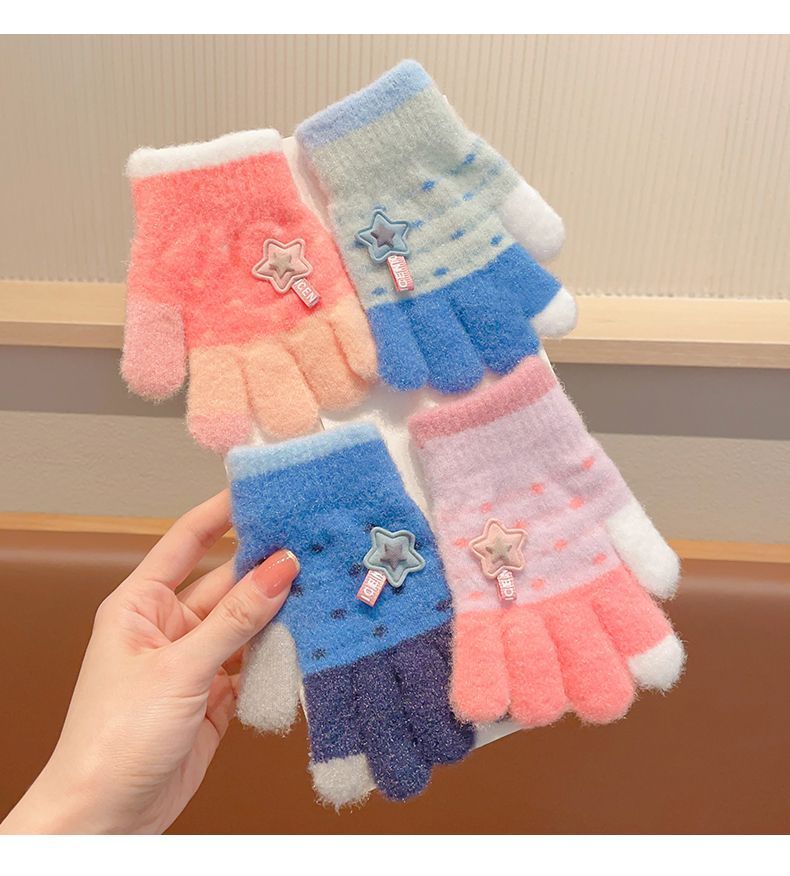 秋冬季儿童手套小孩可爱保暖女童男童加绒毛线宝宝针织五指套冬天