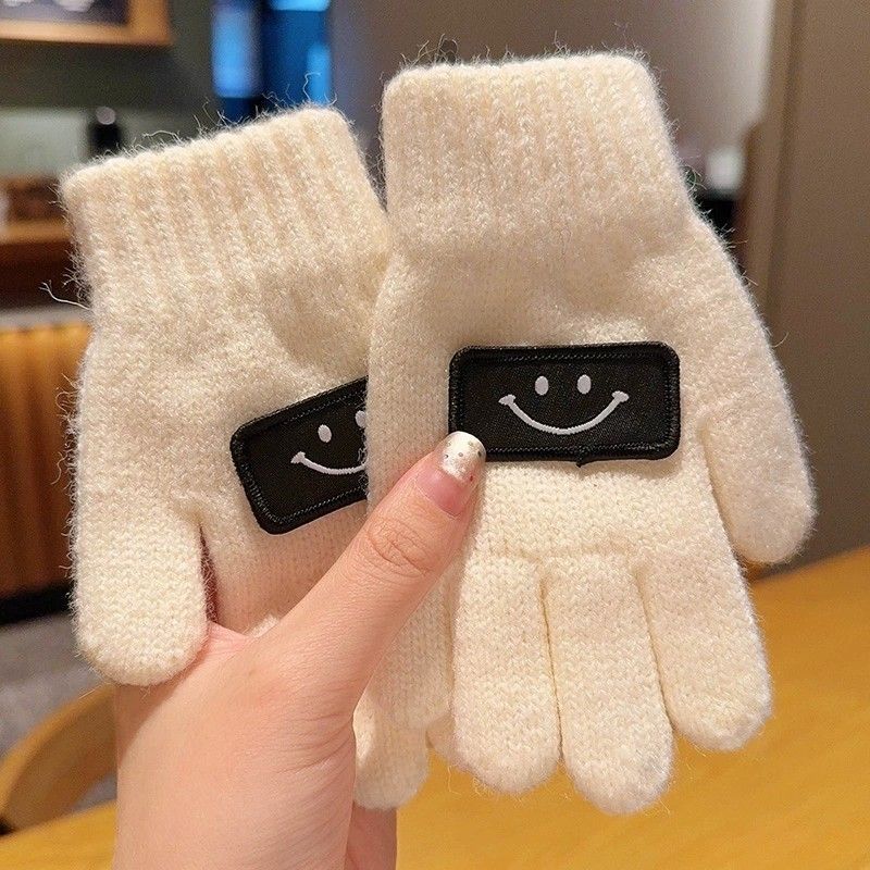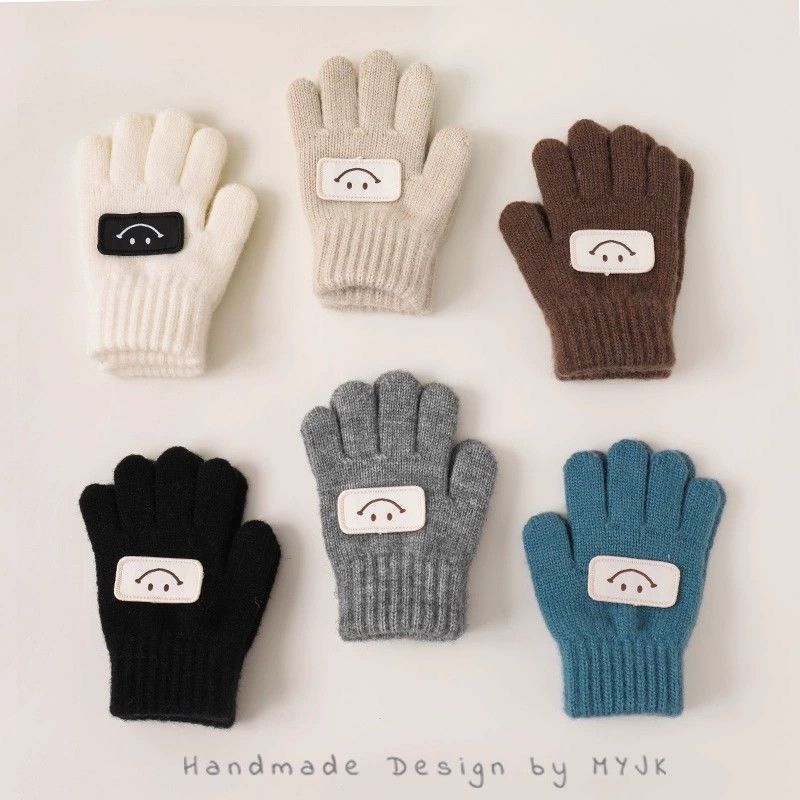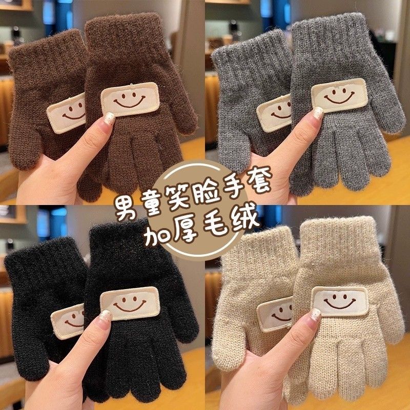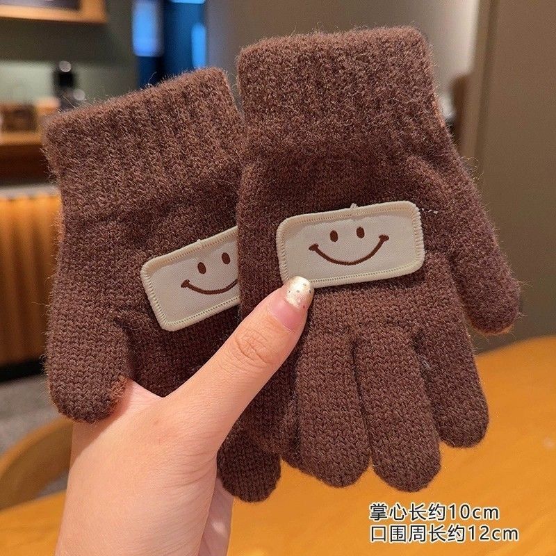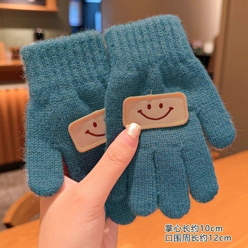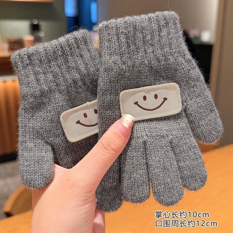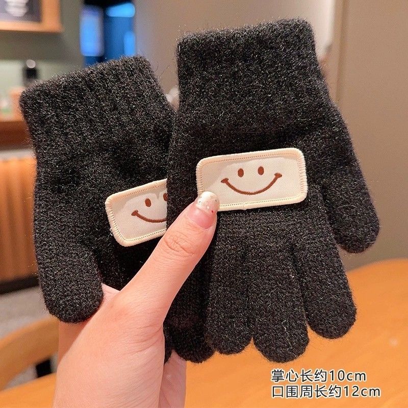 韩版儿童针织五指保暖手套男女宝宝冬季保暖可爱笑脸分指毛线手套