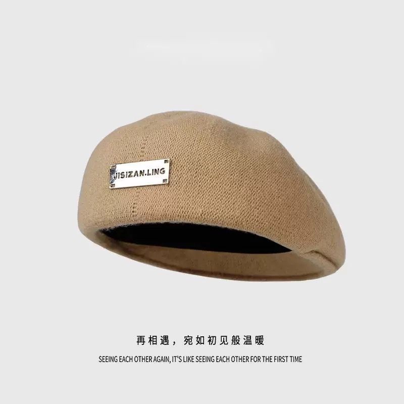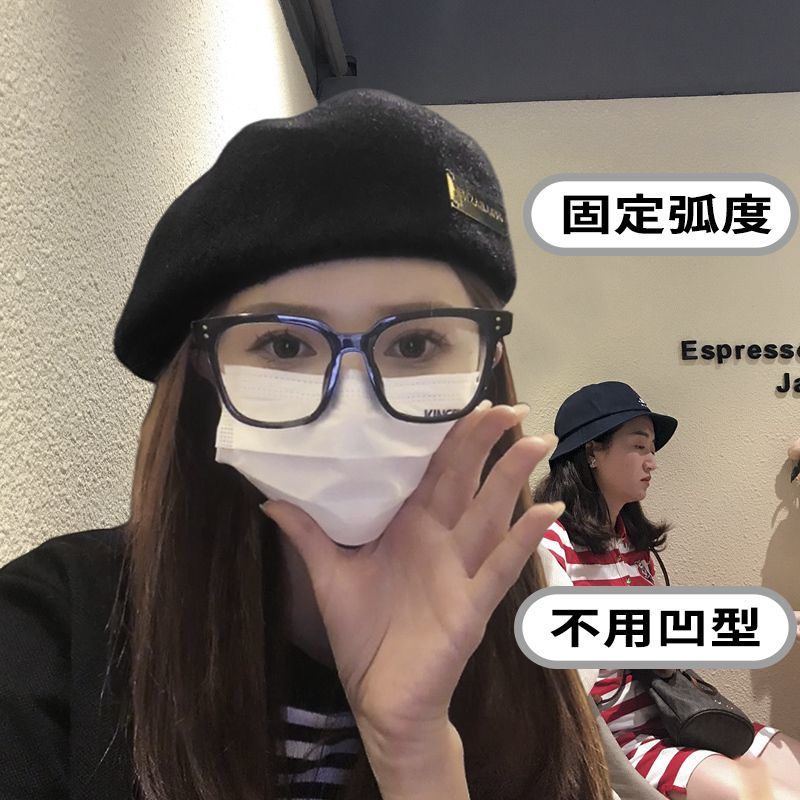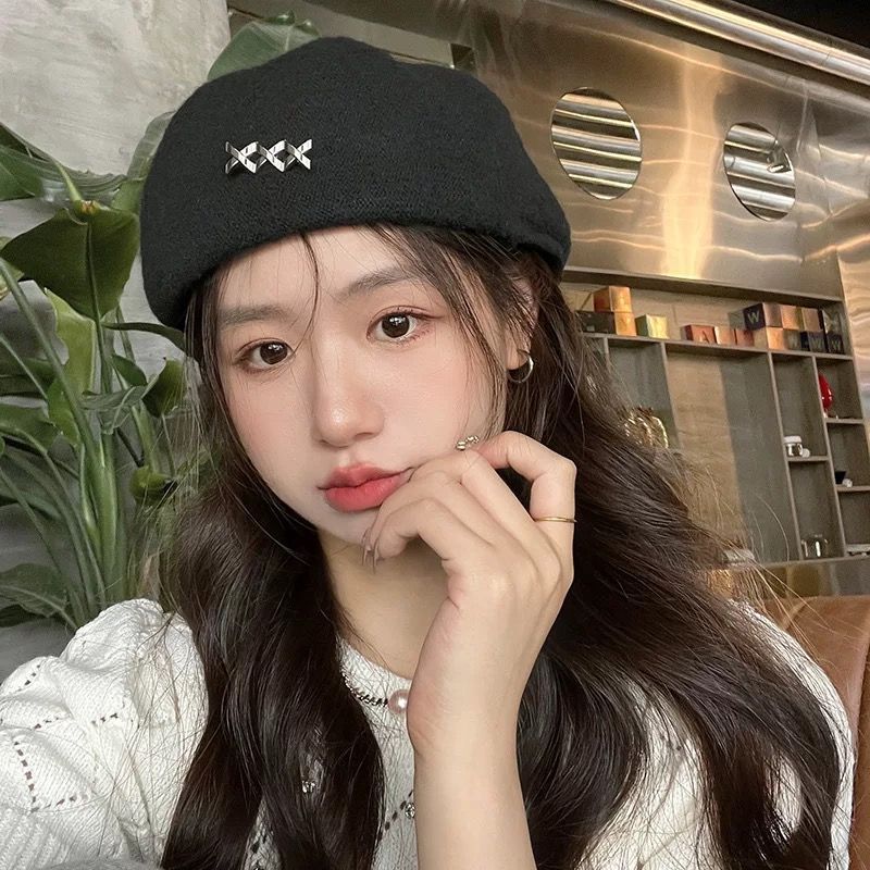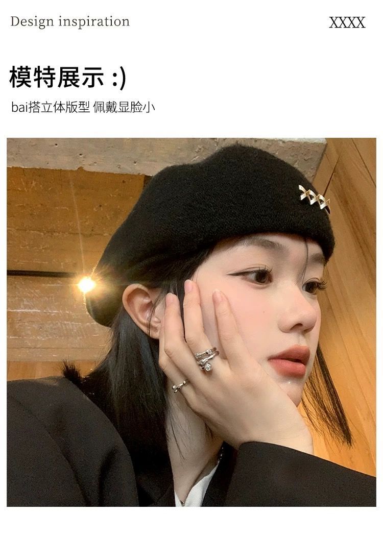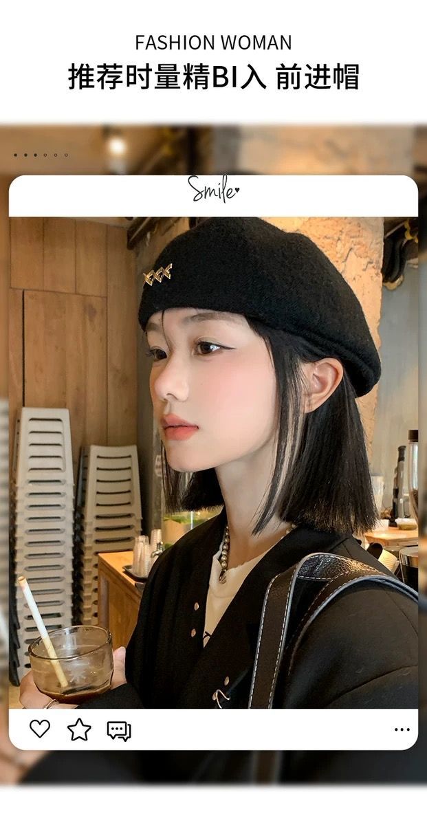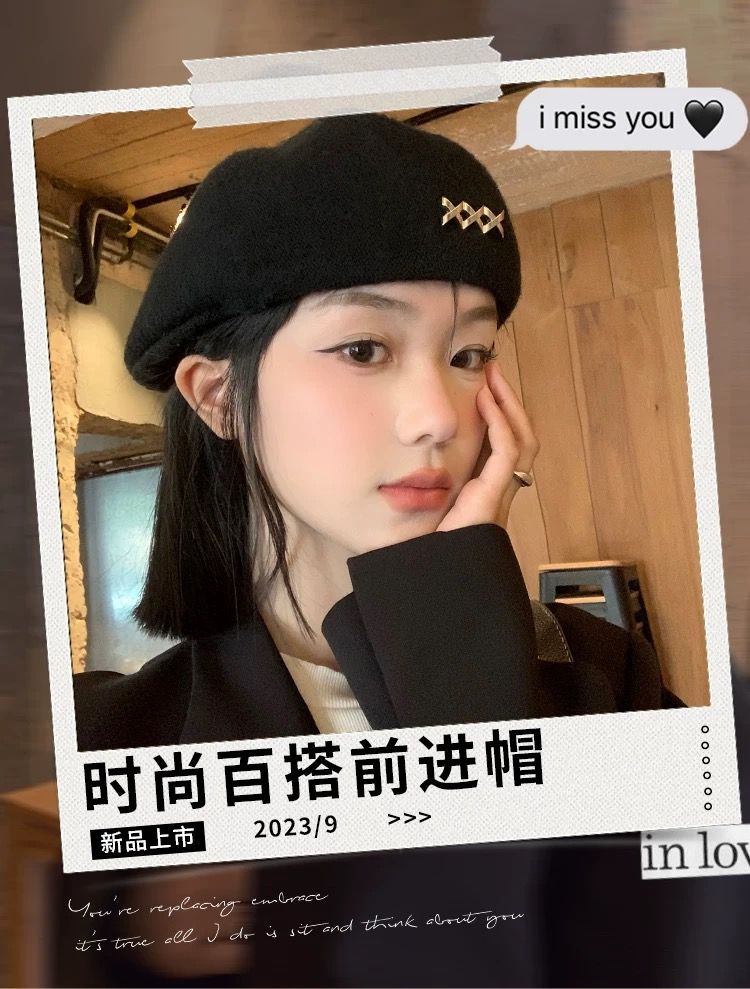 贝雷帽女秋冬季韩系黑色百搭毛呢保暖显脸小大头围蓓蕾画家前进帽