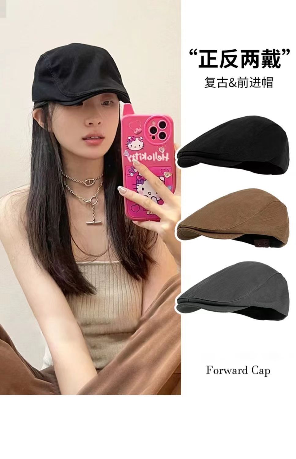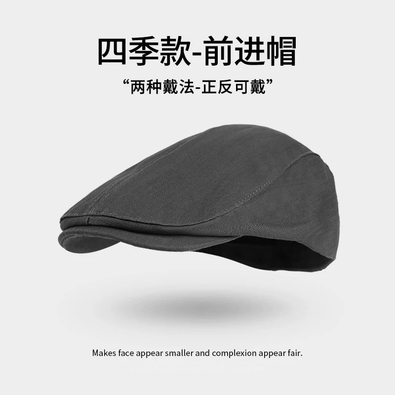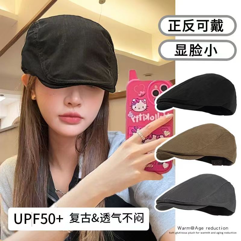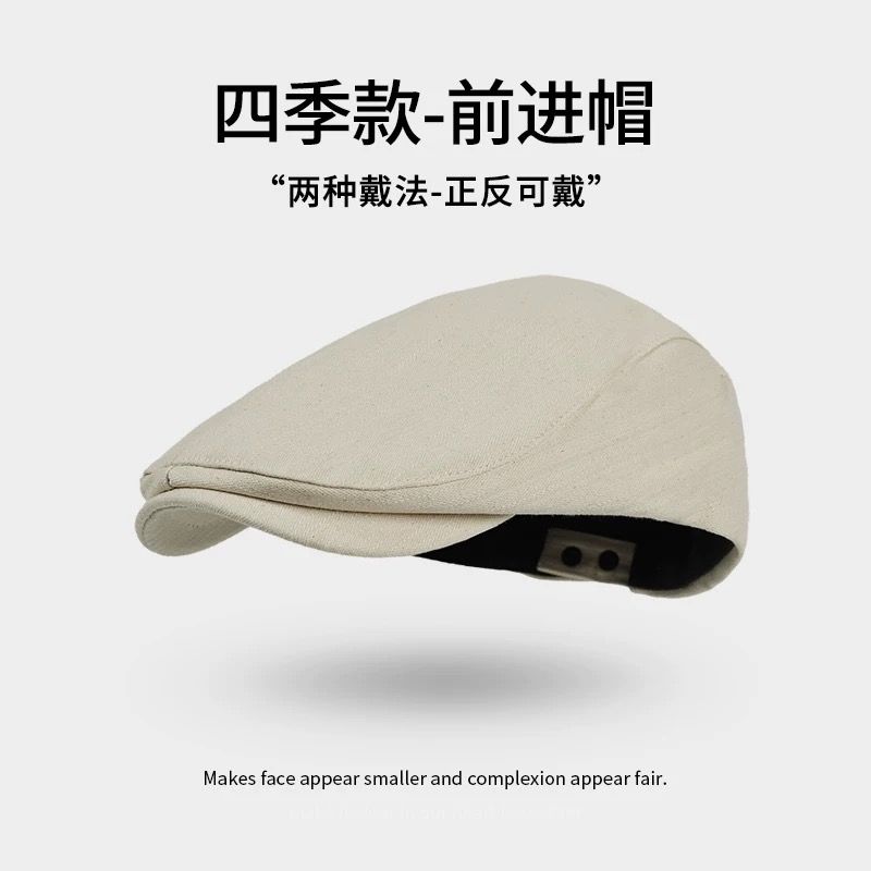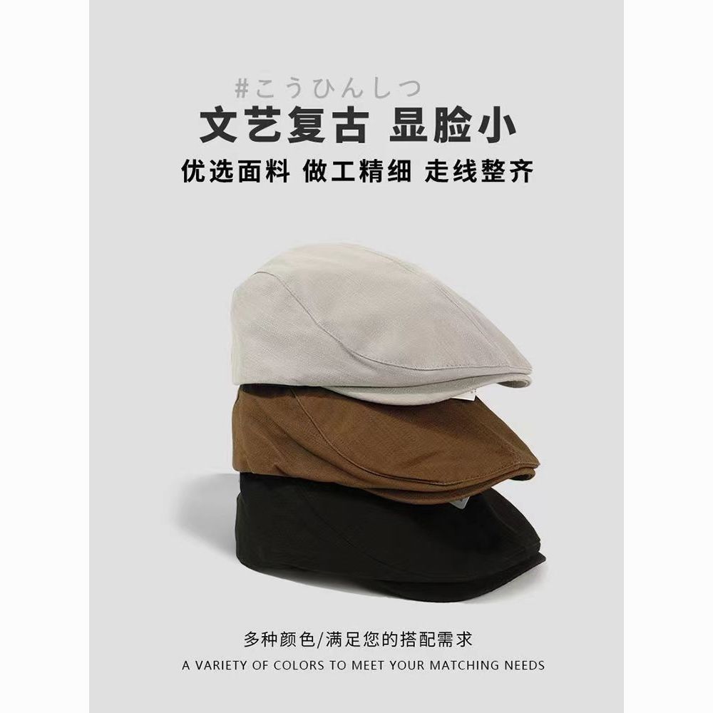 英伦风纯色前进帽女夏季百搭反戴鸭舌贝雷帽复古画家报童帽子秋冬