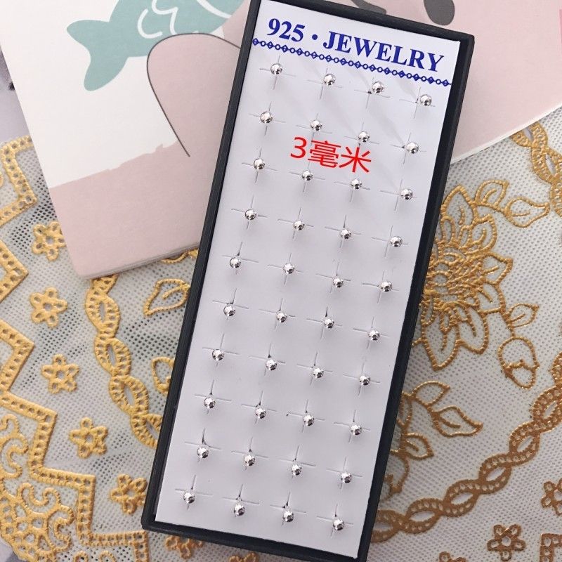 韩国简约豆豆耳钉新款大小圆球光面耳骨钉盒装男女百搭耳饰品