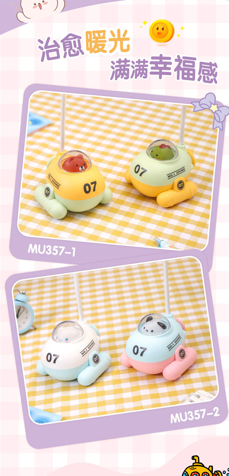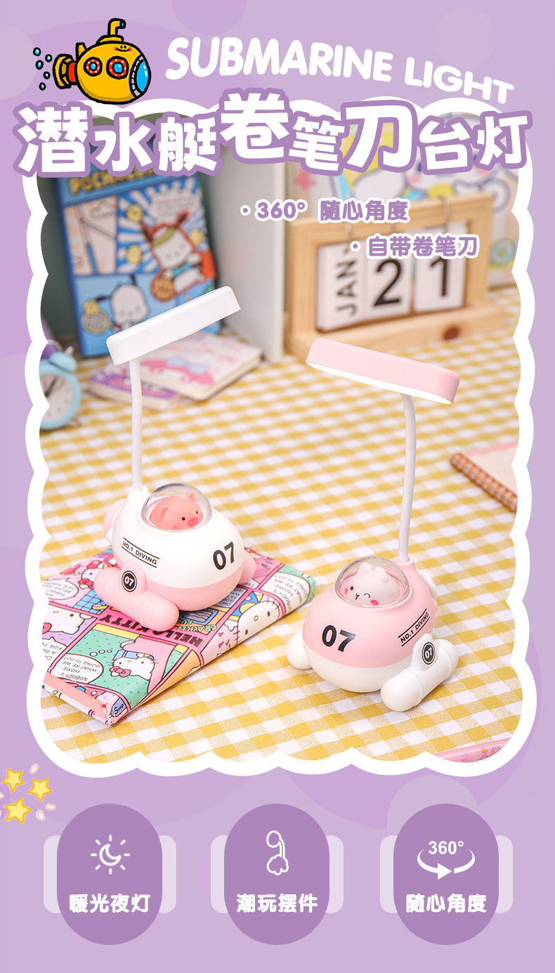 跨境热销潜水艇小台灯USB充电 学生便携卷笔刀照明灯卧室氛围LED