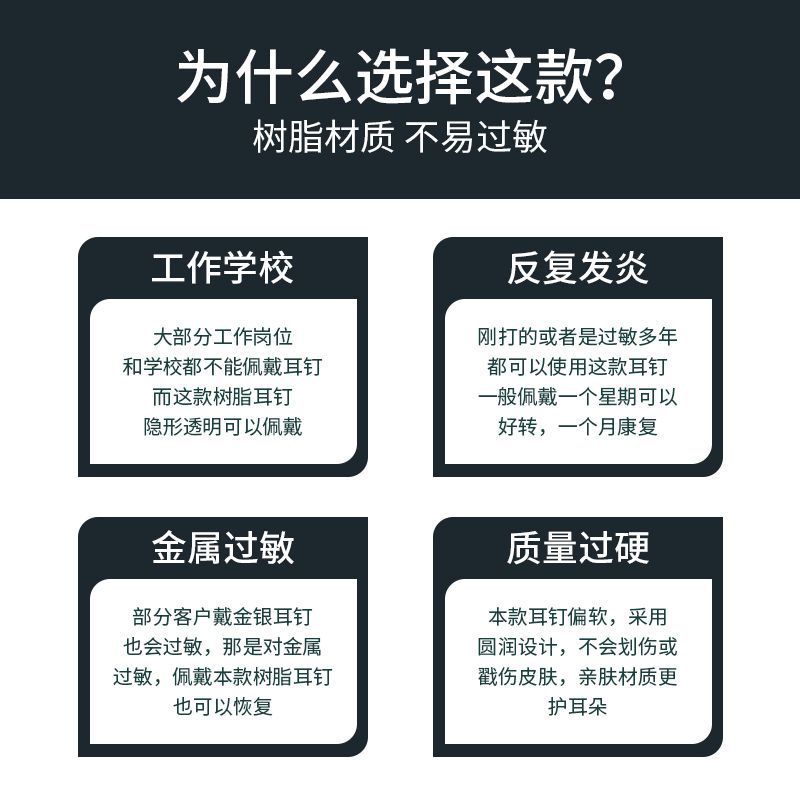 养耳洞树脂耳棒透明隐形睡觉免摘塑料防堵针耳棍耳钉女学生