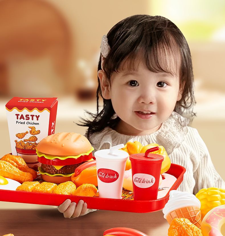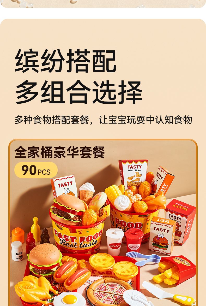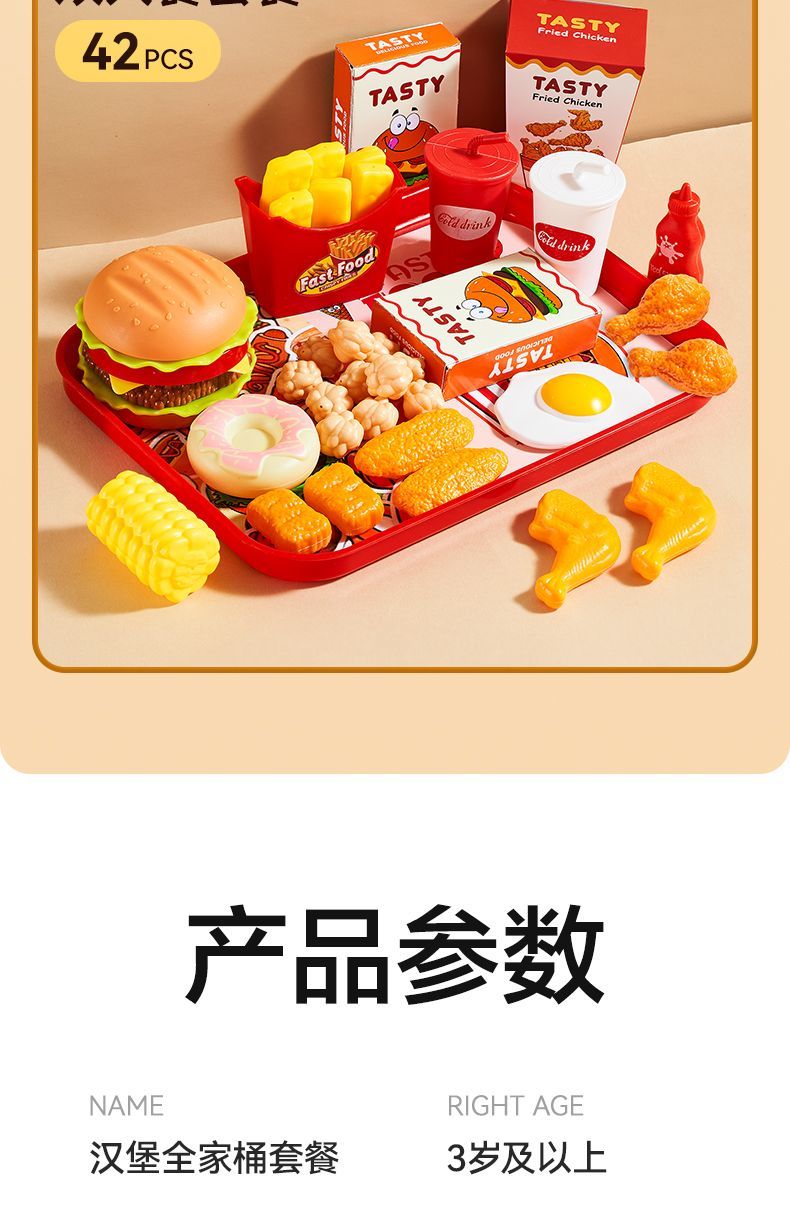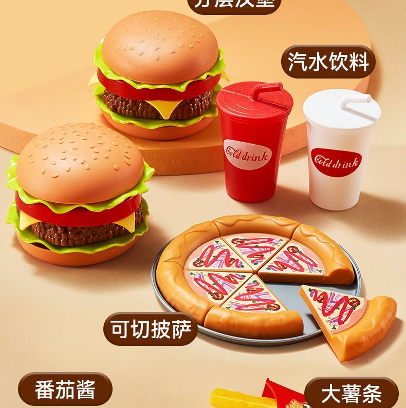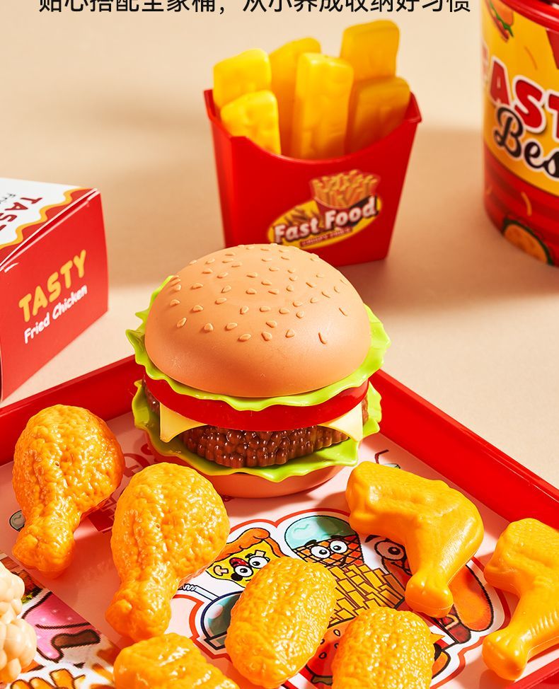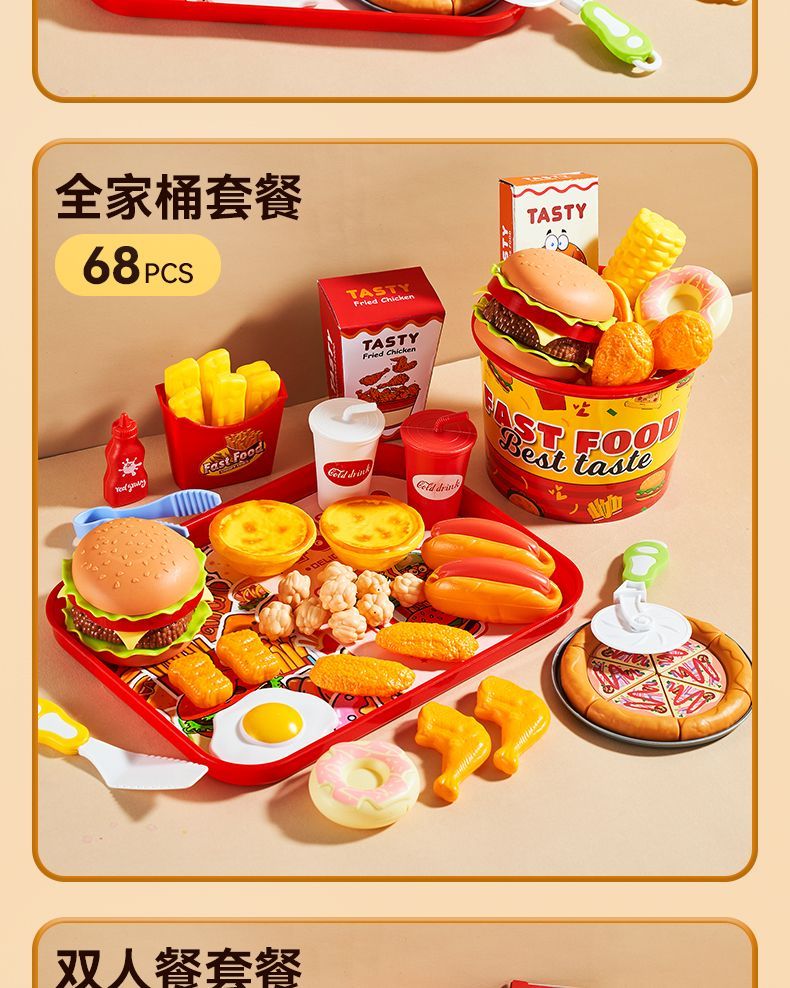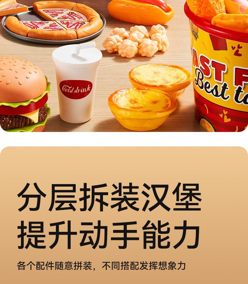 儿童汉堡全家桶套餐过家家厨房仿真食物汉堡包薯条益智模型玩具