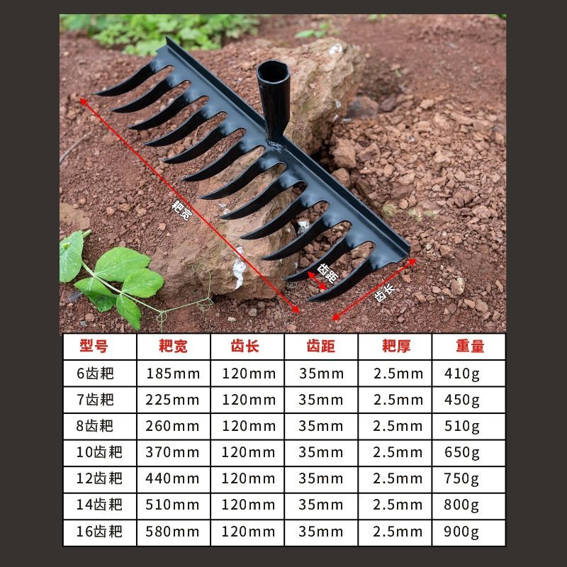 | thickened hardened manganese steel rake 16 teeth (single head)(加厚加硬锰钢钉耙16齿(单头)) | USD $3.42 | 99999 piece available |