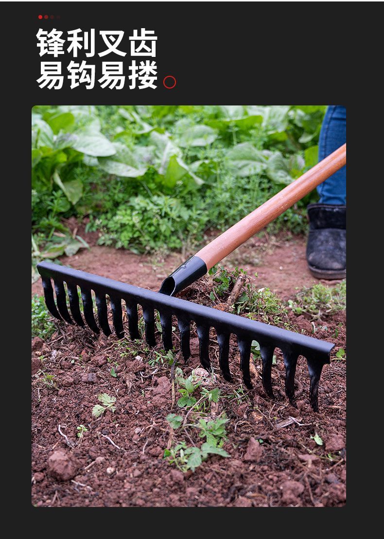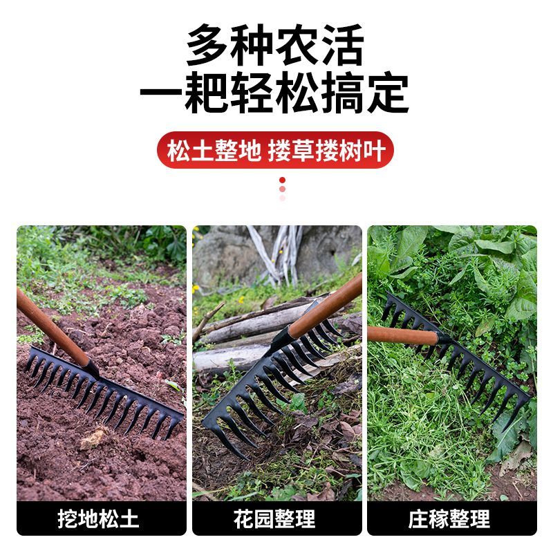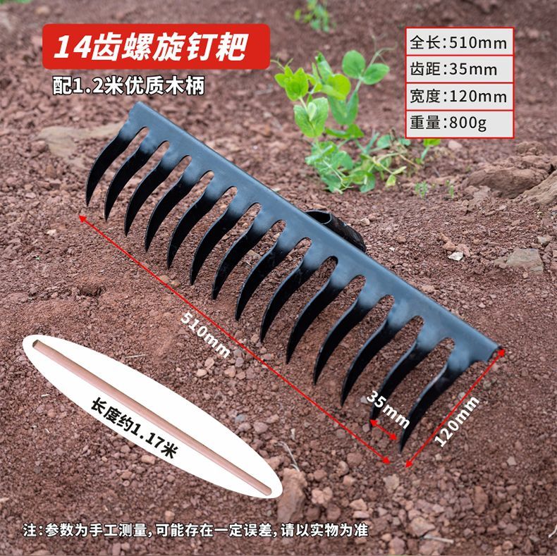 | thickened hardened manganese steel rake 14 teeth +1.2 m solid wood handle(加厚加硬锰钢钉耙14齿+1.2米实木柄) | USD $4.36 | 99999 piece available |