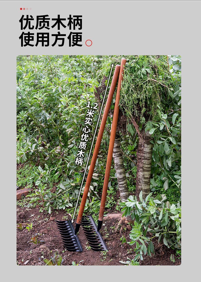 | thickened hardened manganese steel rake 12 teeth +1.2 m solid wood handle(加厚加硬锰钢钉耙12齿+1.2米实木柄) | USD $4.13 | 99999 piece available |