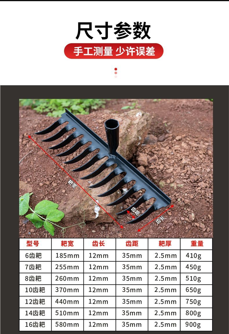 | thickened hardened manganese steel rake 12 teeth (single head)(加厚加硬锰钢钉耙12齿(单头)) | USD $2.96 | 99999 piece available |