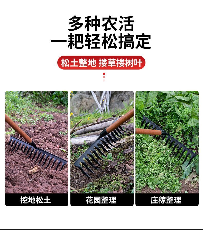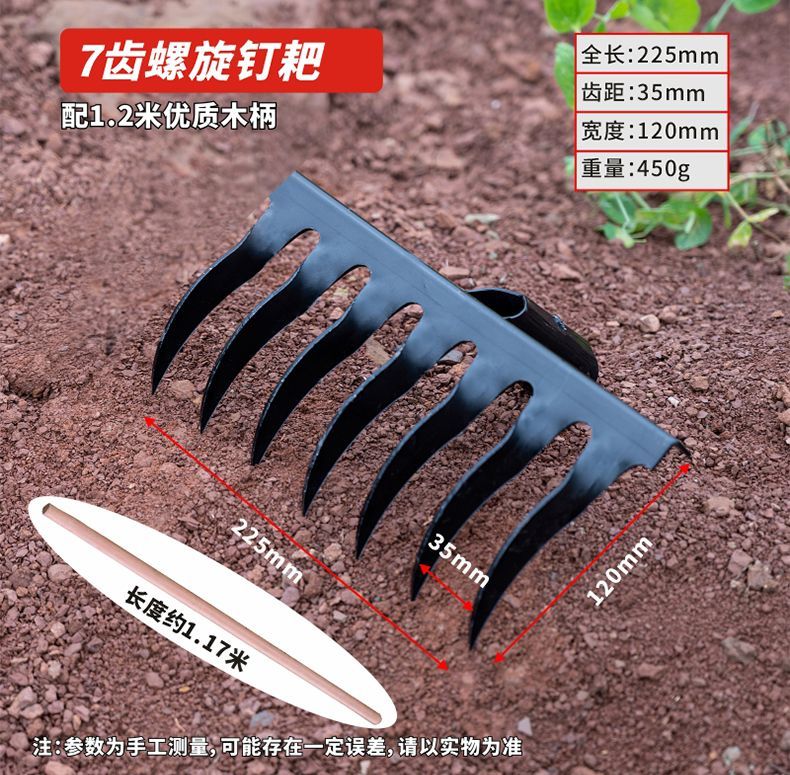 农用耙子松土翻地多功能钉耙种菜开荒五齿七齿钉耙全钢耙子钢钉耙