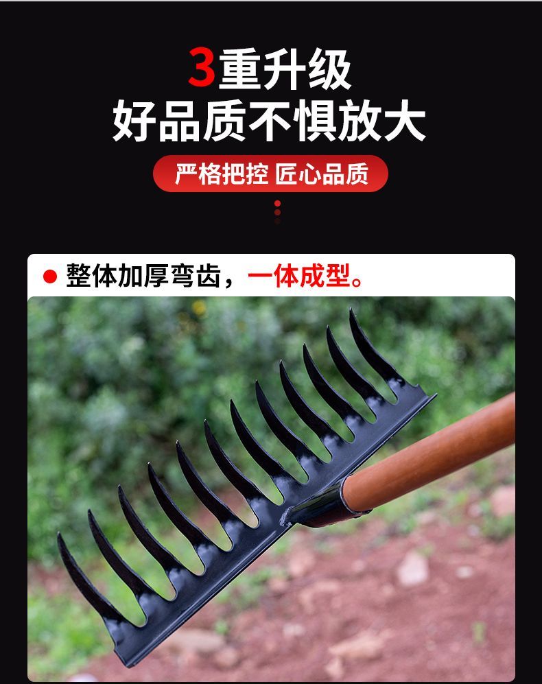 | thickened hardened manganese steel rake 10 teeth (single head)(加厚加硬锰钢钉耙10齿(单头)) | USD $2.72 | 99999 piece available |