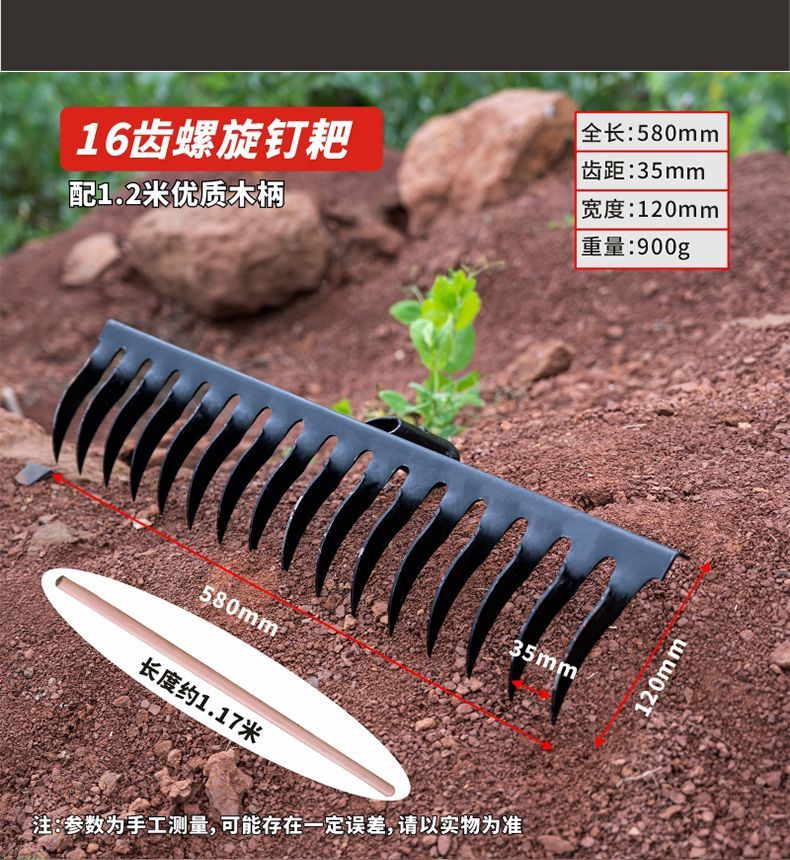| thickened hardened manganese steel rake 16 teeth +1.2 m solid wood handle(加厚加硬锰钢钉耙16齿+1.2米实木柄) | USD $4.59 | 99999 piece available |