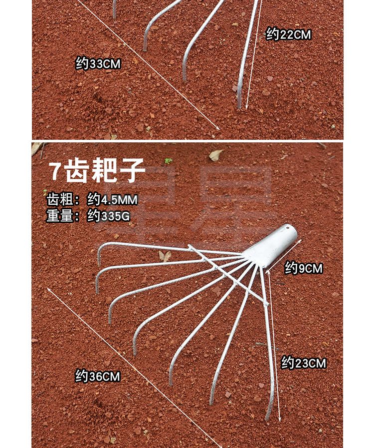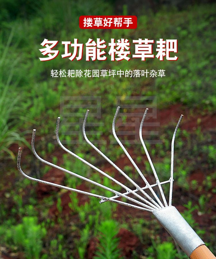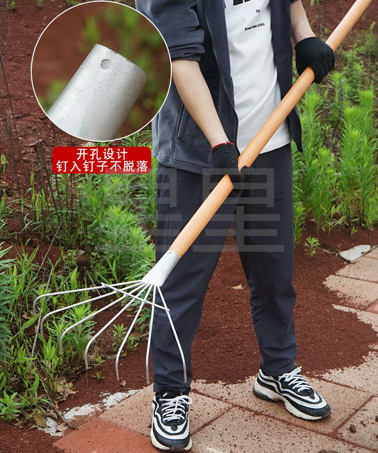 家用搂草耙子农用铁耙耙齿七齿钉耙农具翻土松土扒草铁抓爬子草耙