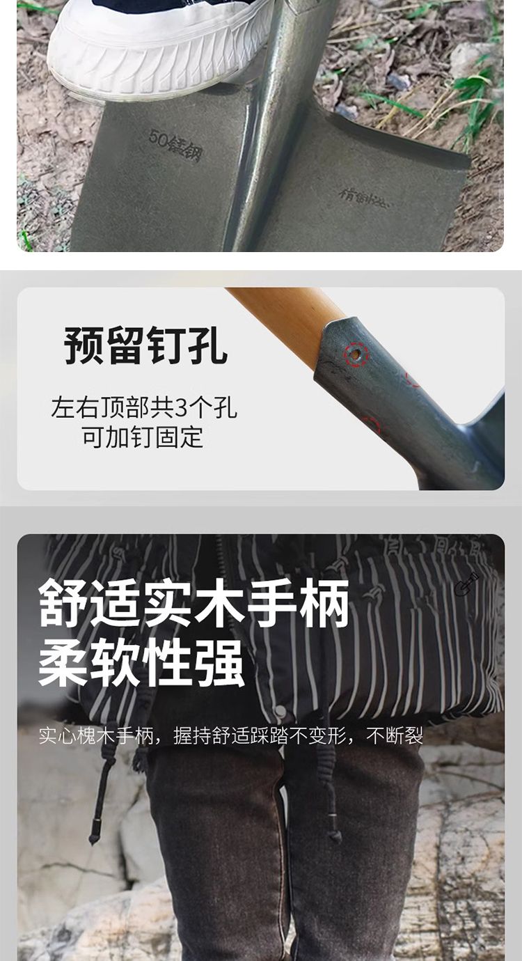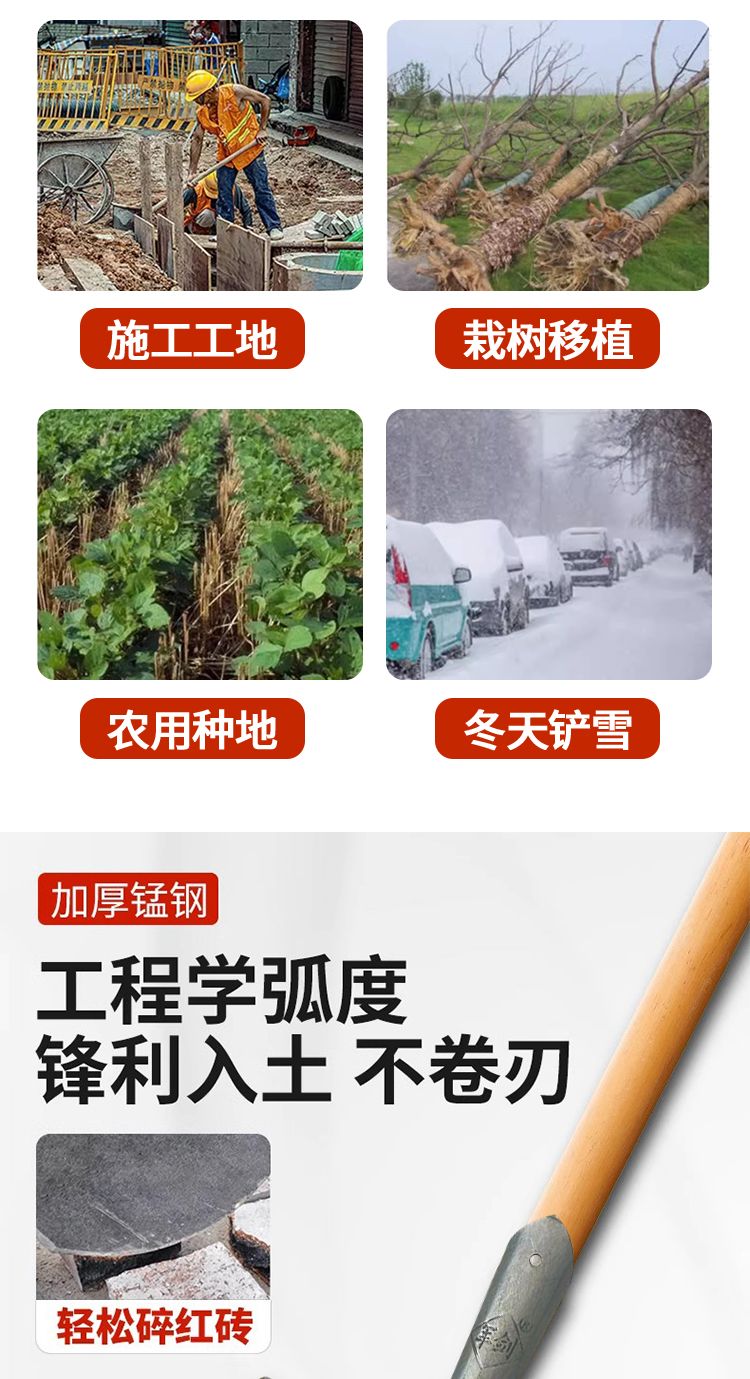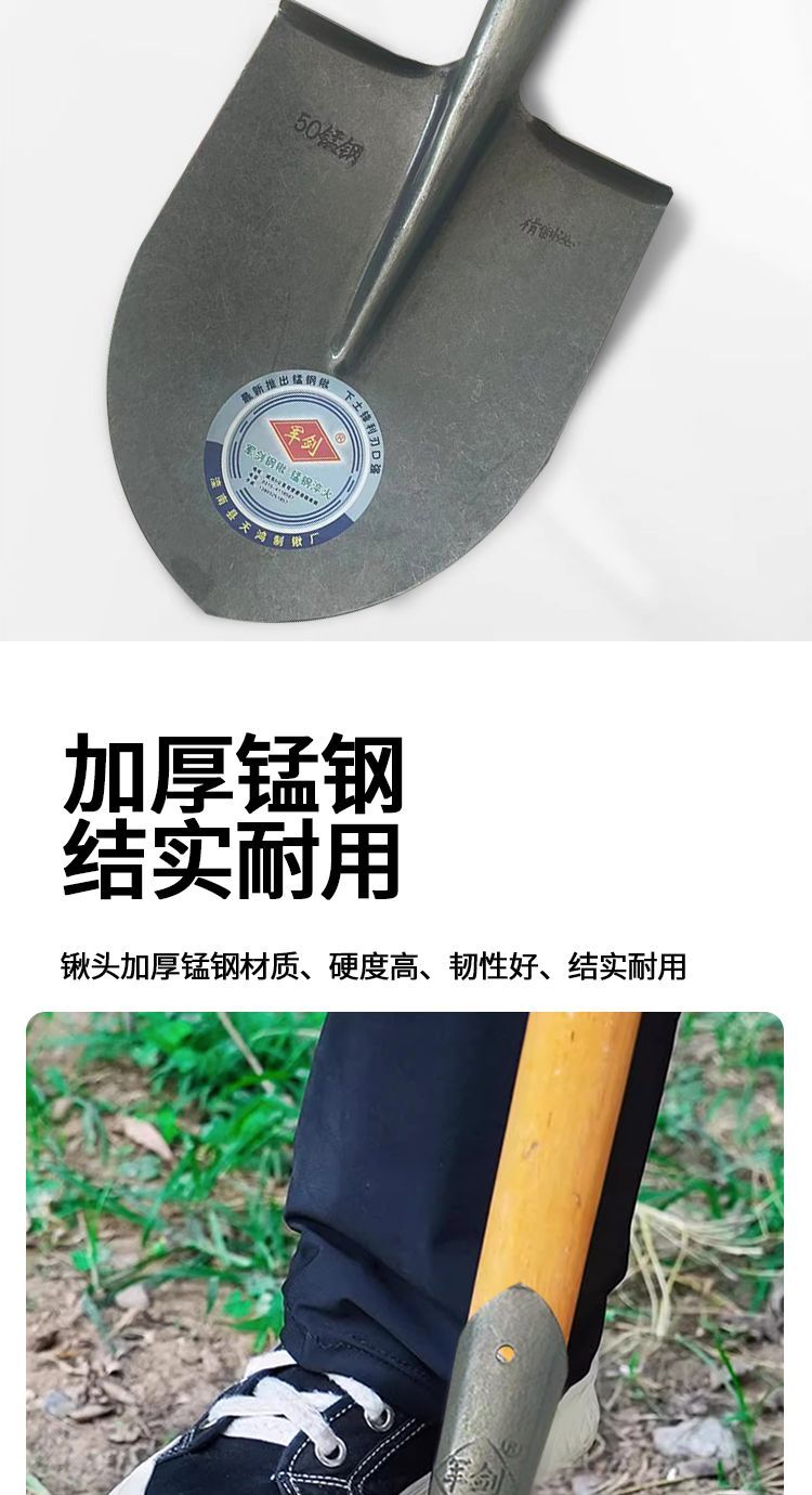 锰钢铁锹钢锹挖土工地专用农用工具钢铲铁铲铁锨户外家用尖锹方锹