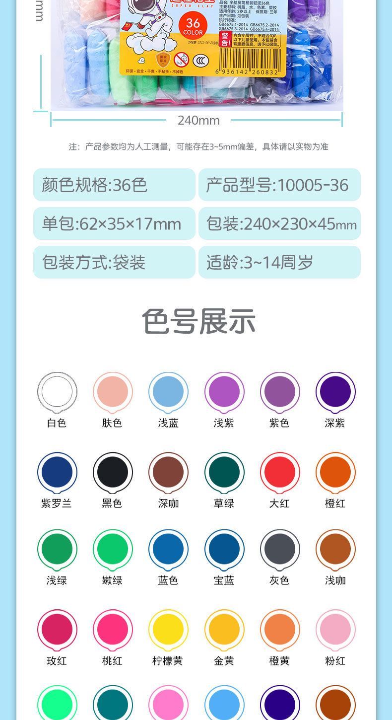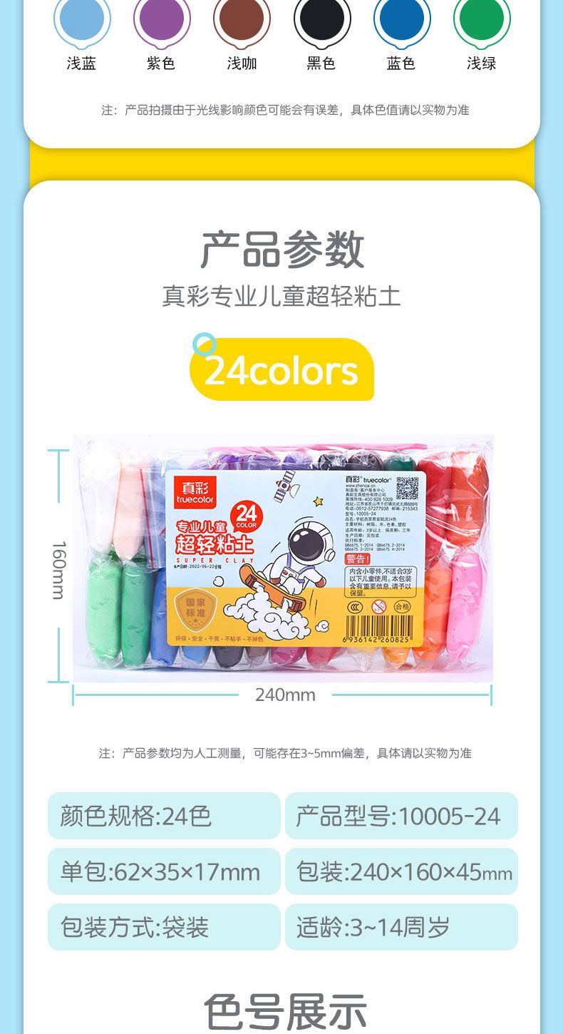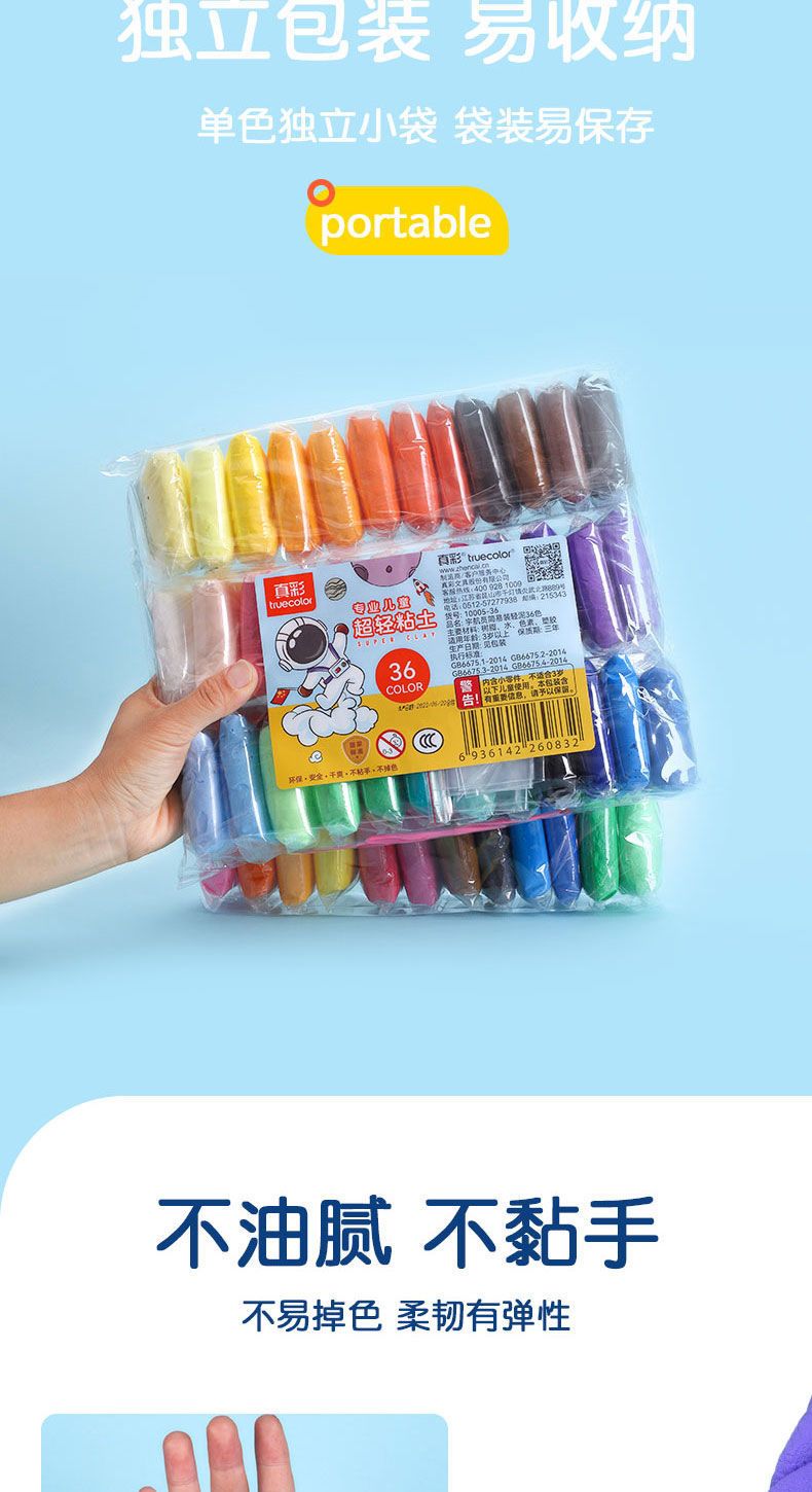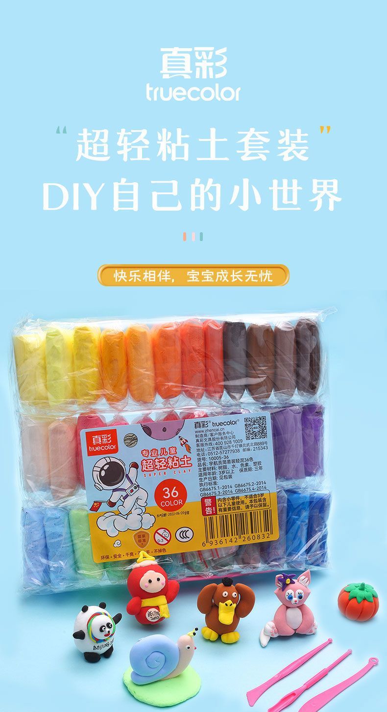 真彩超轻粘土36色批发儿童橡皮泥黏土手工彩泥diy袋装