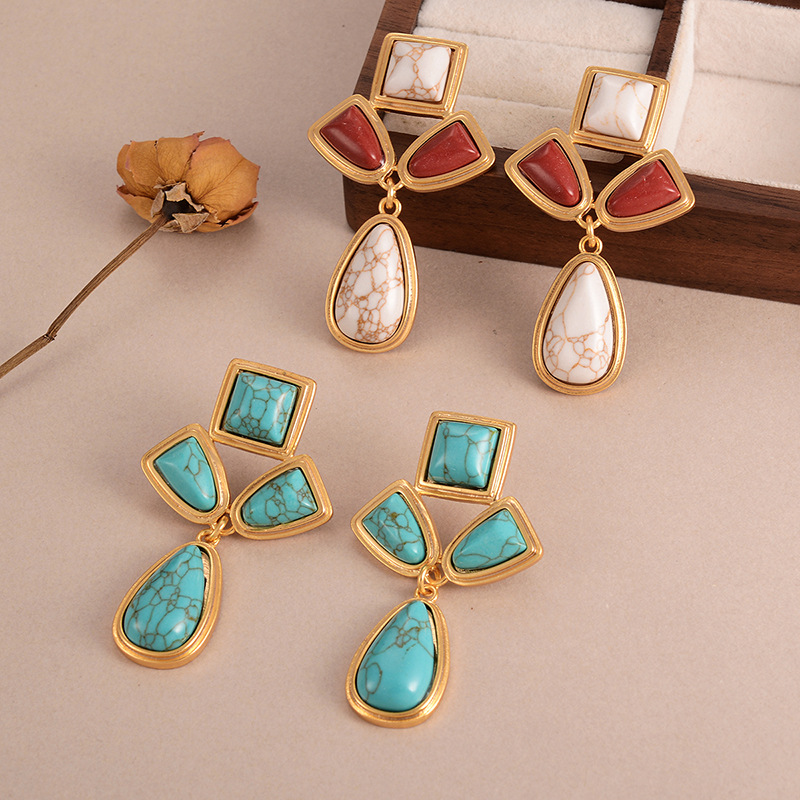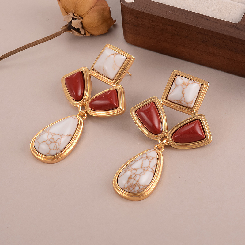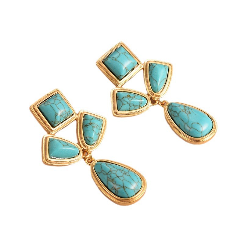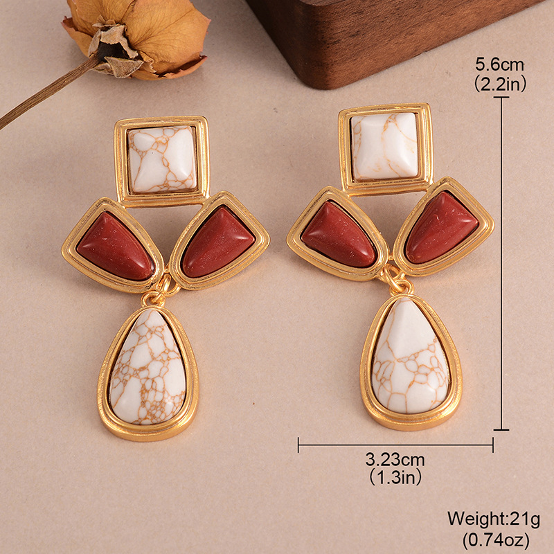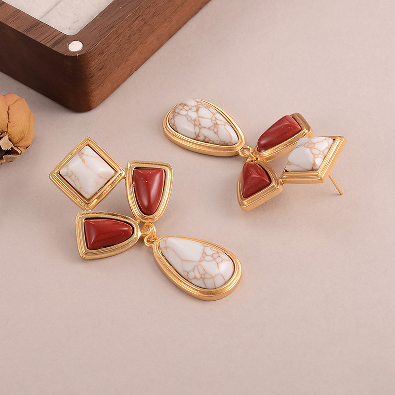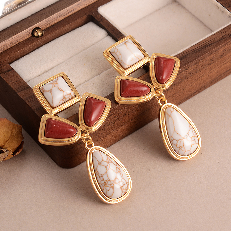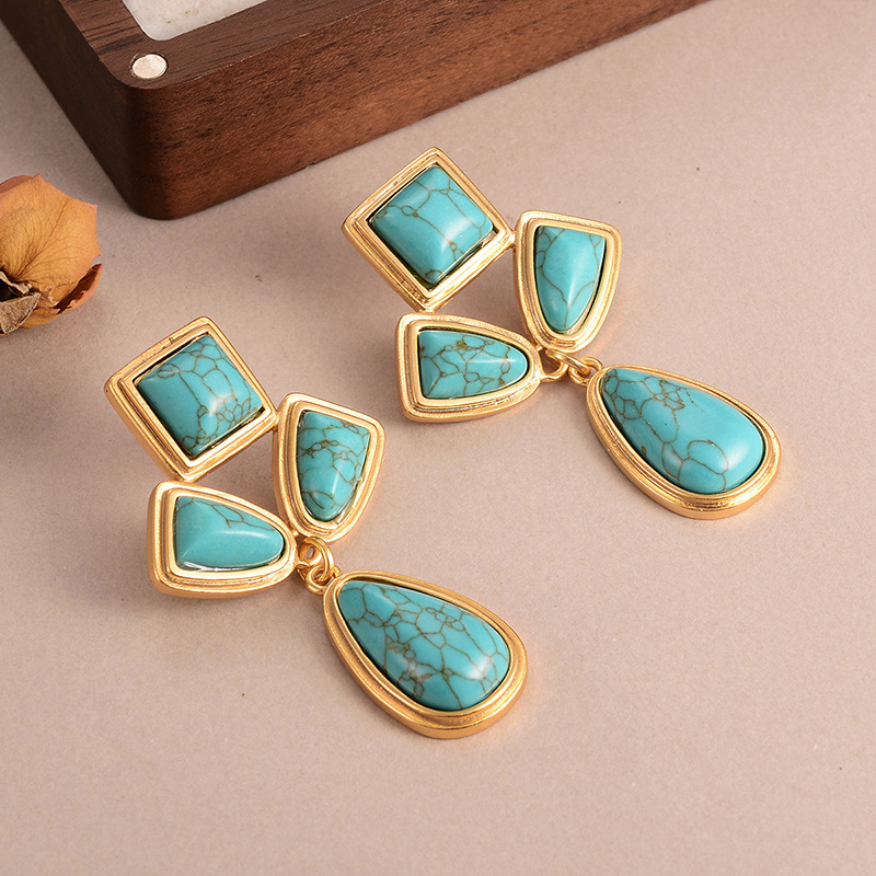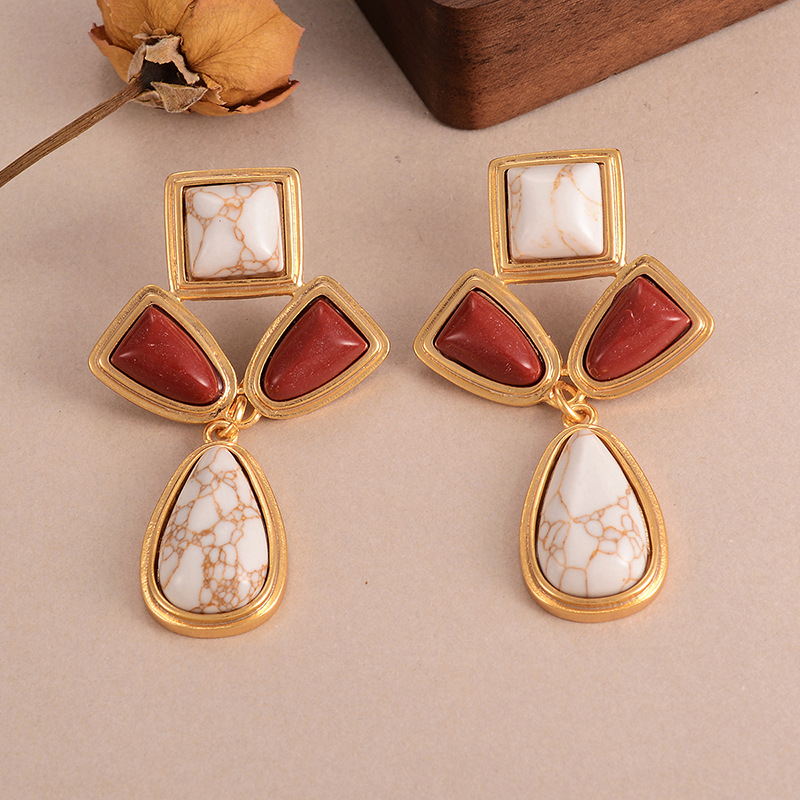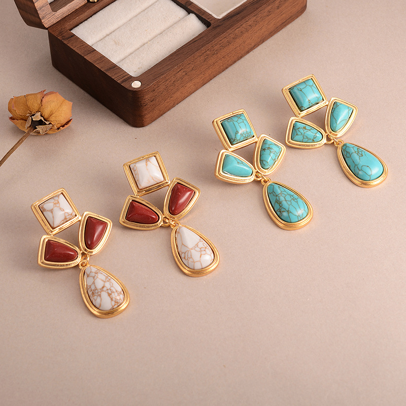 天然石几何流苏耳环个性小众复古高级感中古vintage设计感女耳饰