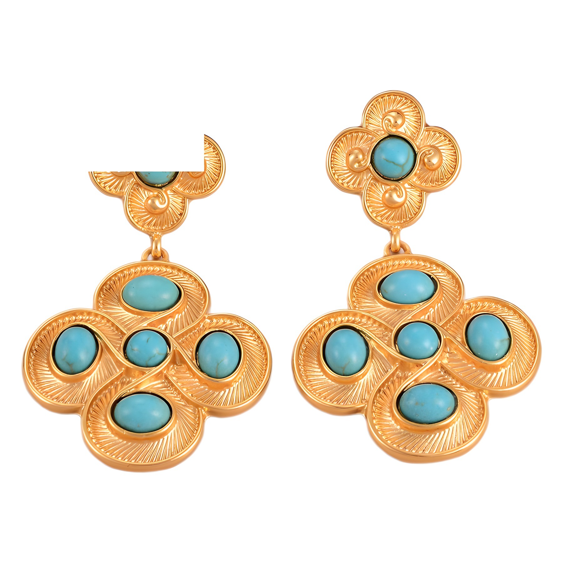 中古vintage耳环绿松石夸张花朵流苏耳饰宫廷风显瘦个性耳钉批发
