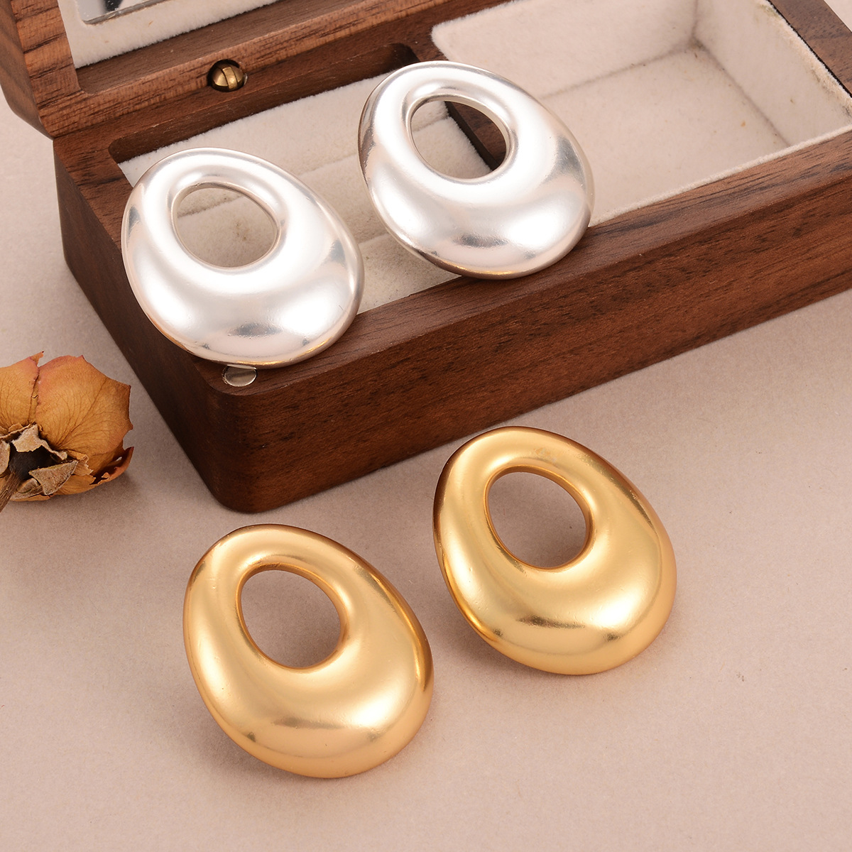 欧美时尚椭圆镂空耳环ins气质简约个性几何耳钉新款高级感耳饰女