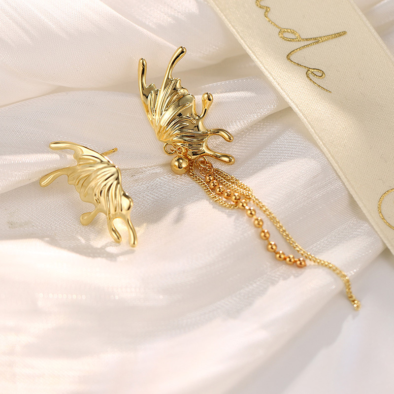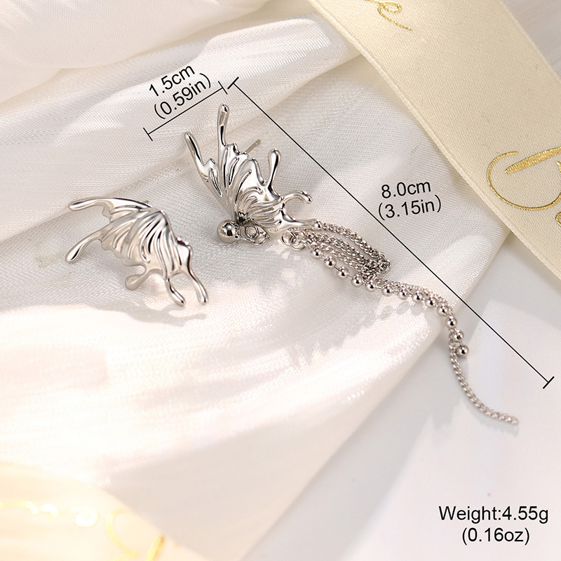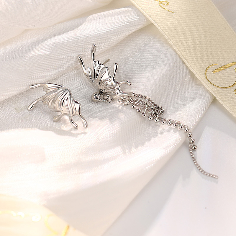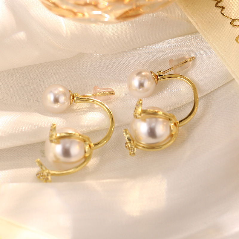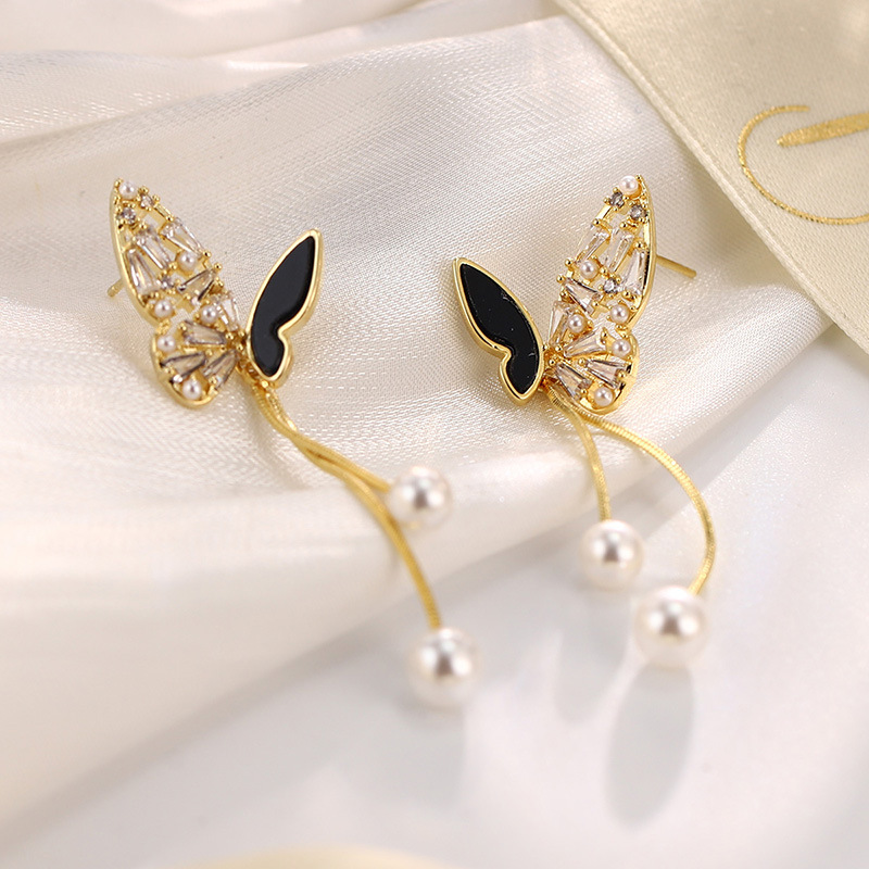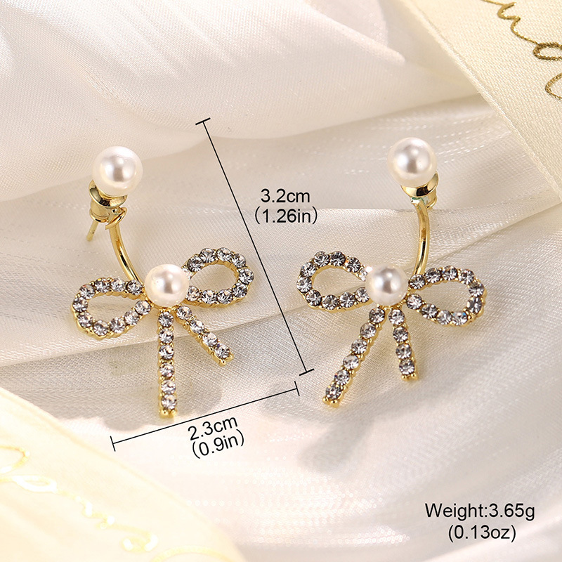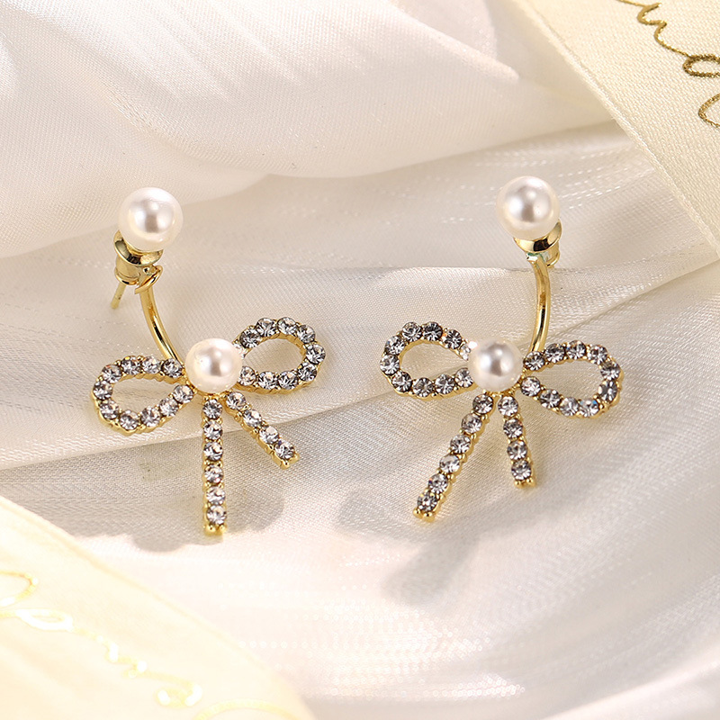 蝴蝶结镶钻银针耳环不规则长款珍珠流苏耳饰时尚百搭2024新款饰品