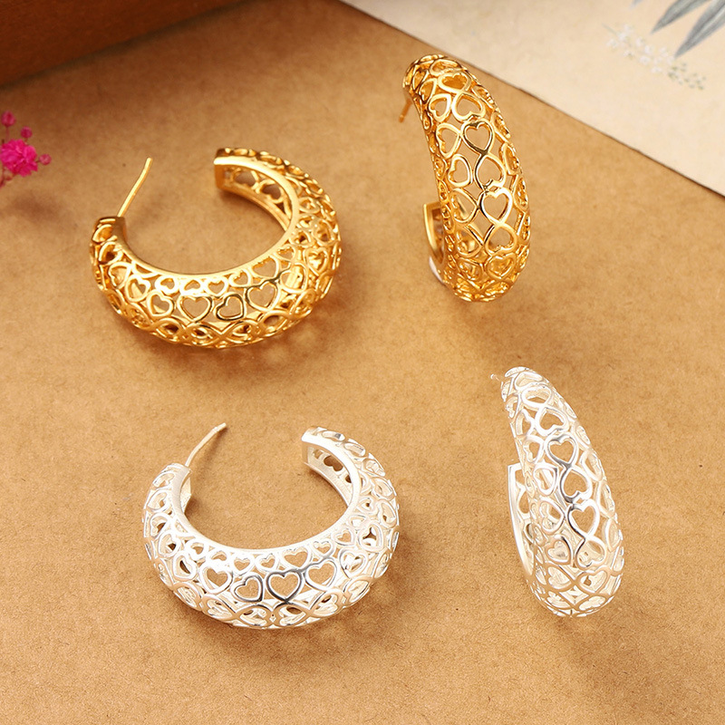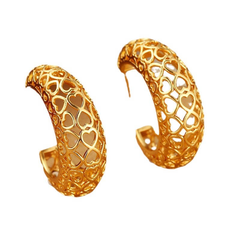 ins爱心耳环镂空时尚新百搭气质高级感耳钉女C型气质小众个性耳饰
