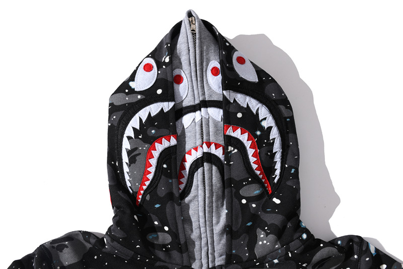跨境日系潮牌鲨鱼卫衣双帽卫衣星空迷彩夜光斑点印花连帽开衫外套