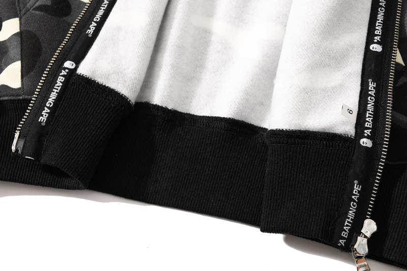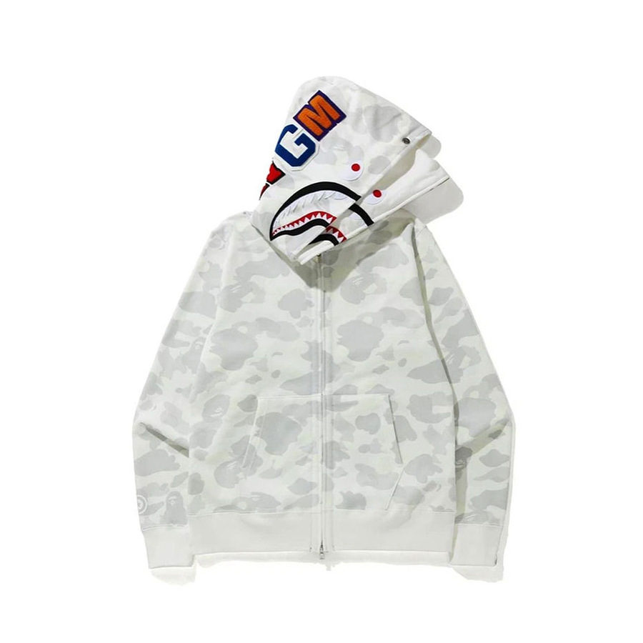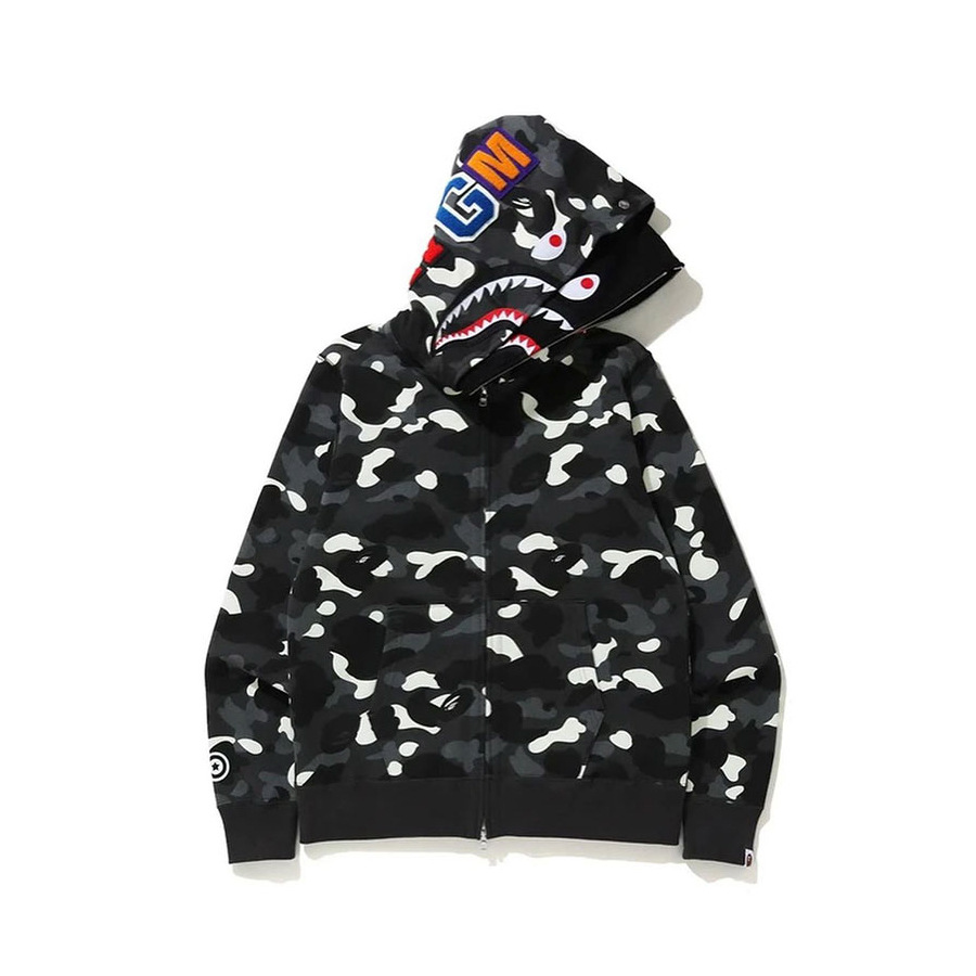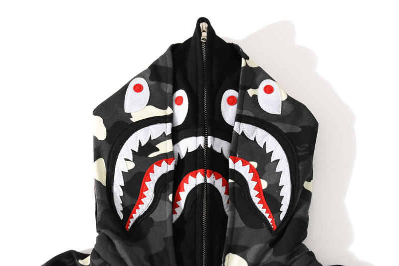 跨境外贸潮牌鲨鱼头双帽卫衣夜光斑点刺绣印花开衫拉链连帽外套潮