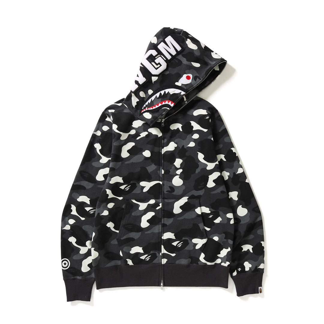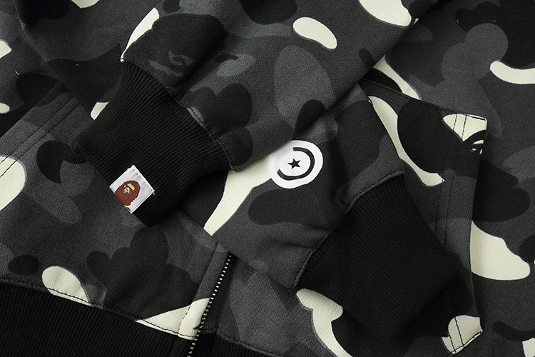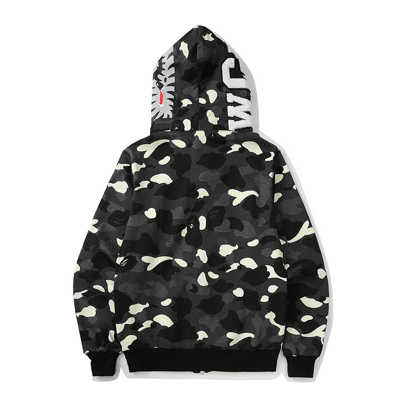 跨境外贸鲨鱼头卫衣男迷彩夜光斑点学生开衫拉链连帽宽松外套女潮
