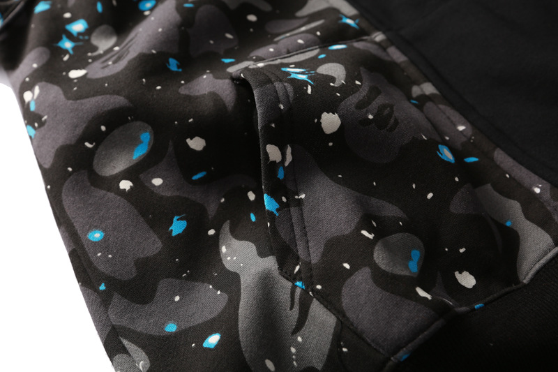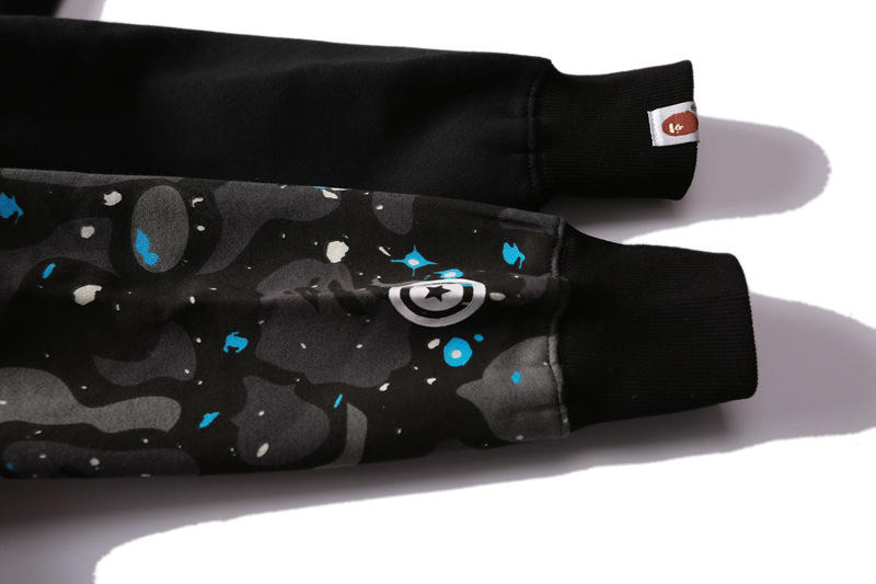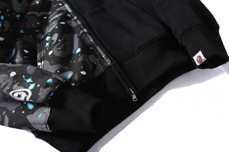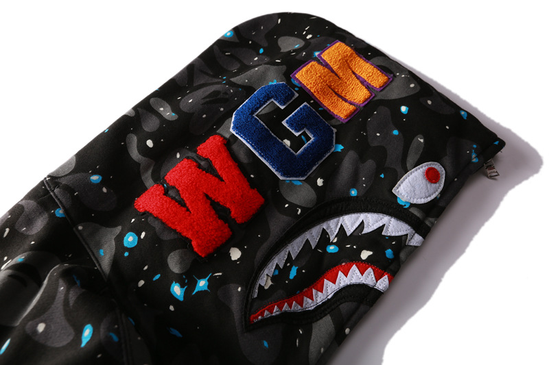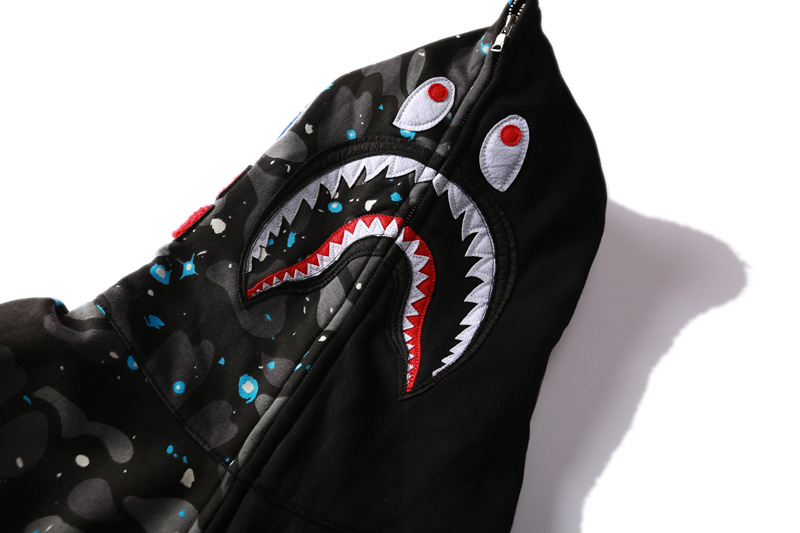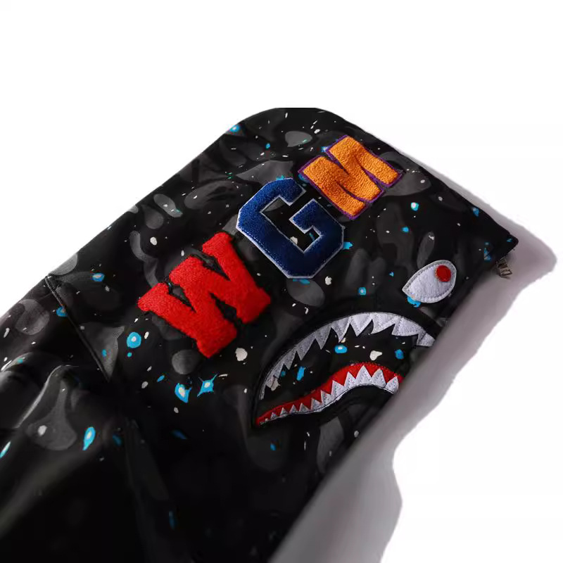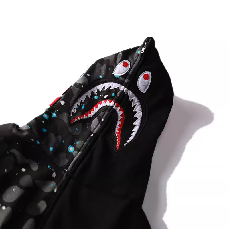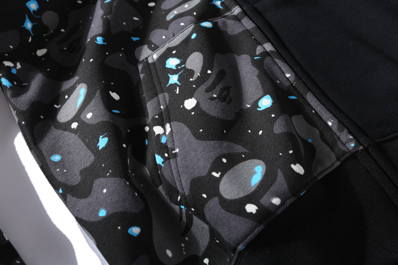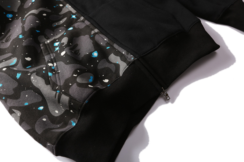 跨境外贸鲨鱼外套男女拼接迷彩星空夜光刺绣印花开衫连帽卫衣潮