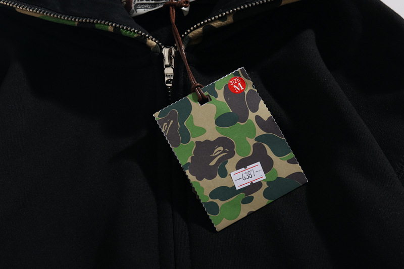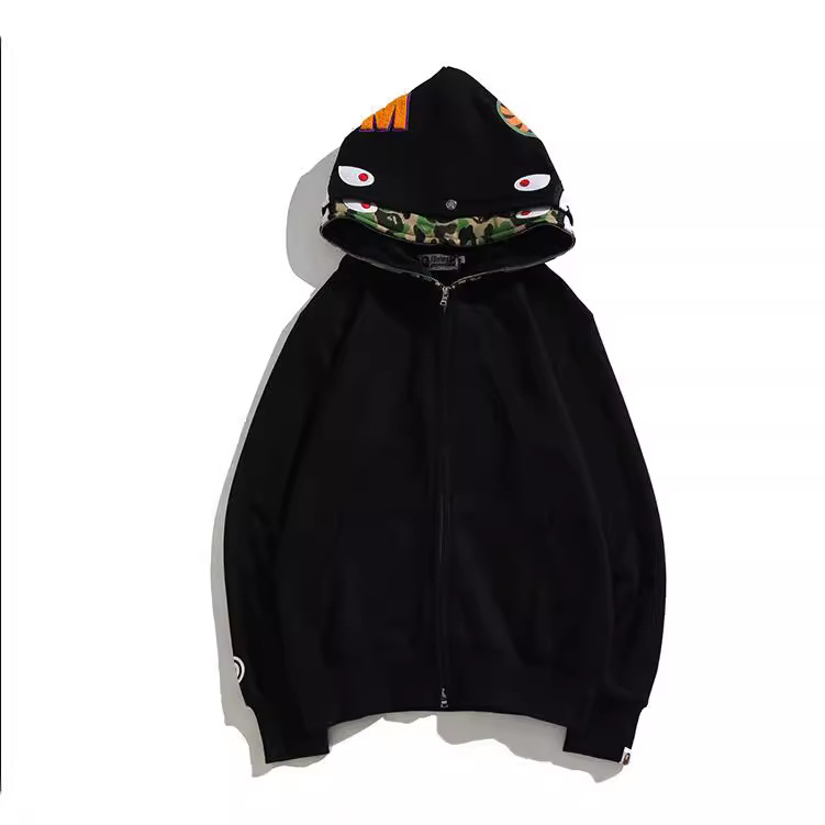外贸批发潮牌鲨鱼头双帽迷彩卫衣男女情侣款薄绒宽松拉链开衫外套