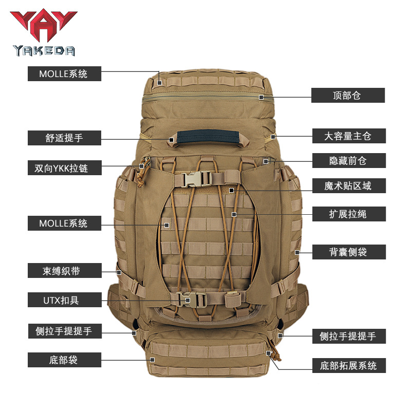 YAKEDA90L重型大容量登山包防水防尘透气探险户外旅游战术背包