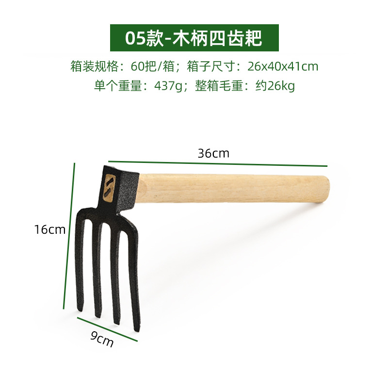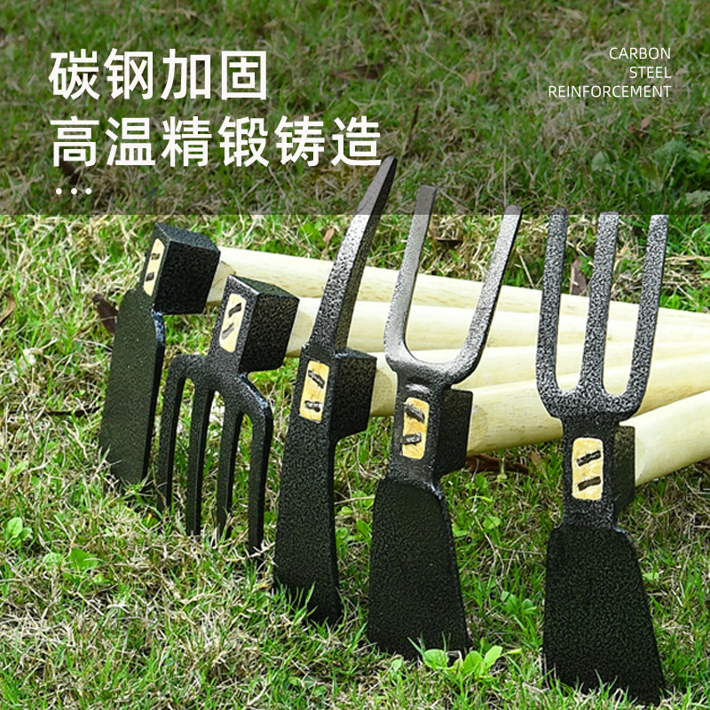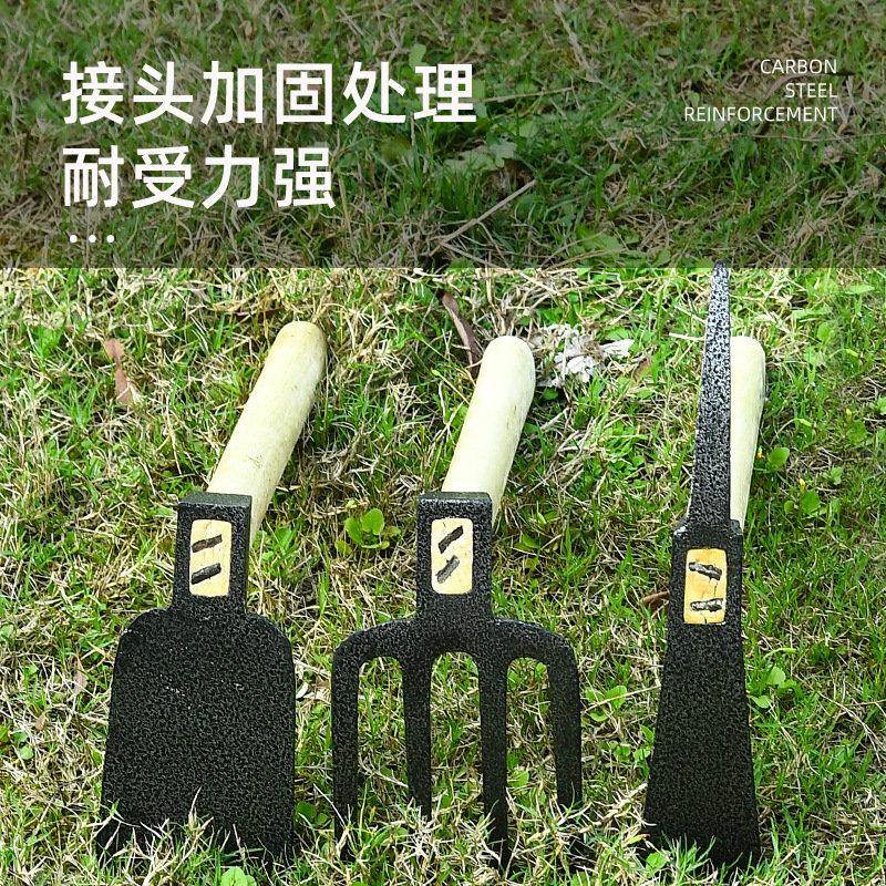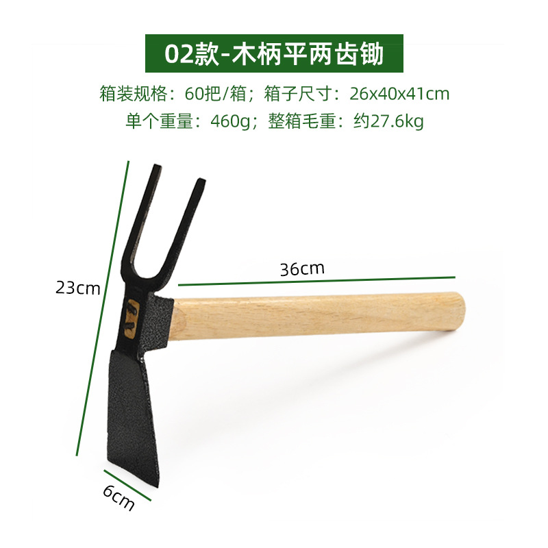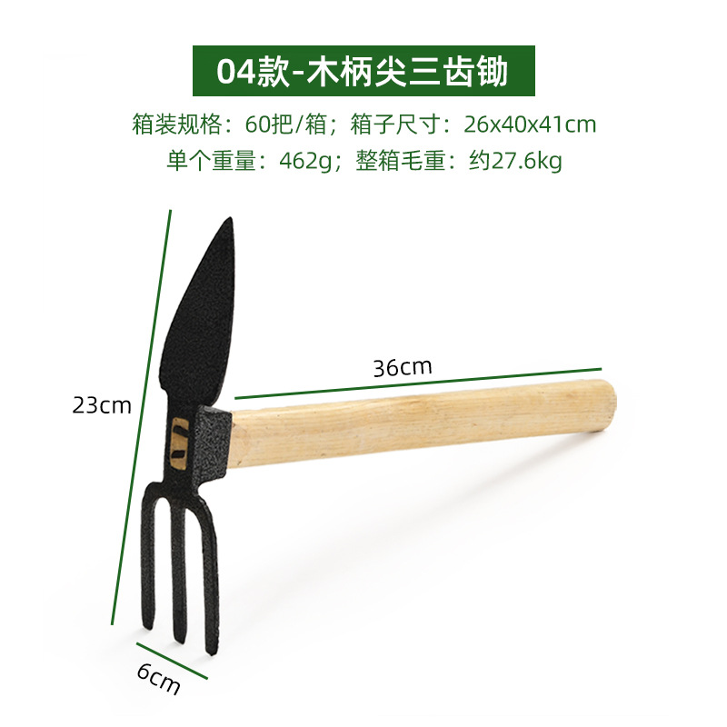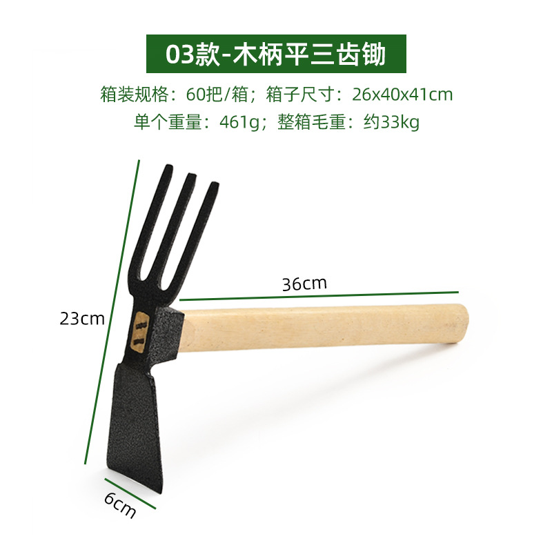 园林工具农用小锄头批发家用翻土锄头木柄三齿耙两用锄种菜挖笋