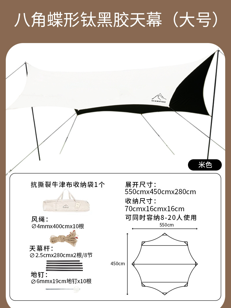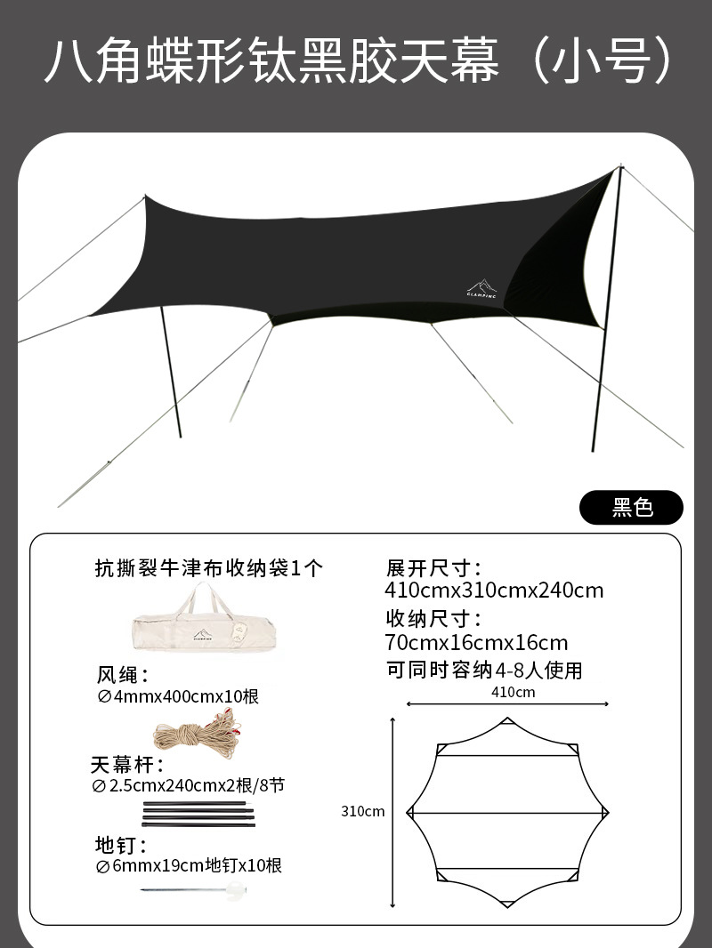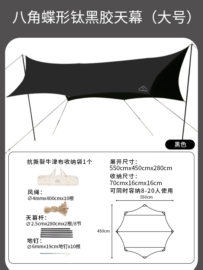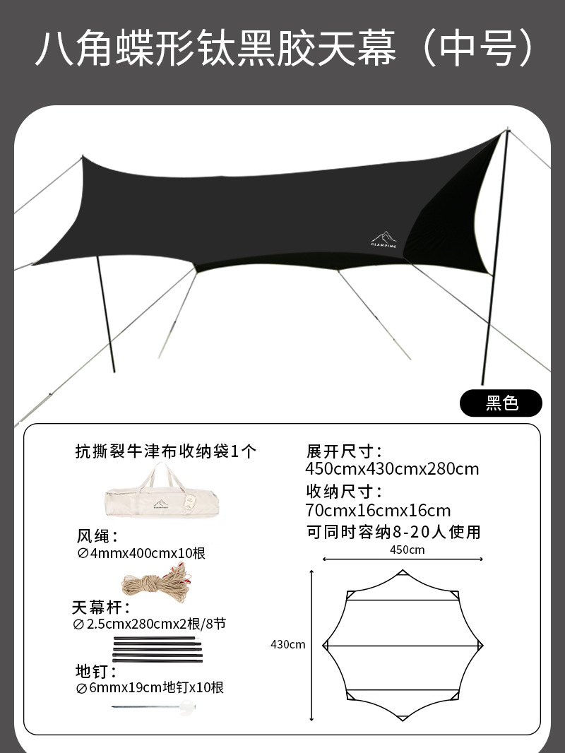 超大超高黑胶天幕帐篷户外穹顶防晒涂层防雨遮阳棚全套露营装备