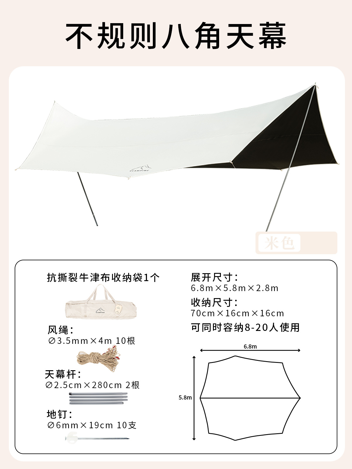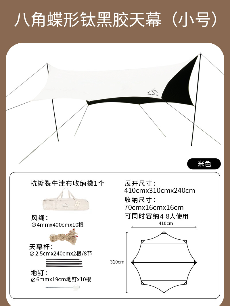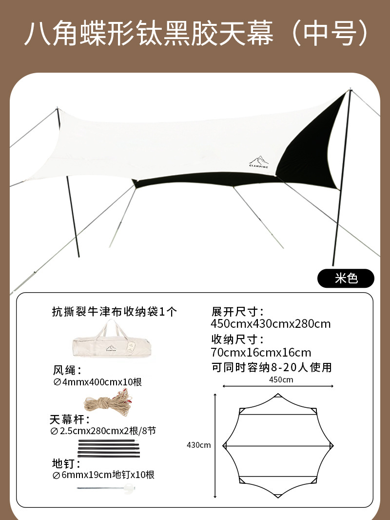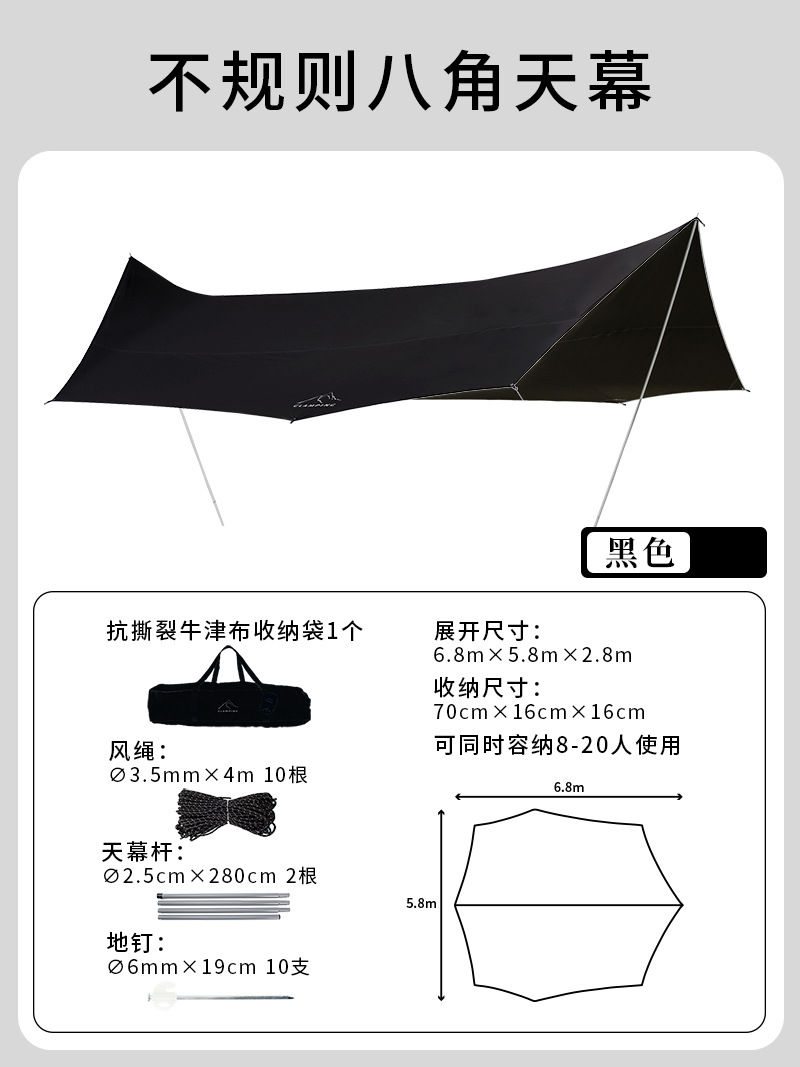 超大超高黑胶天幕帐篷户外穹顶防晒涂层防雨遮阳棚全套露营装备