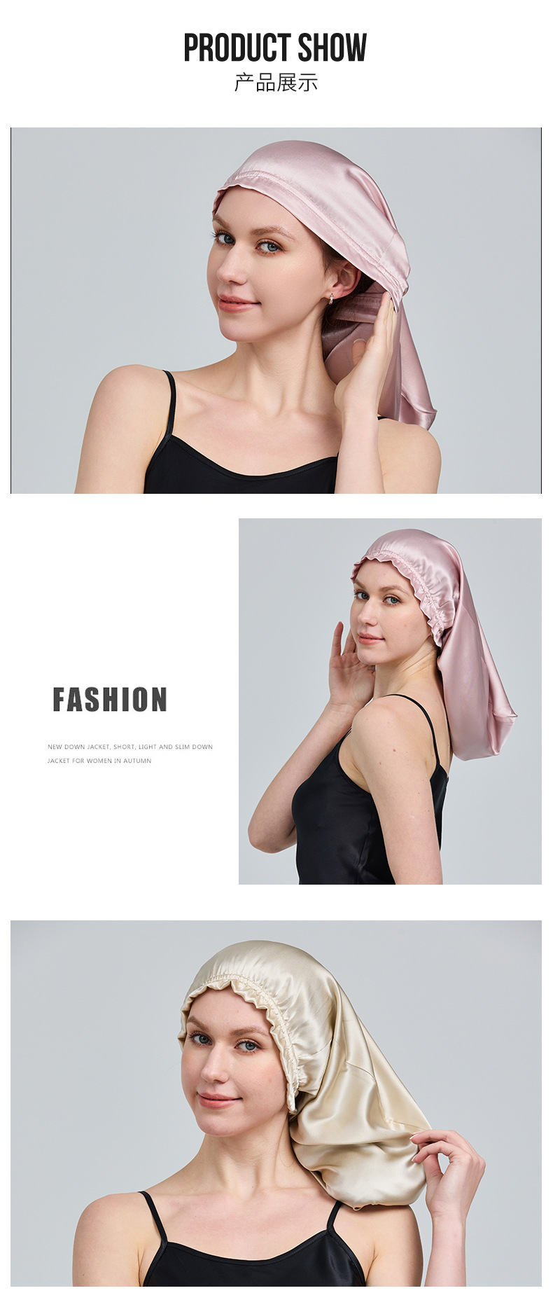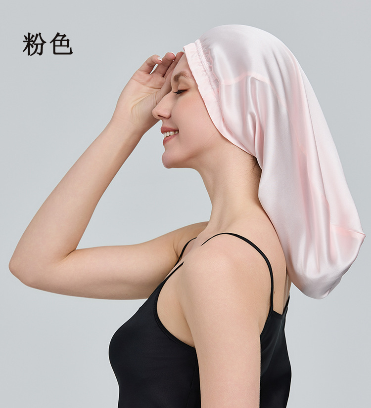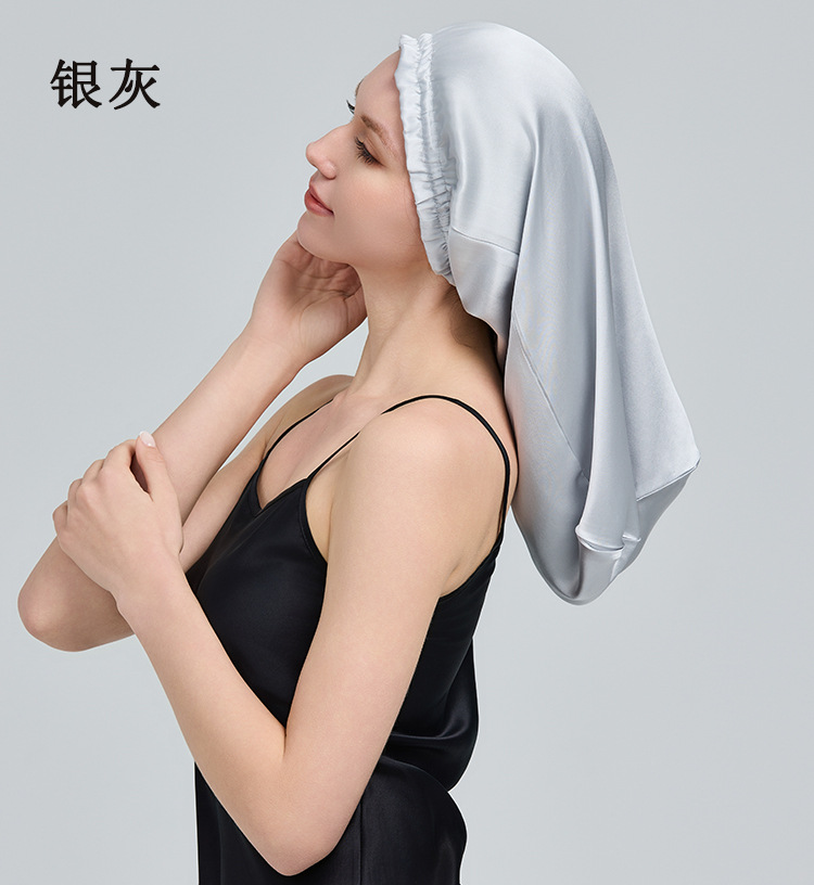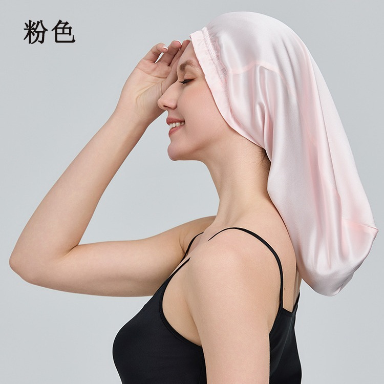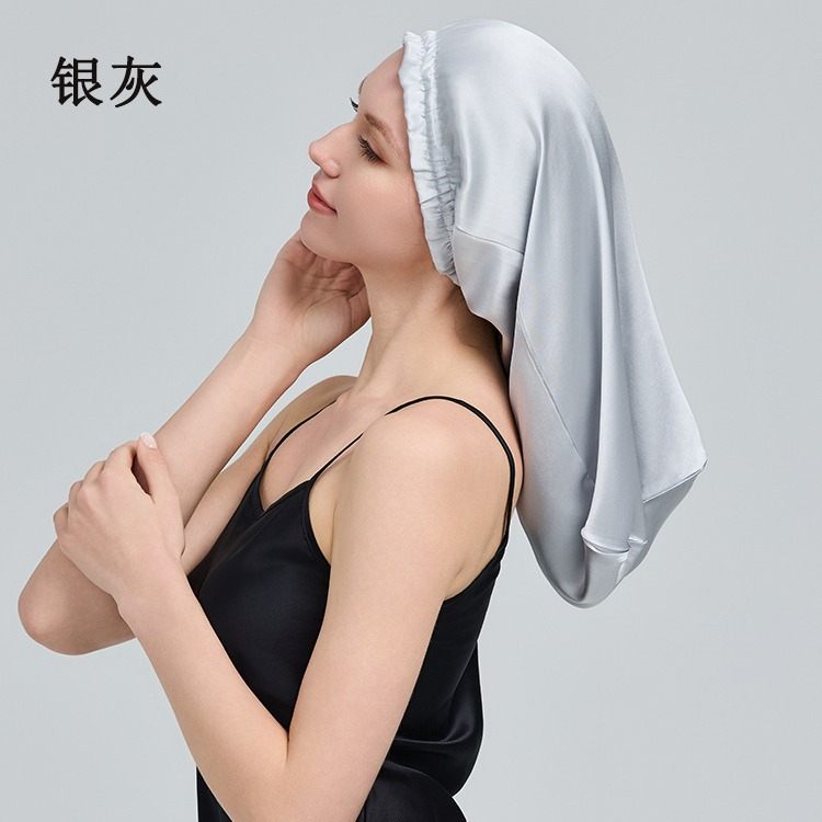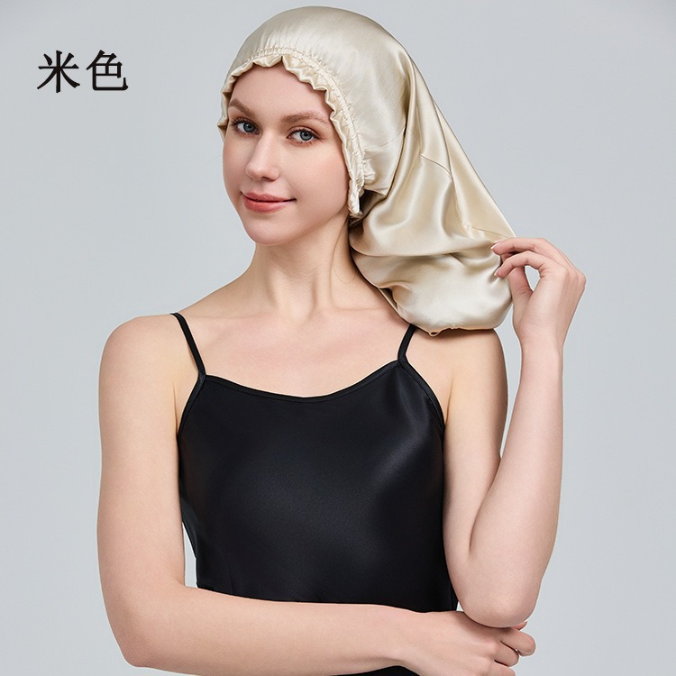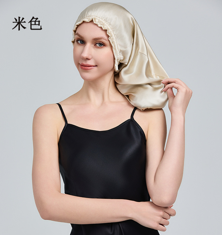 跨境松紧真丝长帽亚马逊长款加大桑蚕丝软帽居家发帽工厂无痕头巾