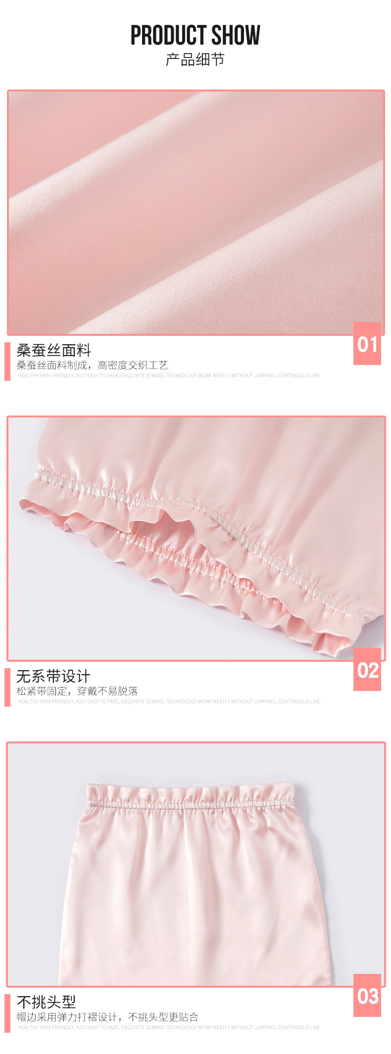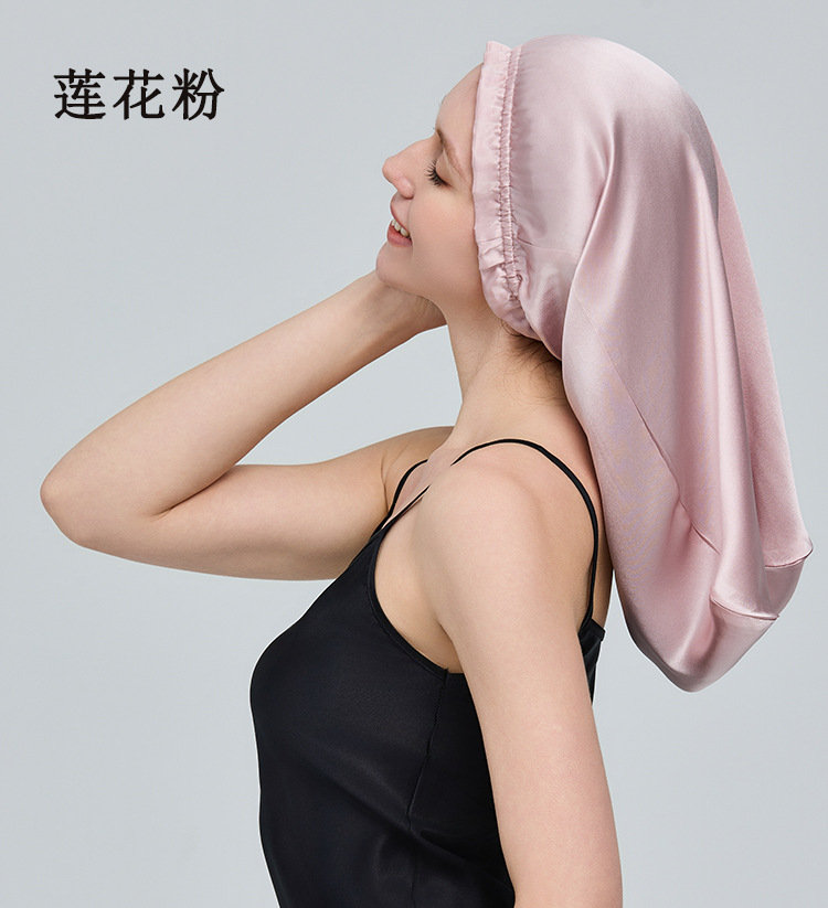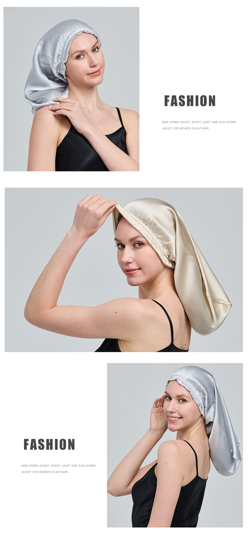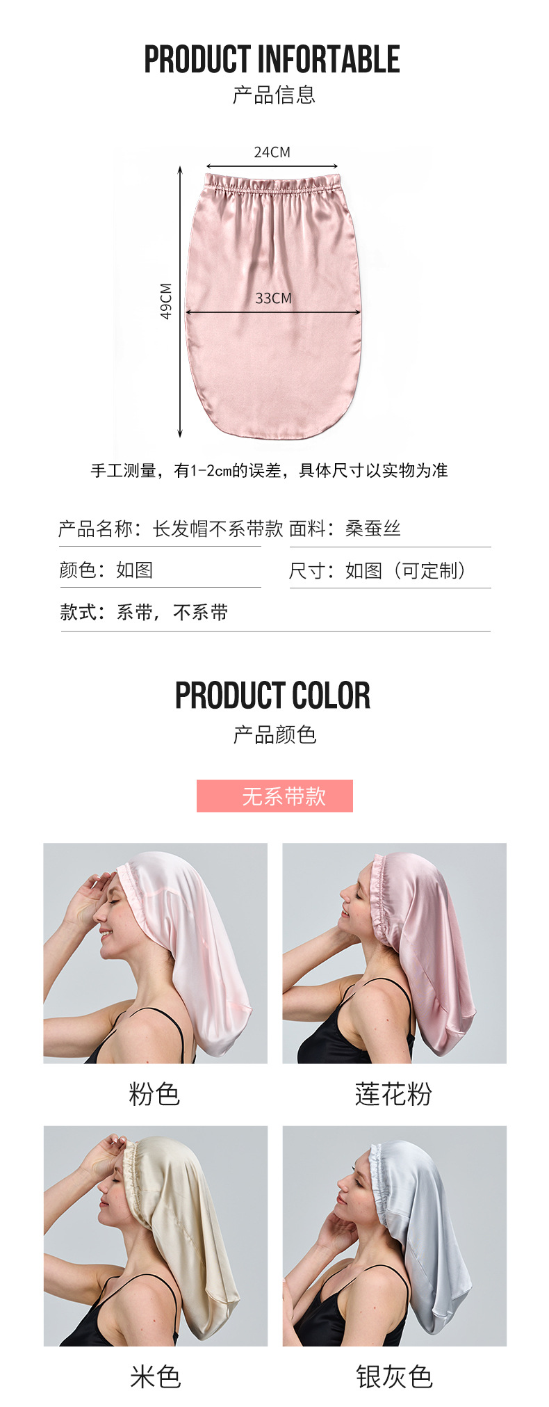 跨境松紧真丝长帽亚马逊长款加大桑蚕丝软帽居家发帽工厂无痕头巾