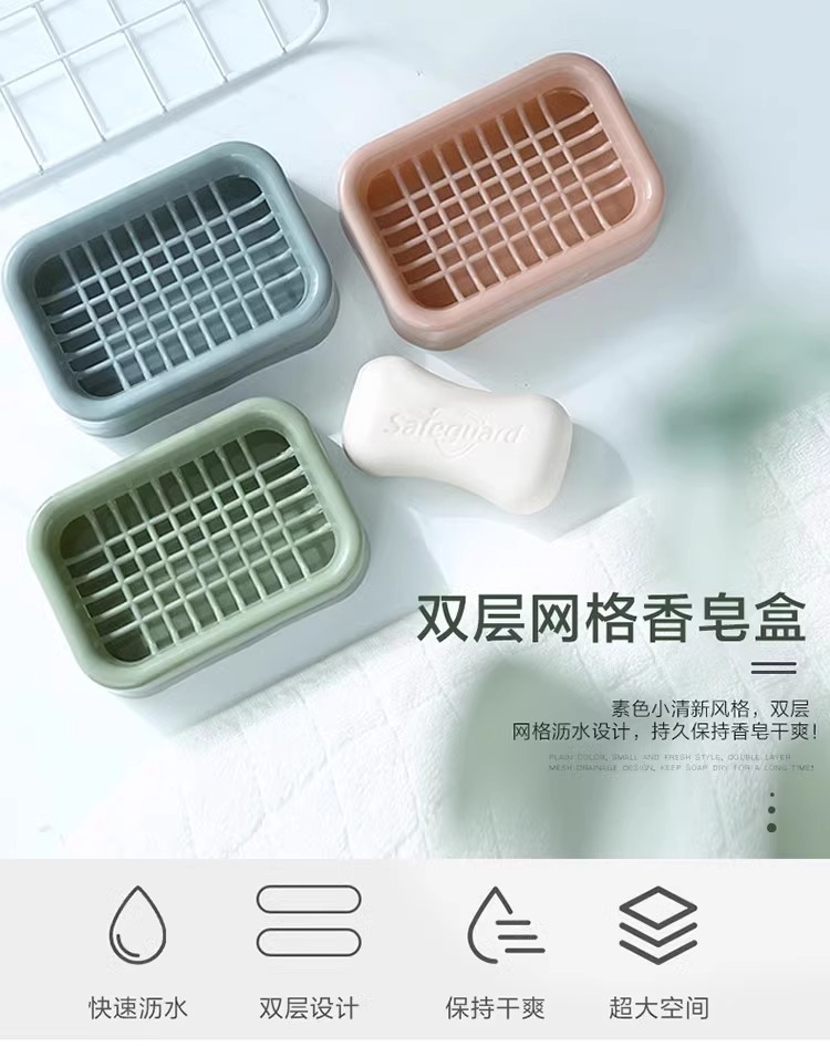 沥水肥皂盒家用北欧创意网格简约大号皂架塑料双层香皂盒卫生间